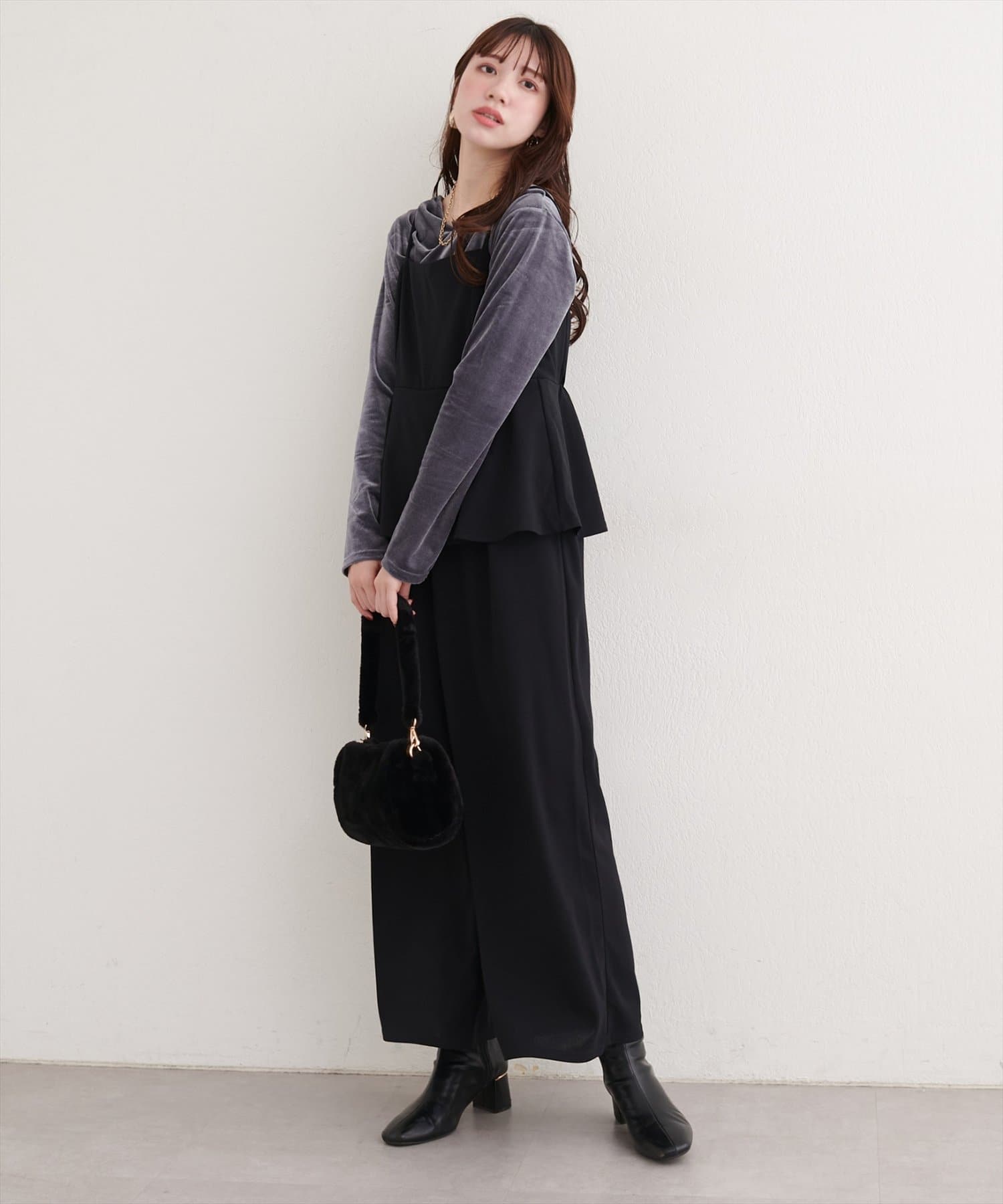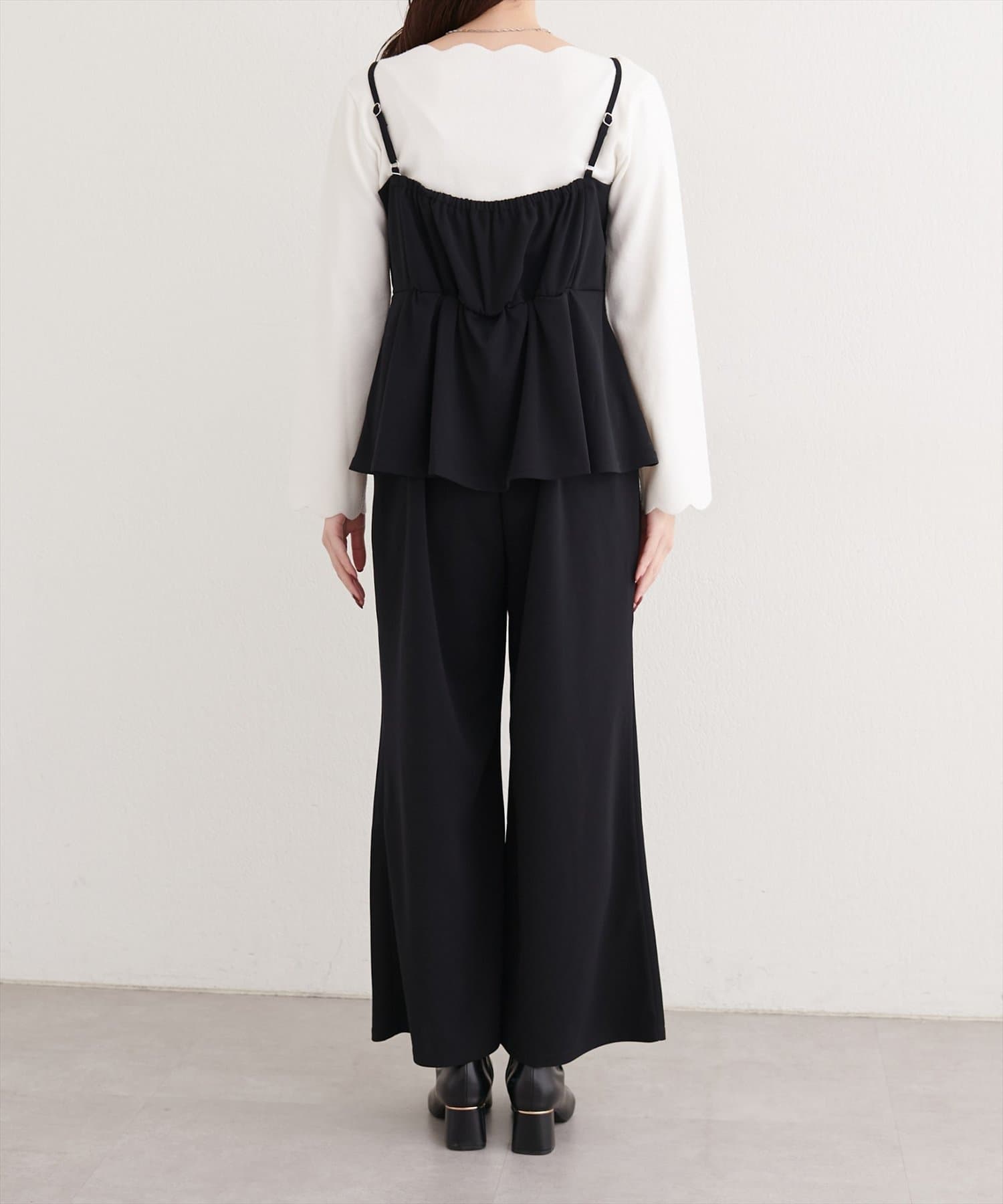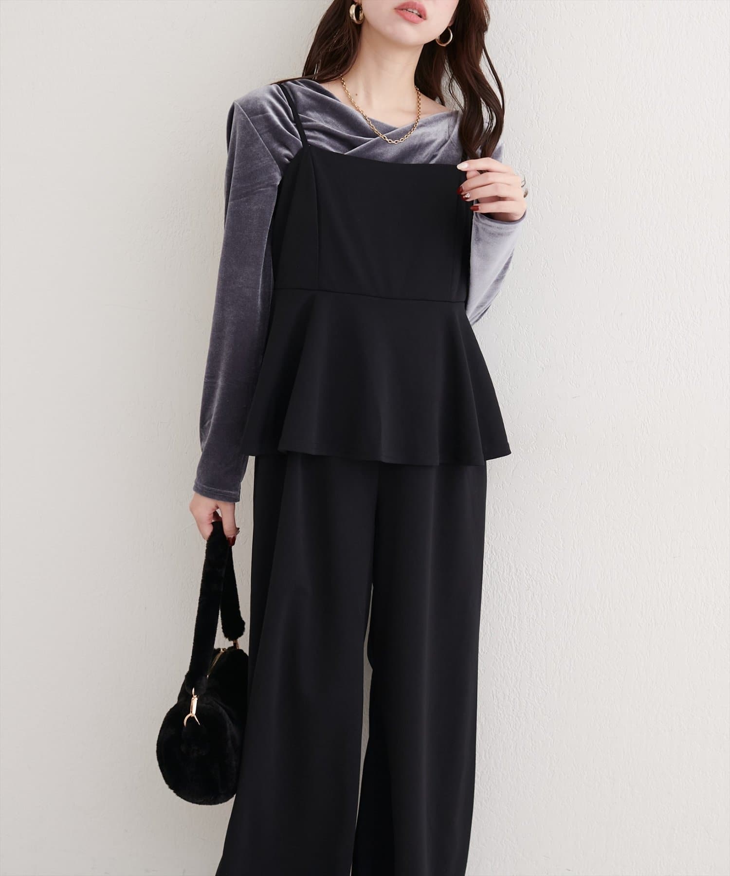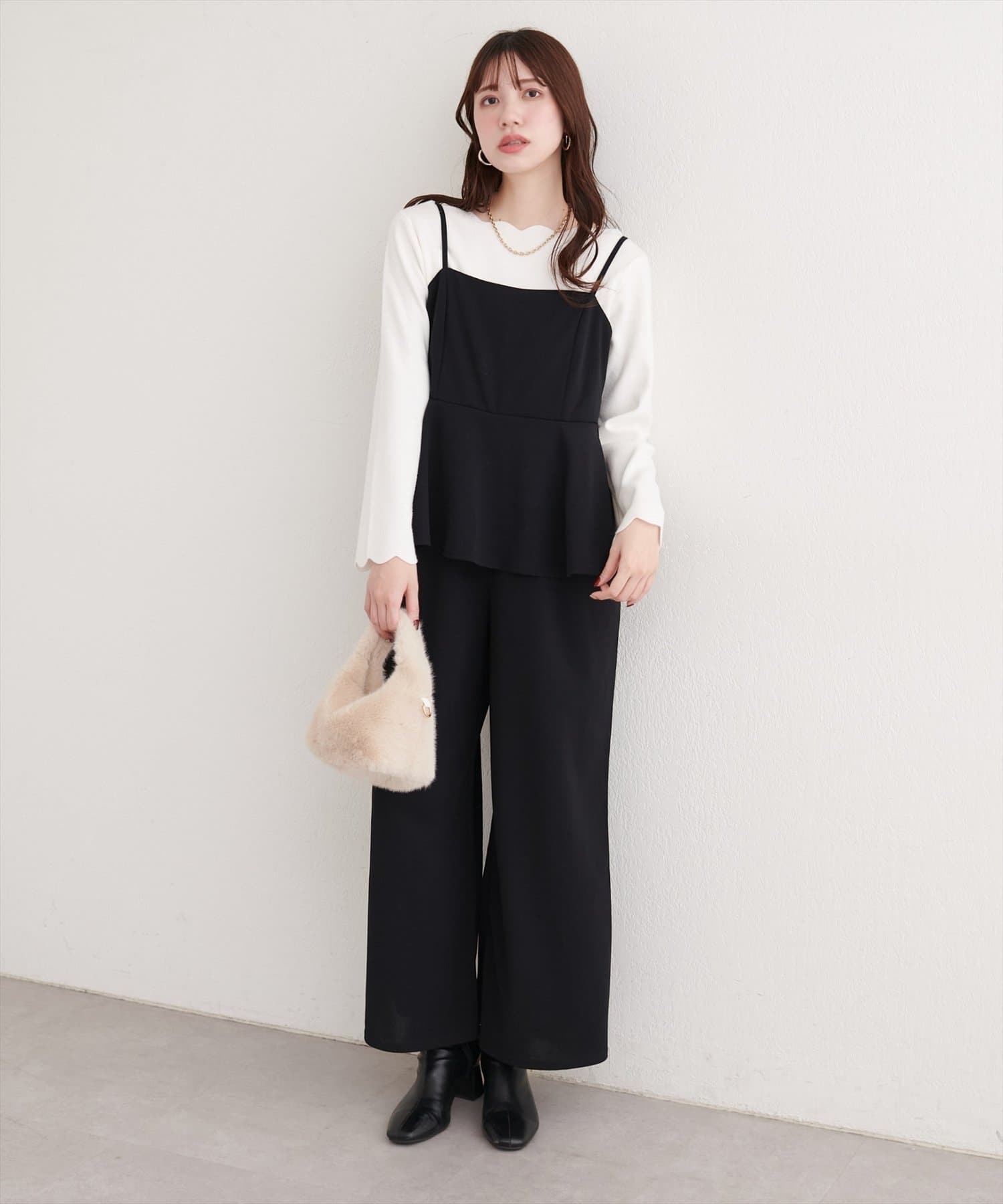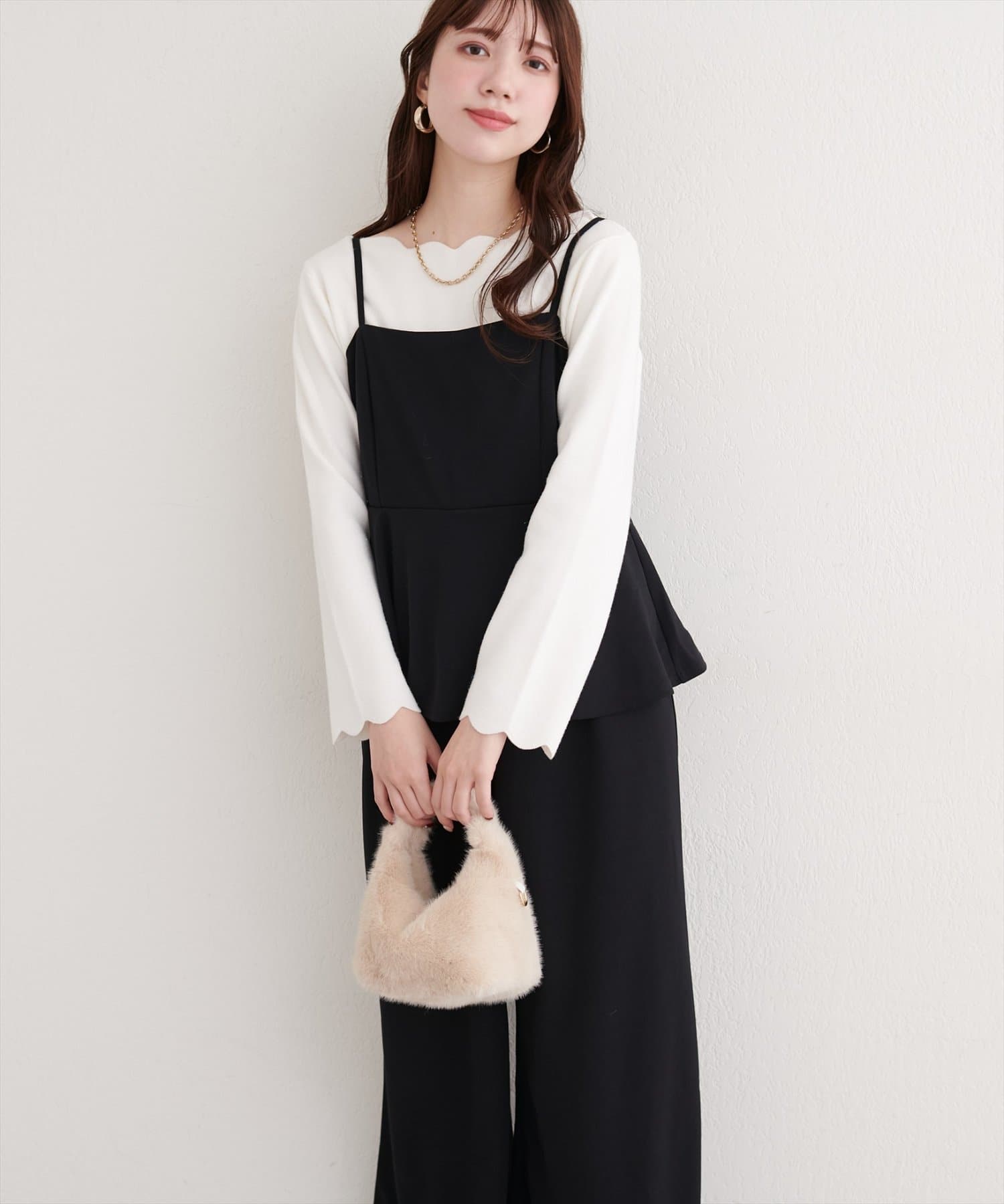 高めのウエスト位置から広がるペプラムが、気になるお腹周りをカバーしつつ脚長効果を発揮。スタイルアップを叶えます。