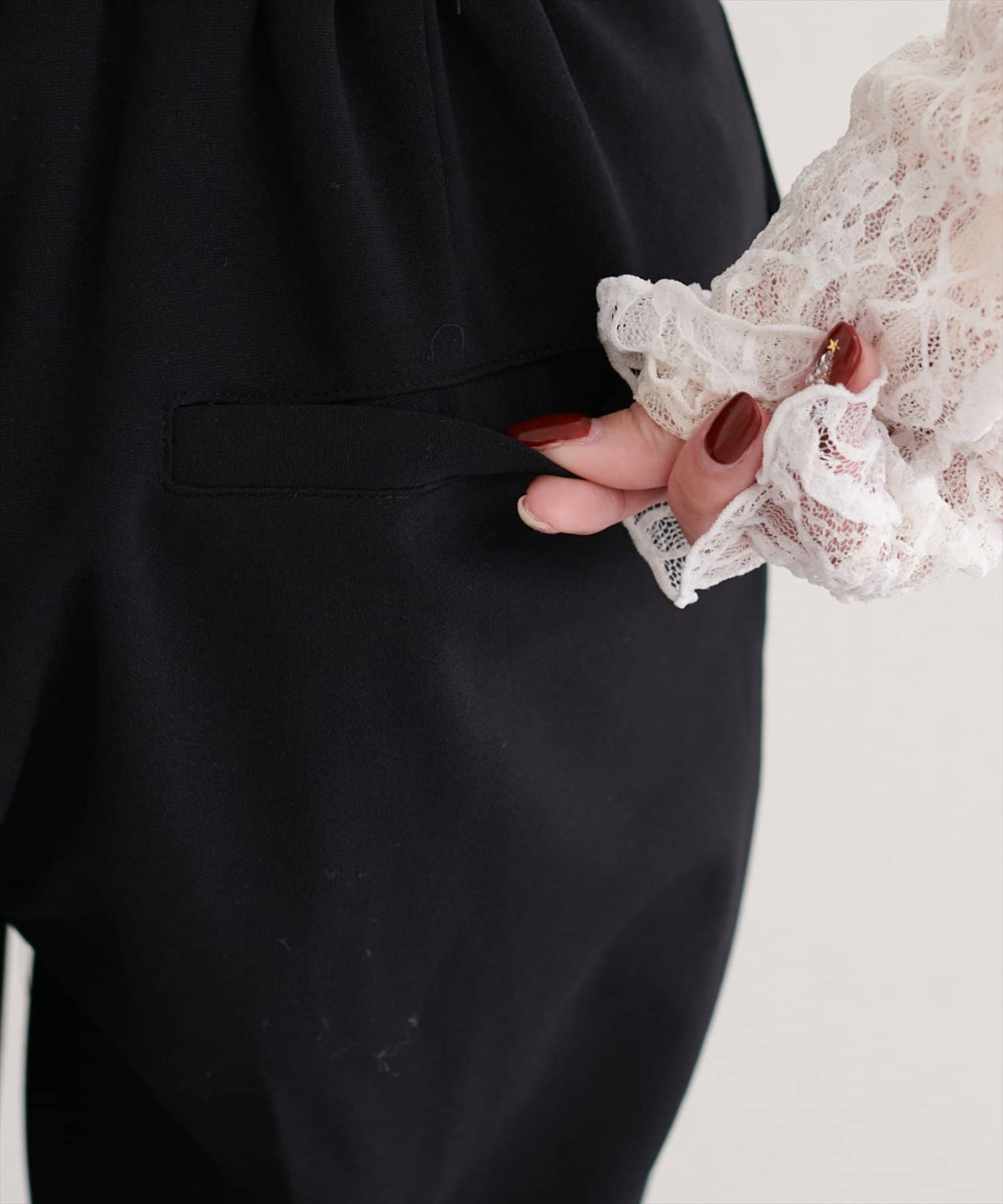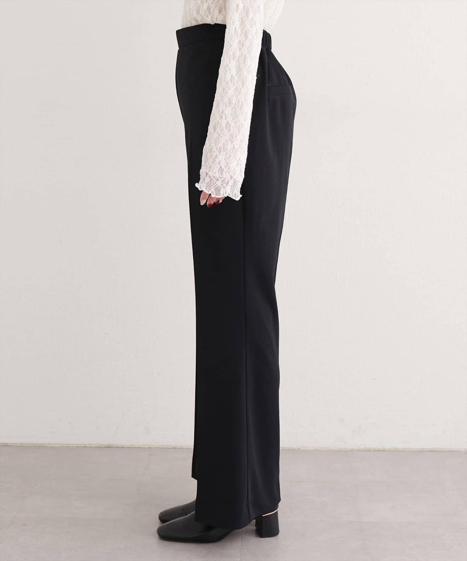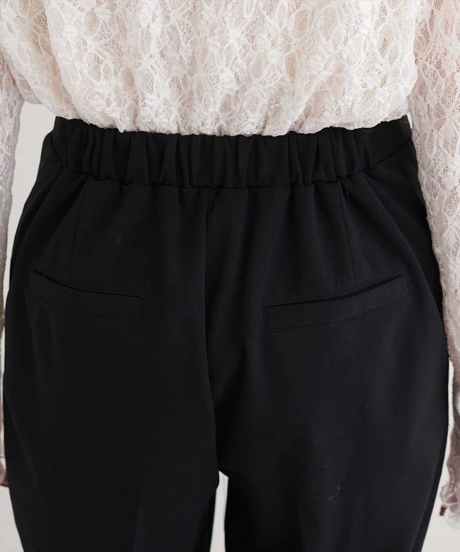 ウエストはすっきりとしたデザインで、トップスをインしてもアウトにしてもバランス良く決まります。