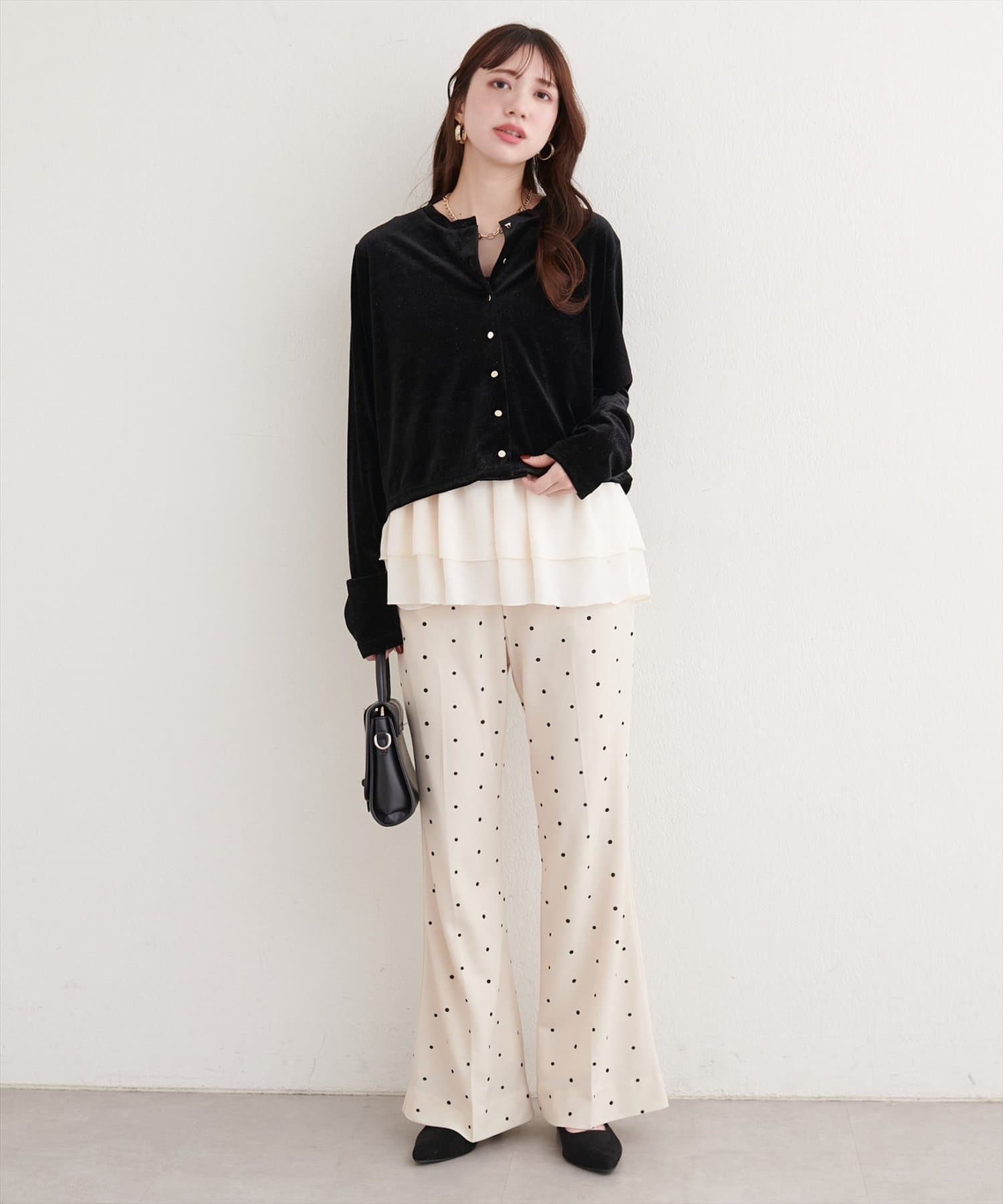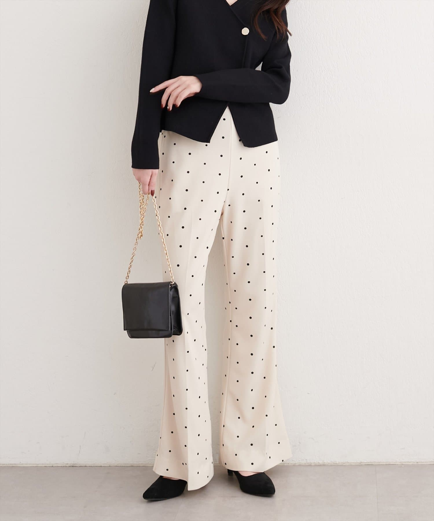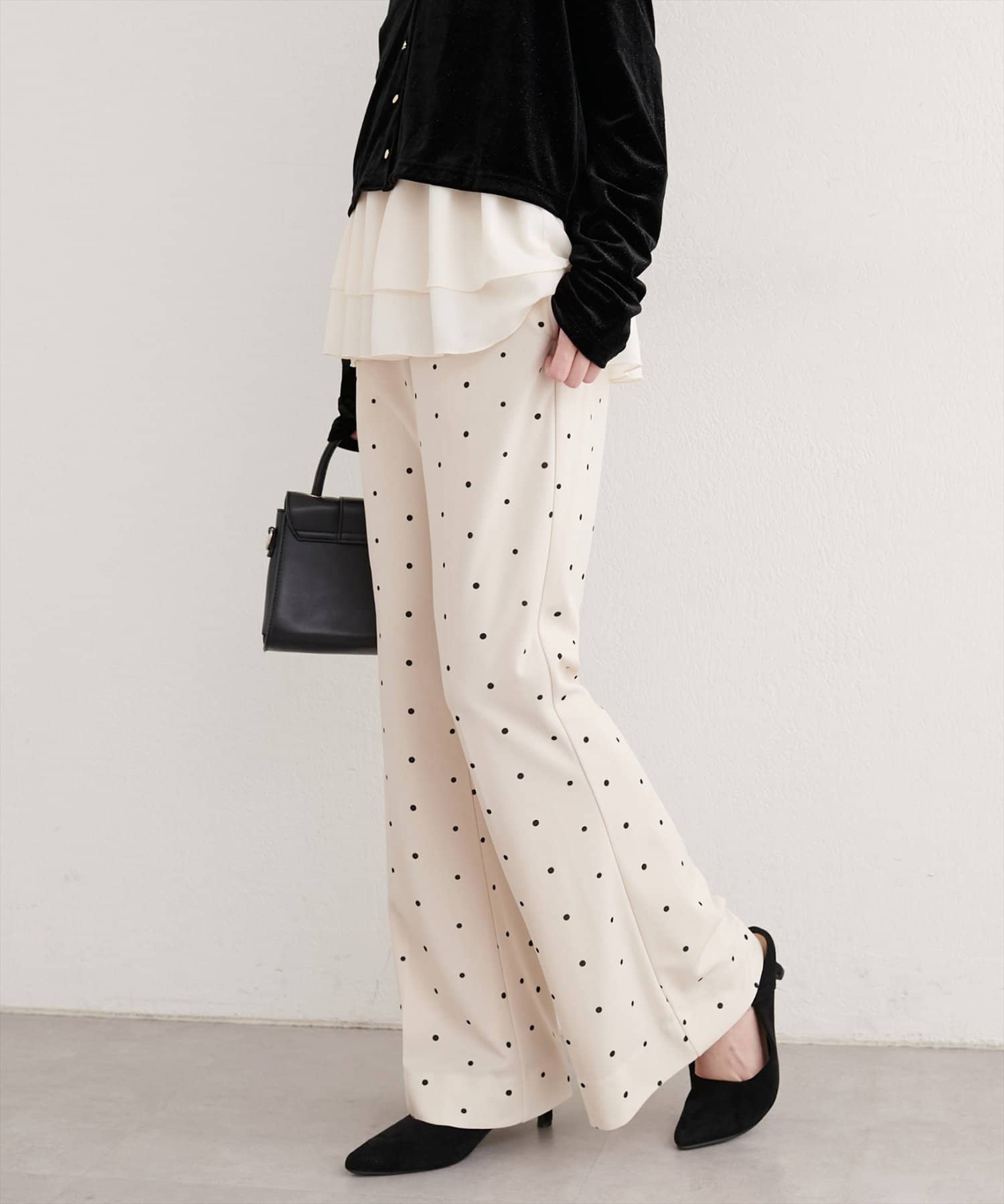 カットジョーゼットストレッチフレアヘムパンツ