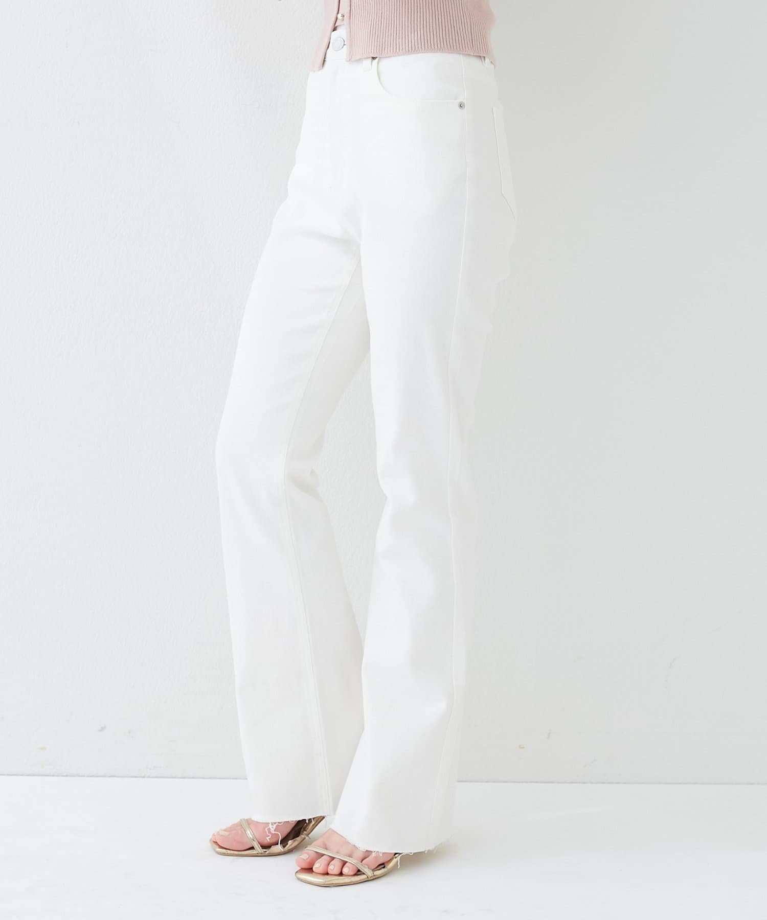 どんなトップスにも合わせやすい、すっきりとしたストレートシルエット。