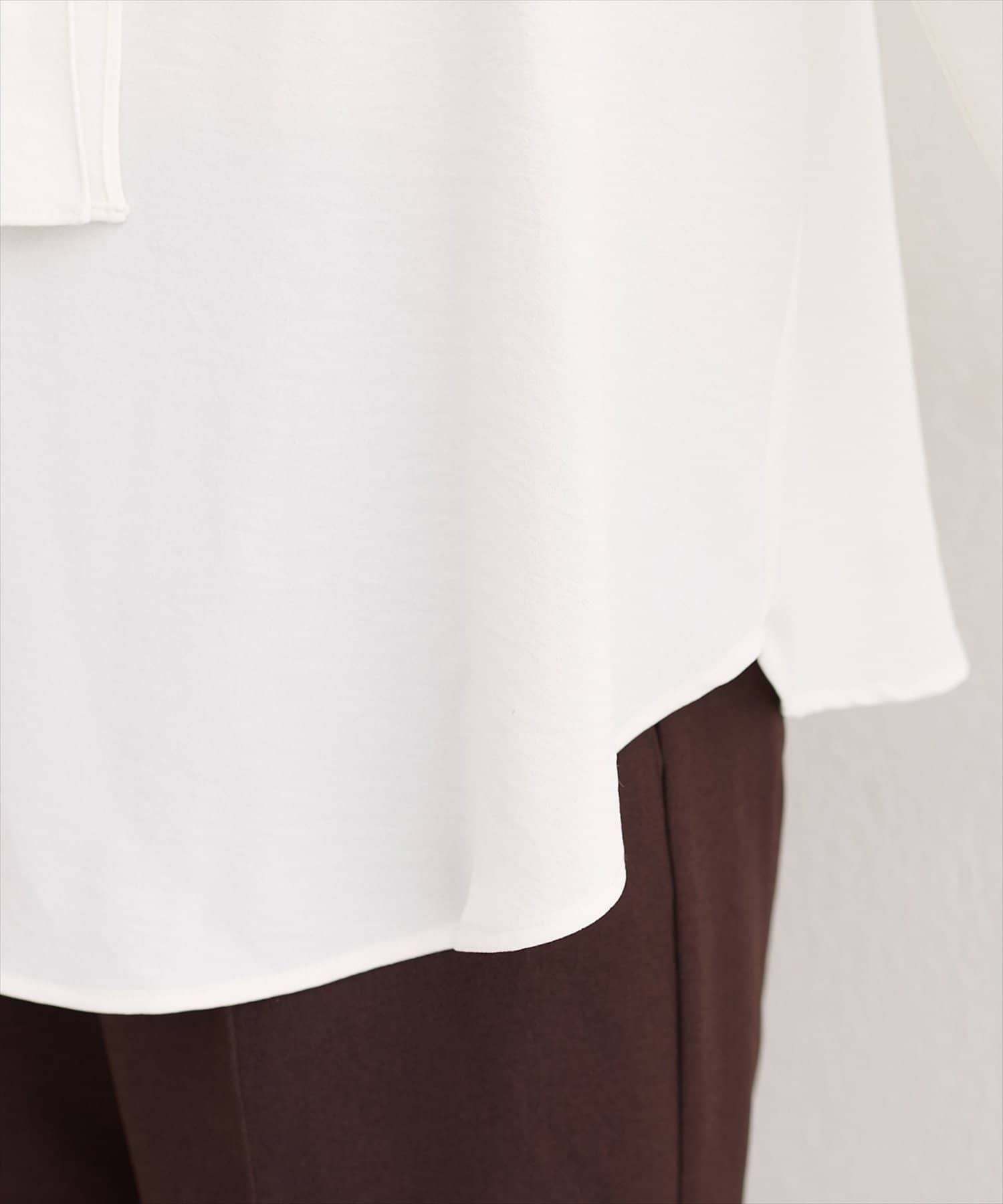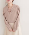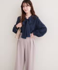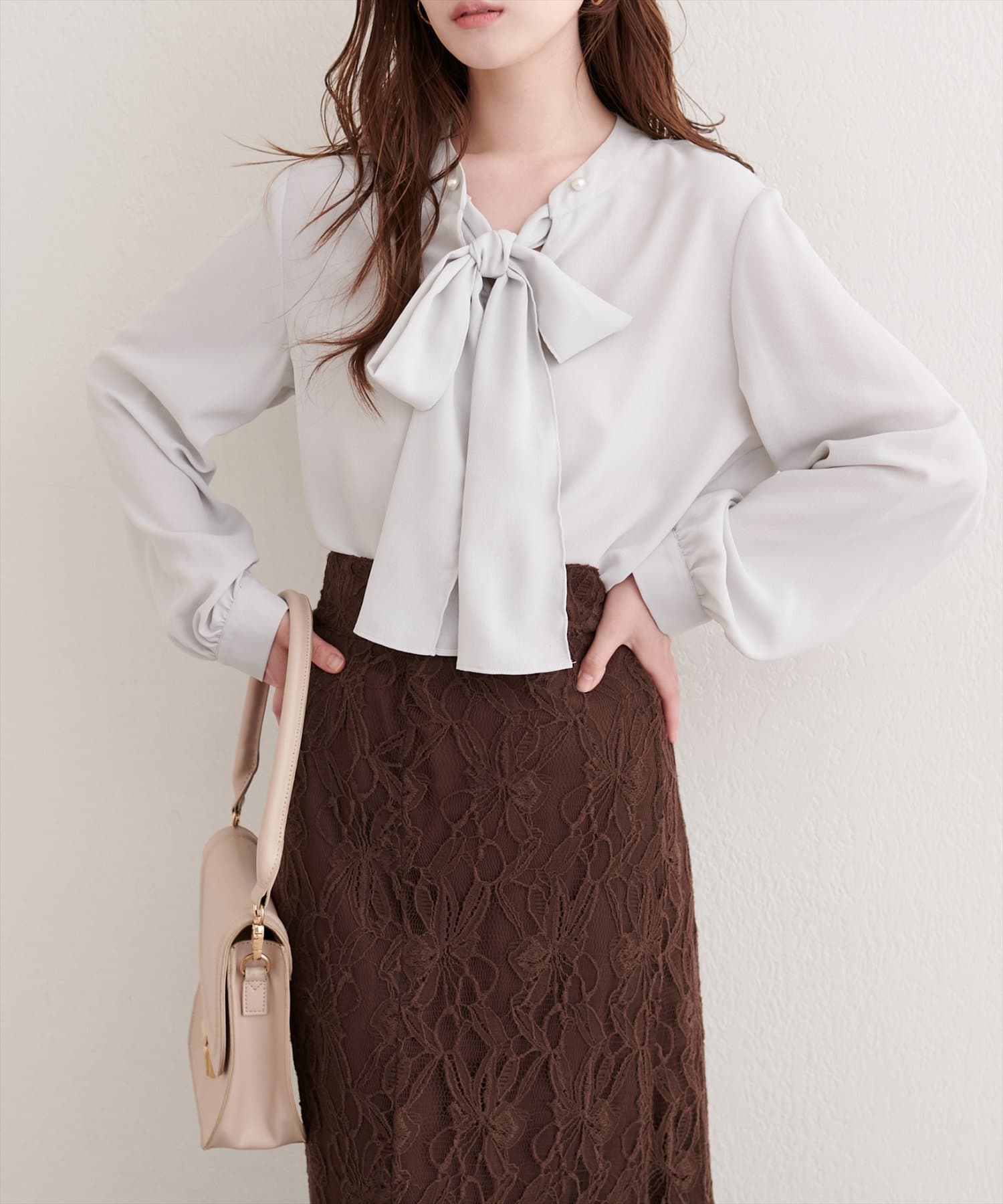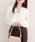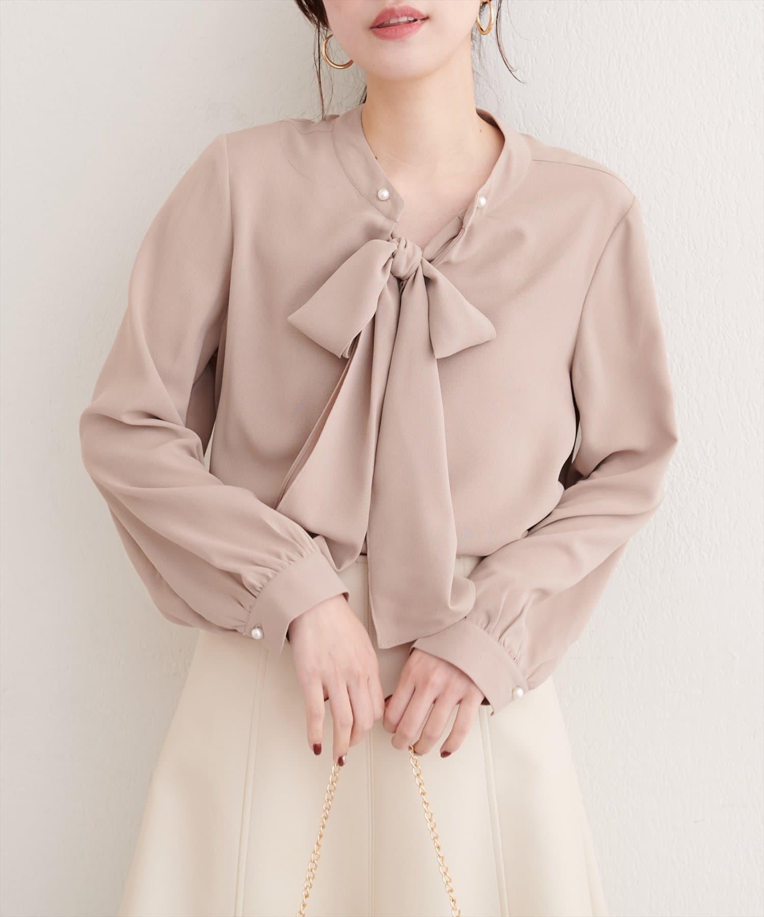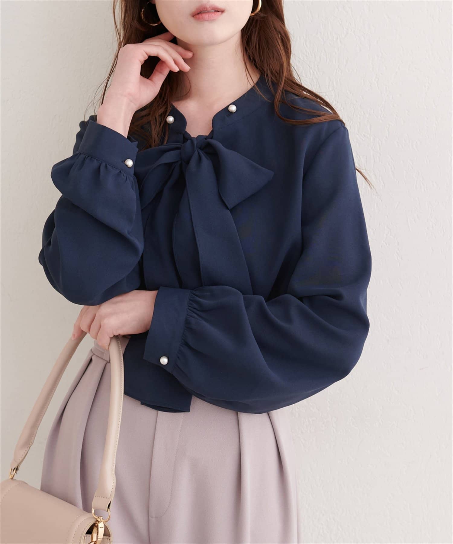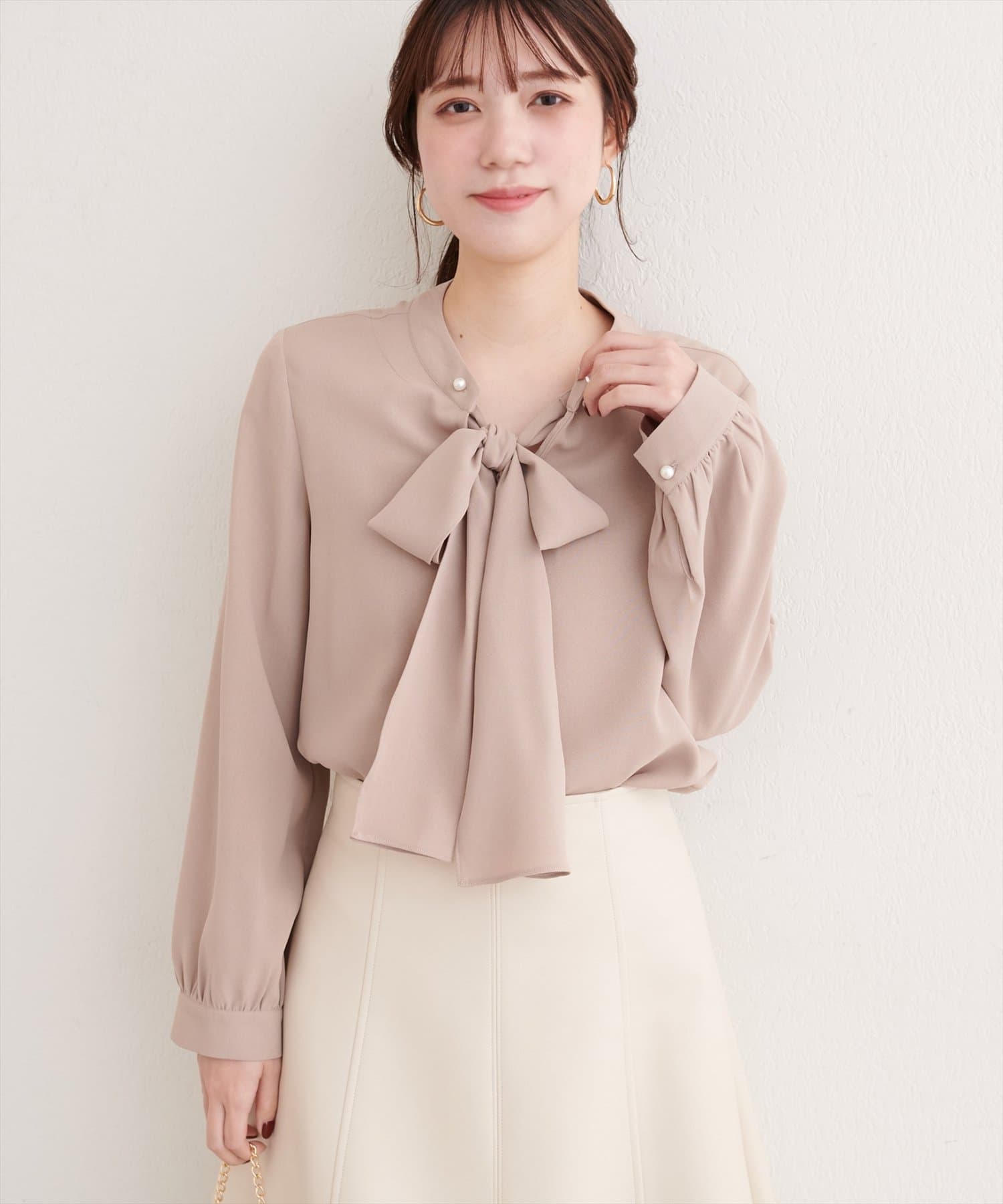 リボンを結んで上品で華やかな印象に、リボンを外してシンプルなクルーネックブラウスとして、2つの表情を楽しめます。