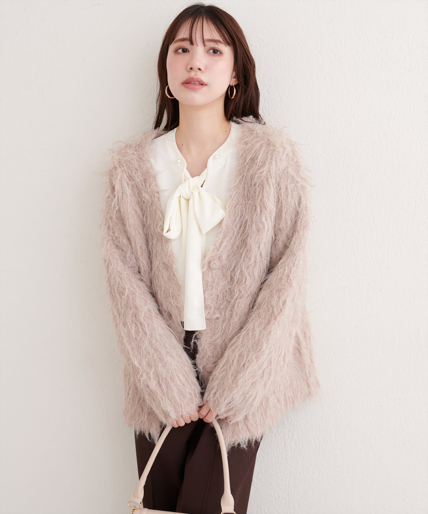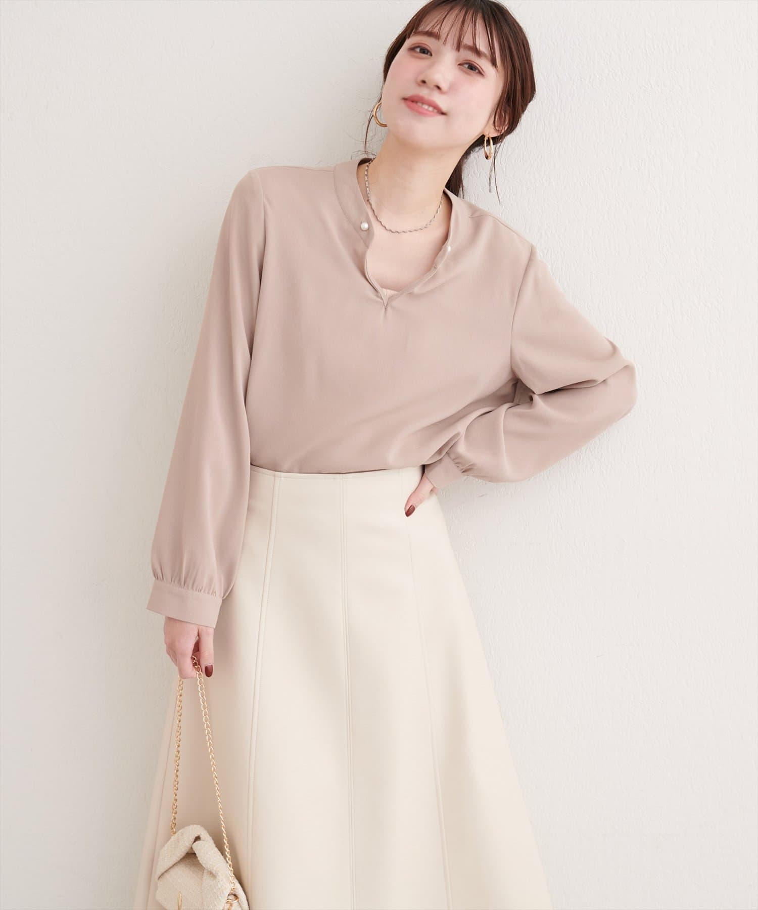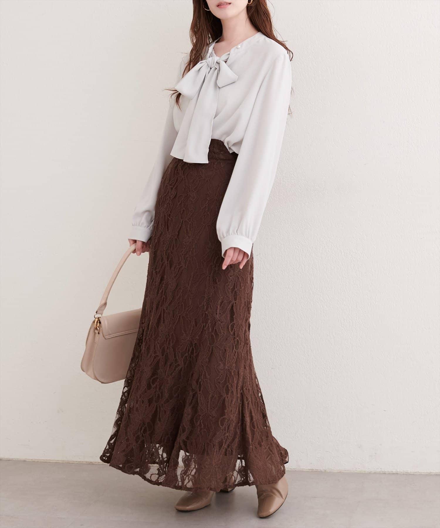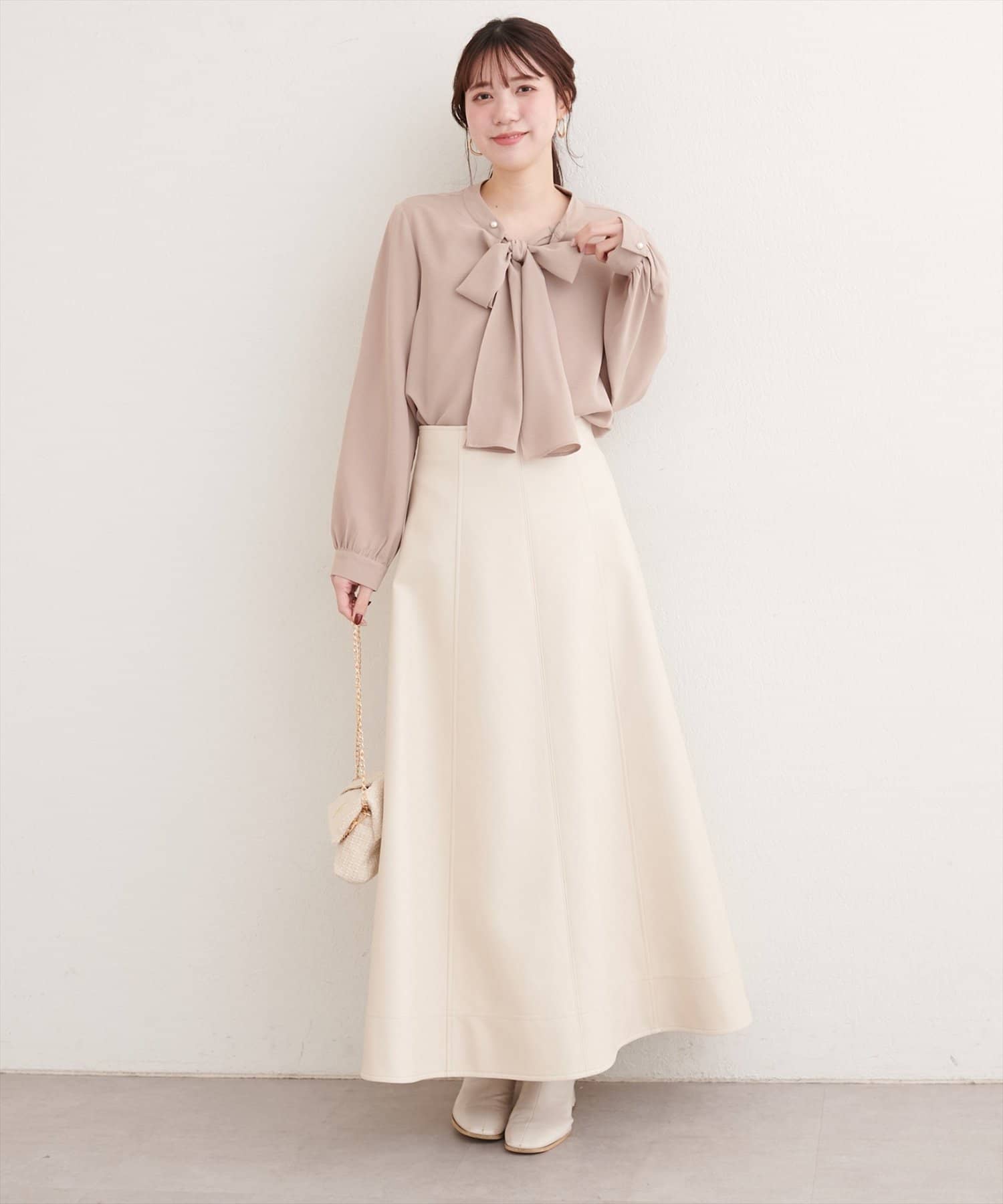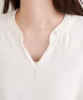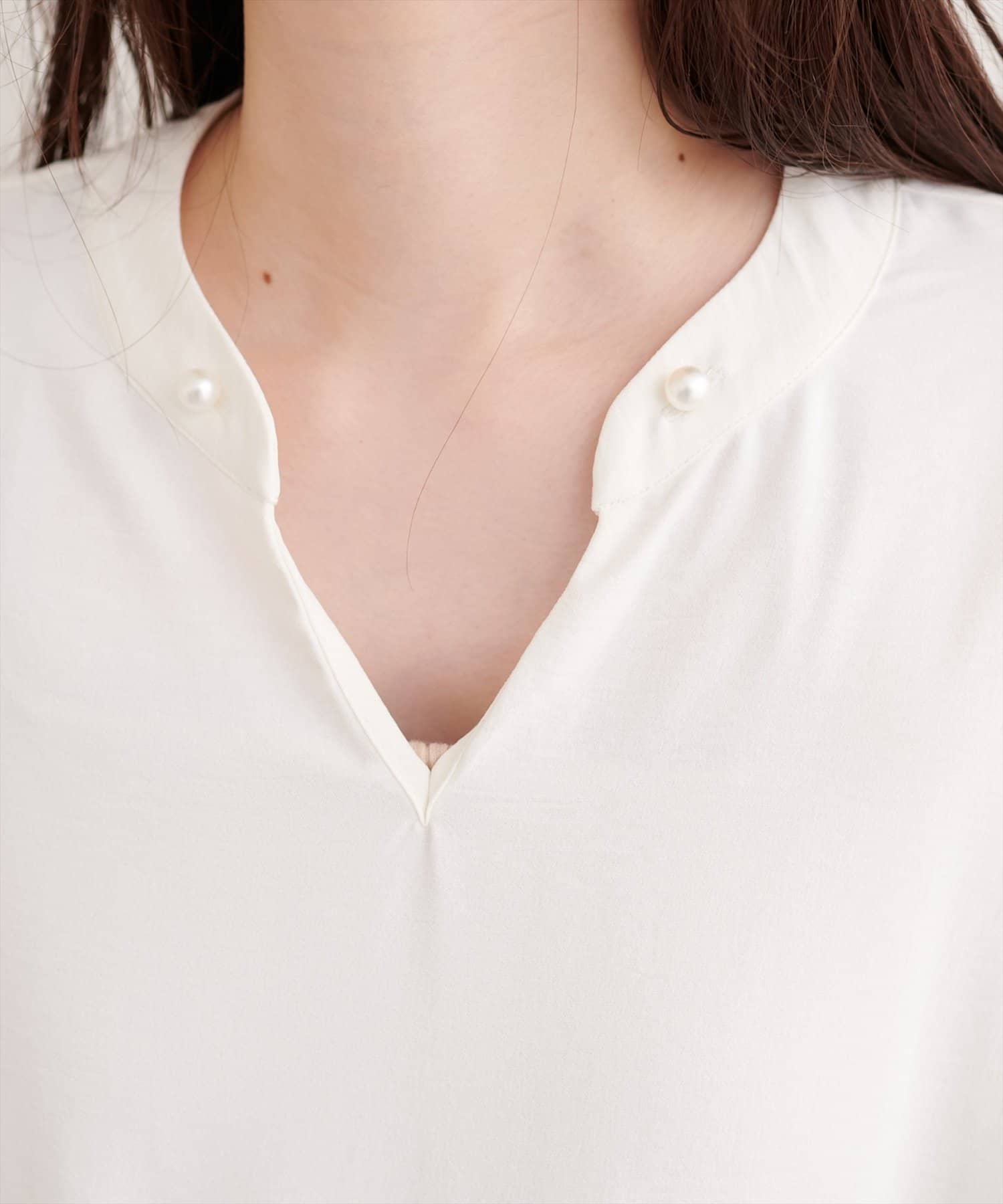 リボンを結んで上品で華やかな印象に、リボンを外してシンプルなクルーネックブラウスとして、2つの表情を楽しめます。