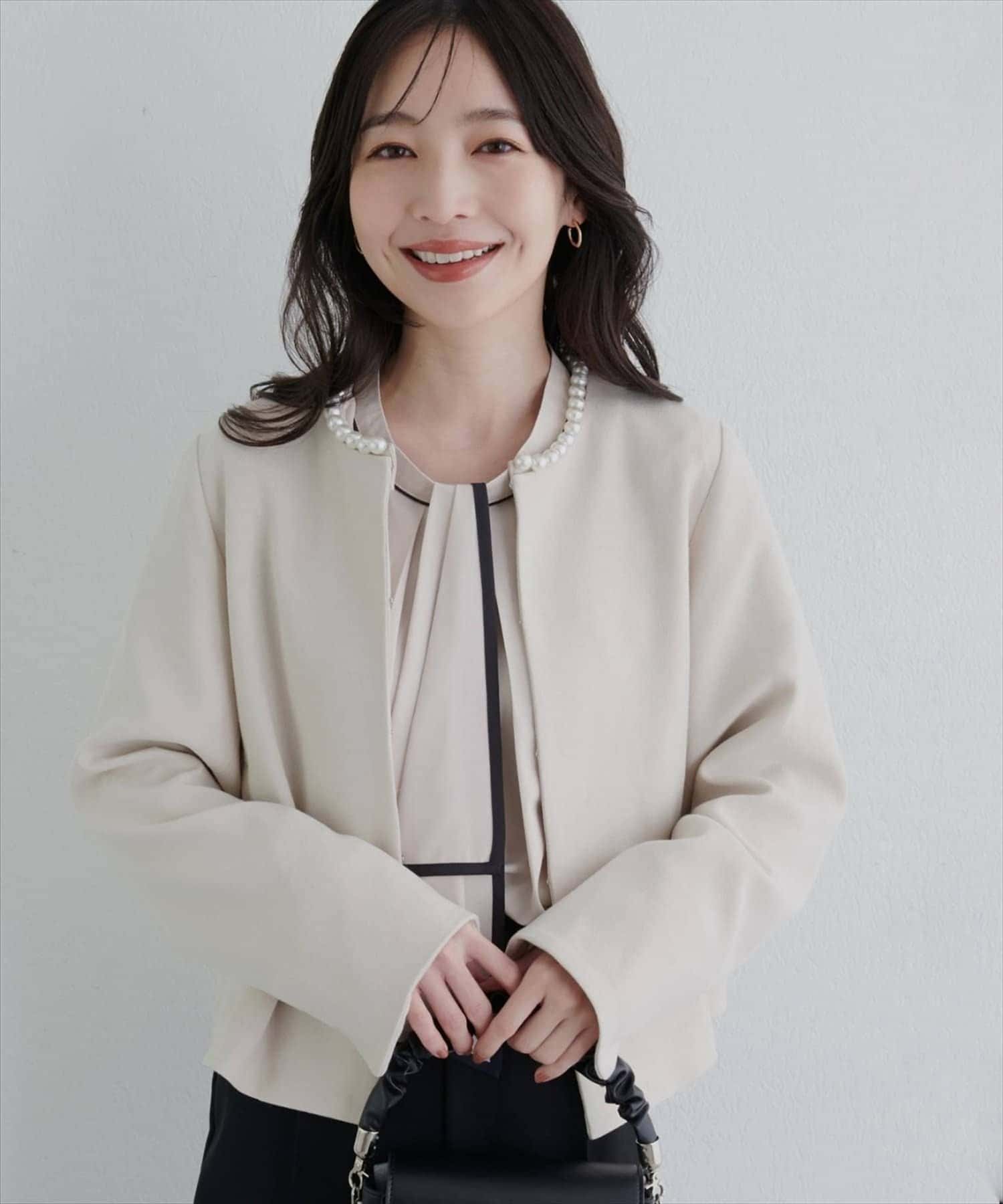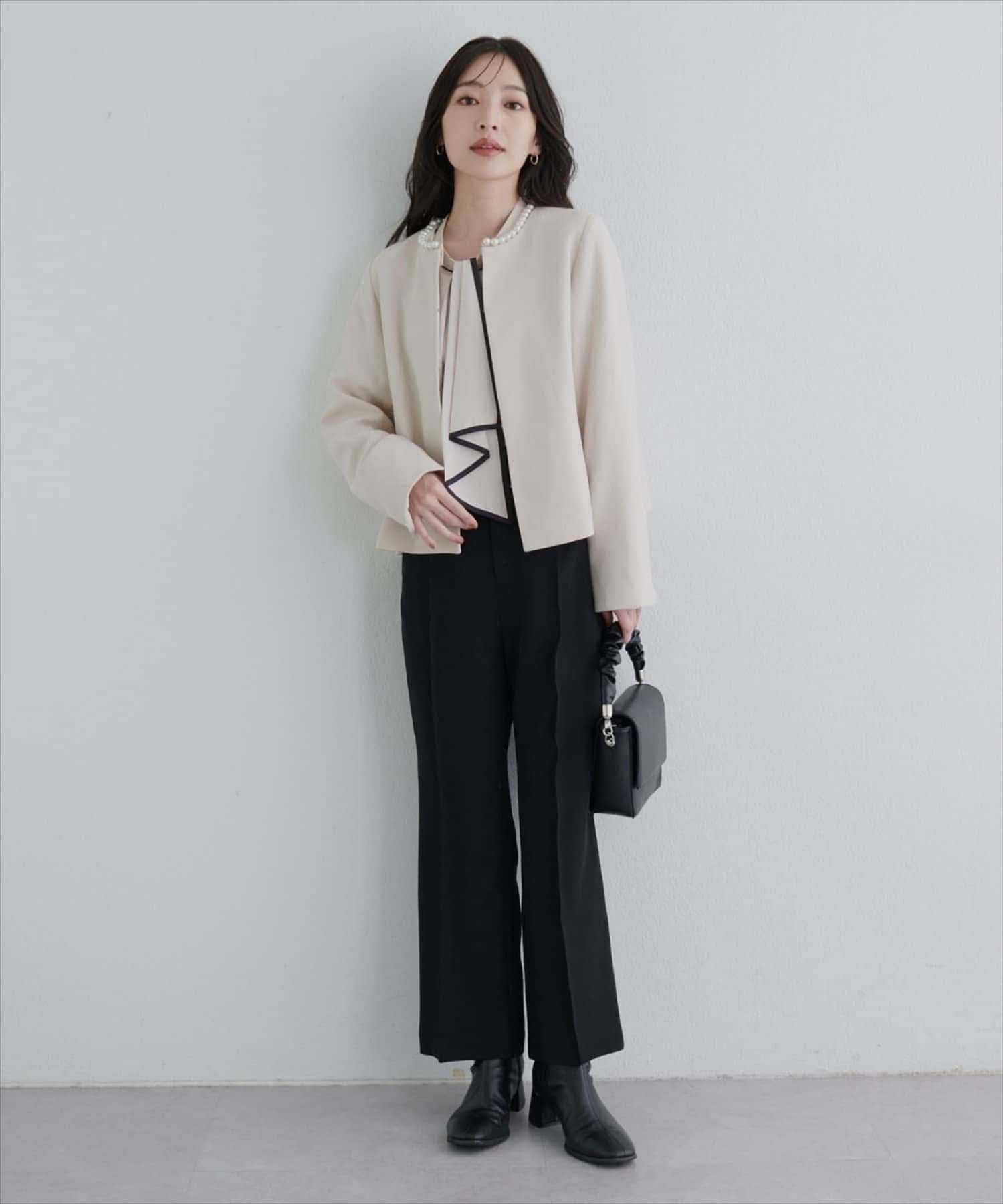 一枚で上品なアイテムなので、スカートスタイルはもちろん、デニムなどを合わせてカジュアルダウンするスタイルも◎