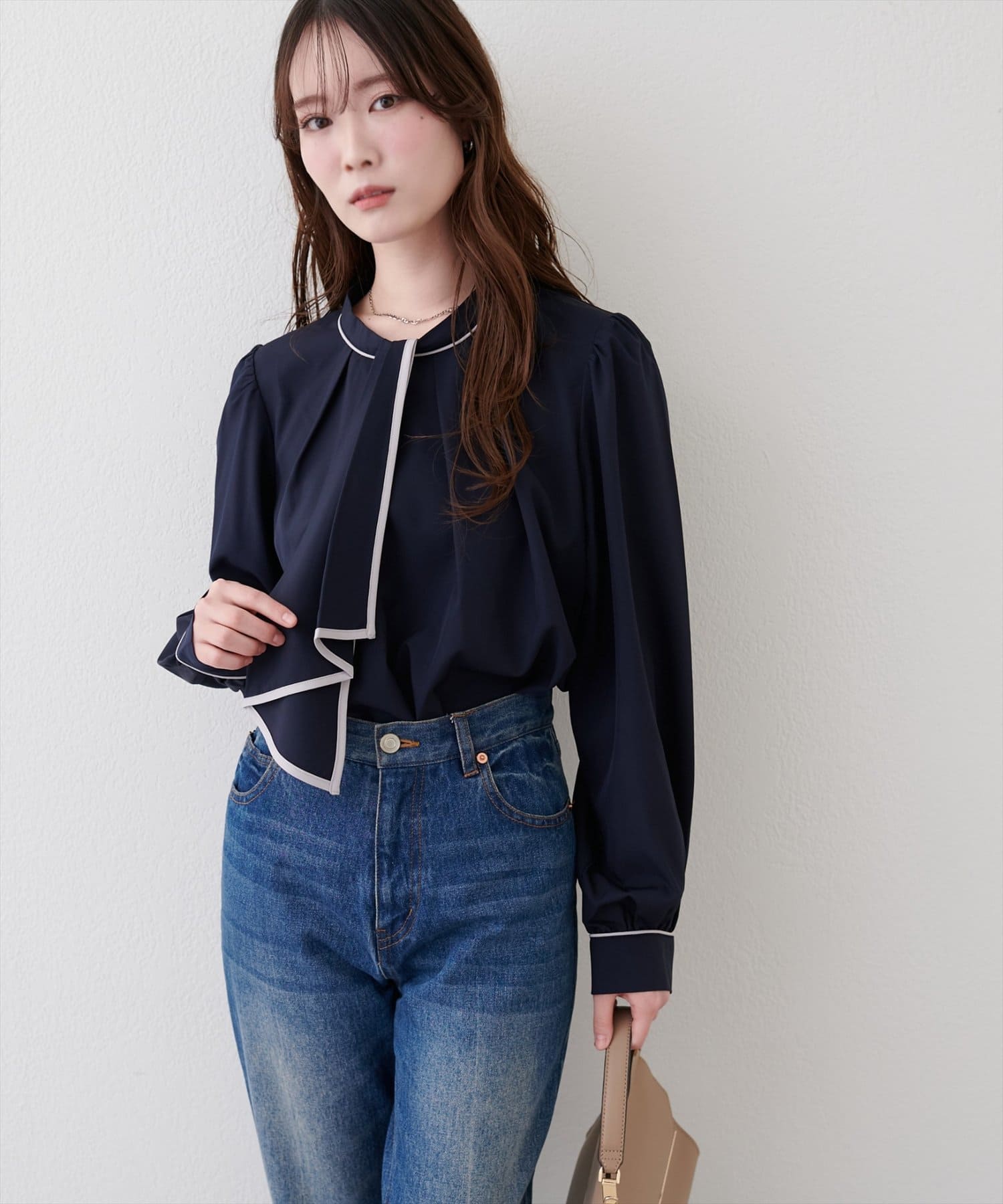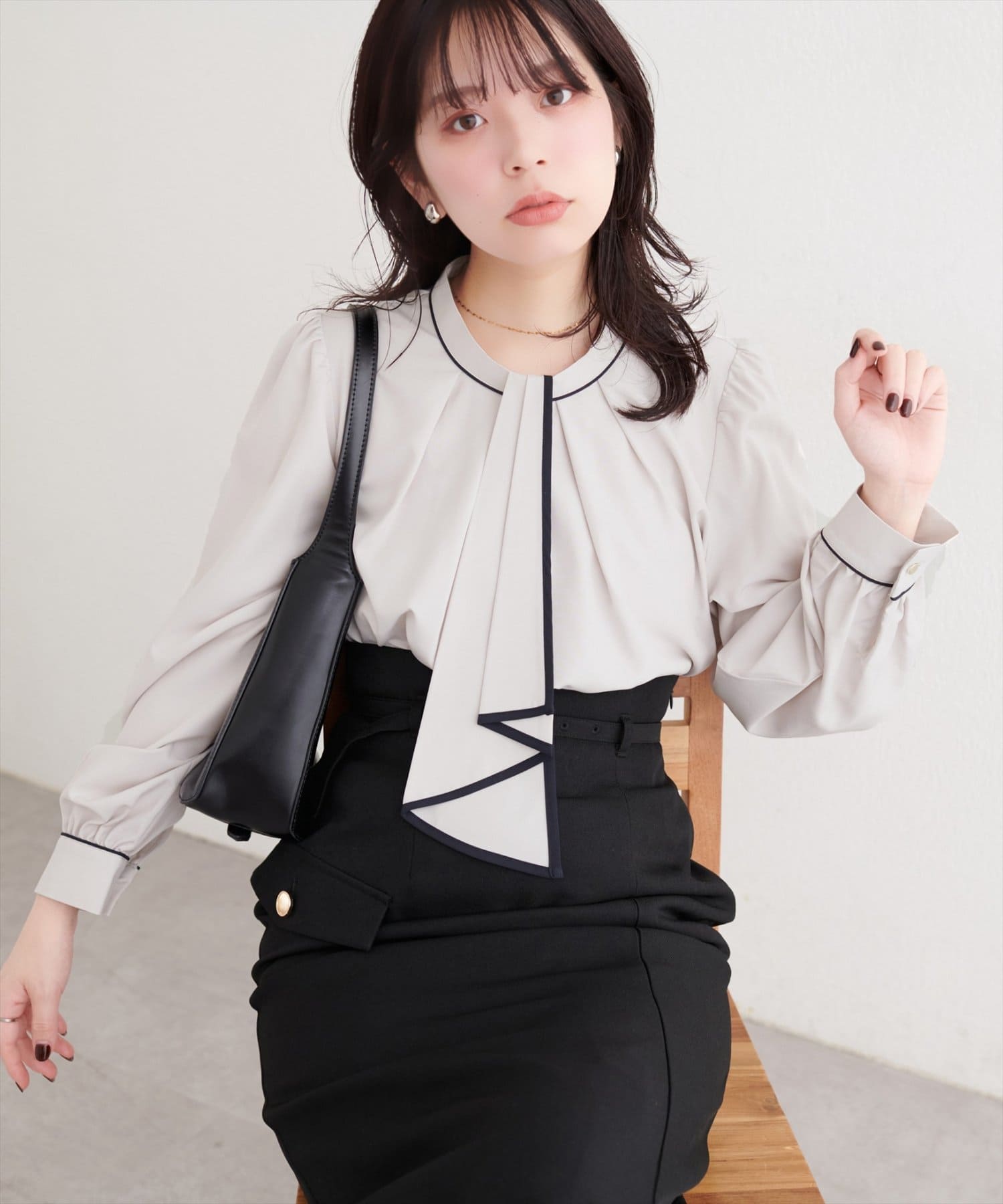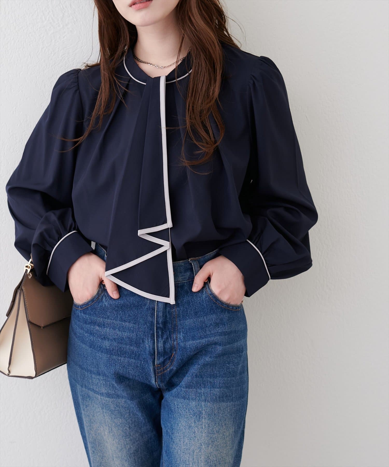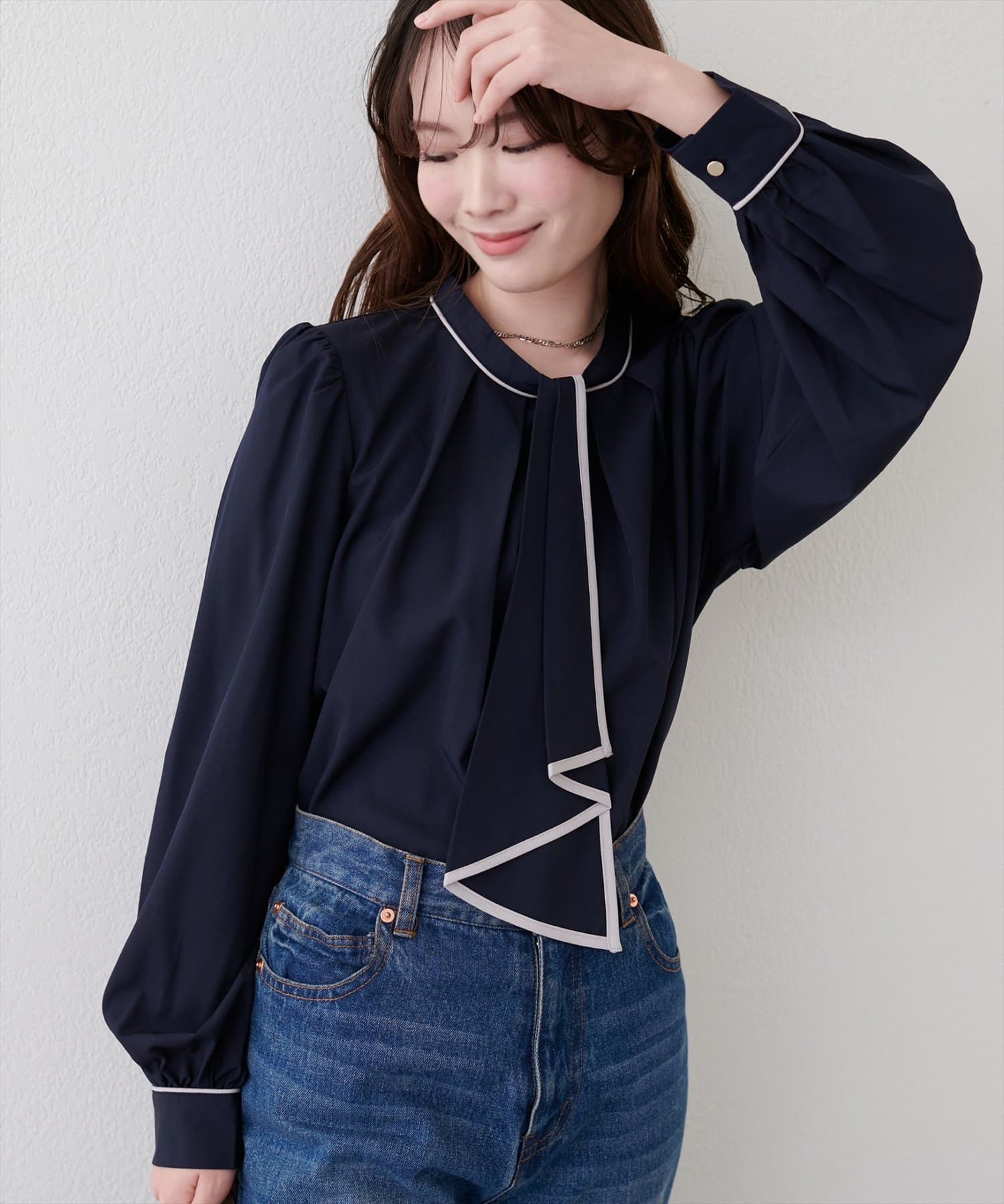 上品な華やかさをもたらしてくれるボウタイブラウス。