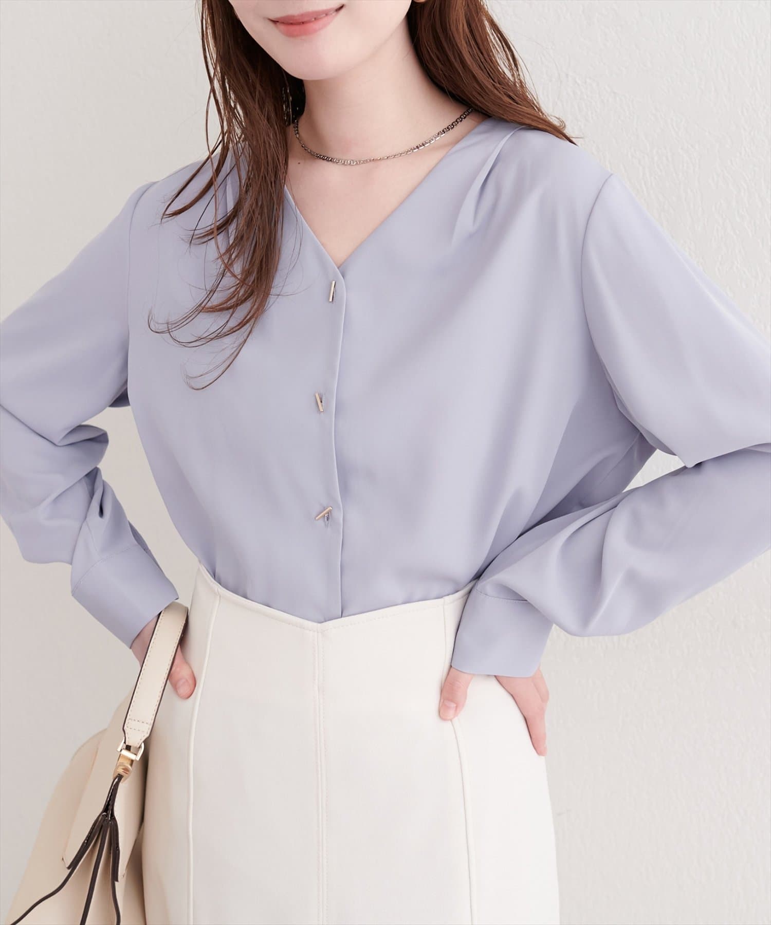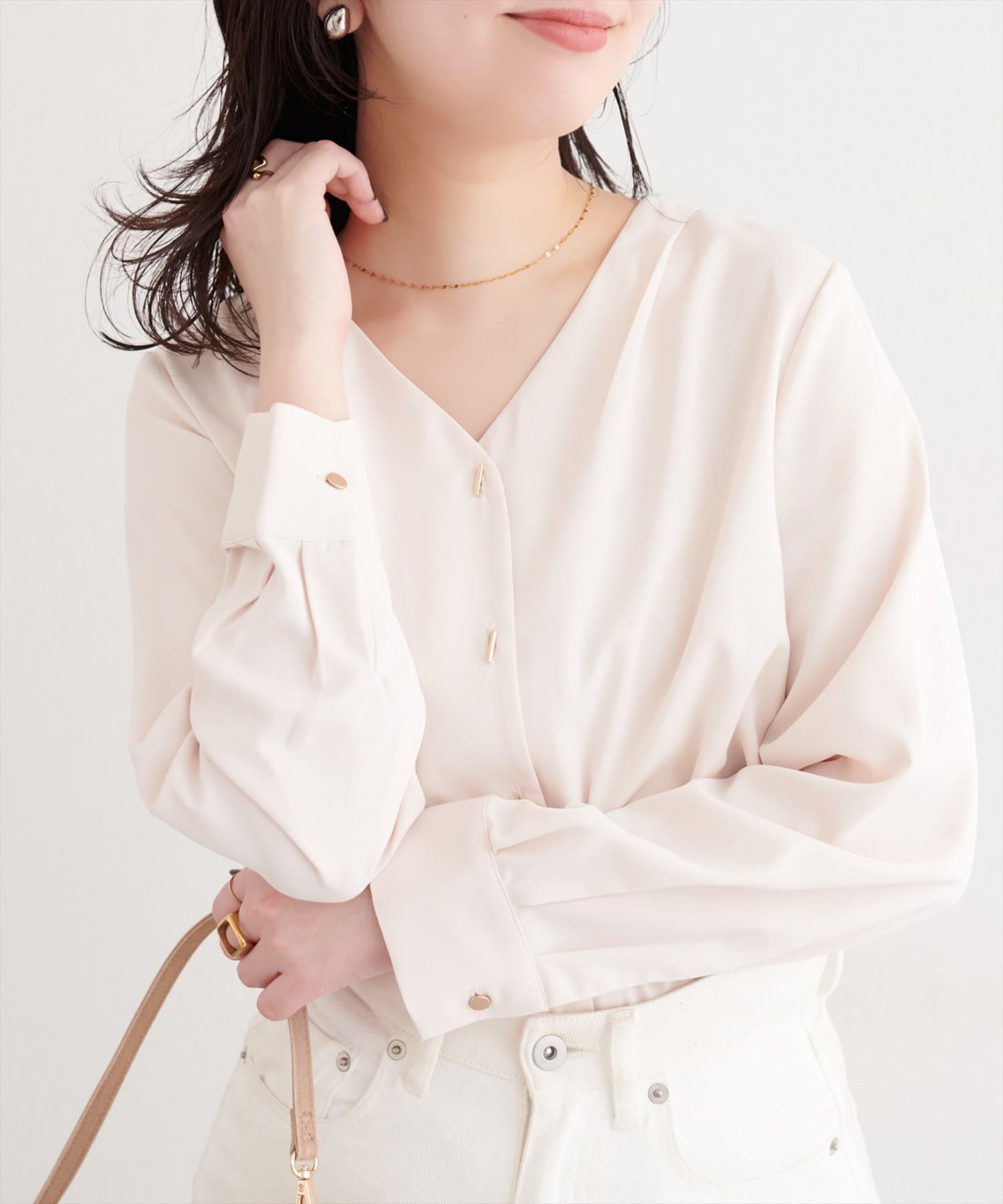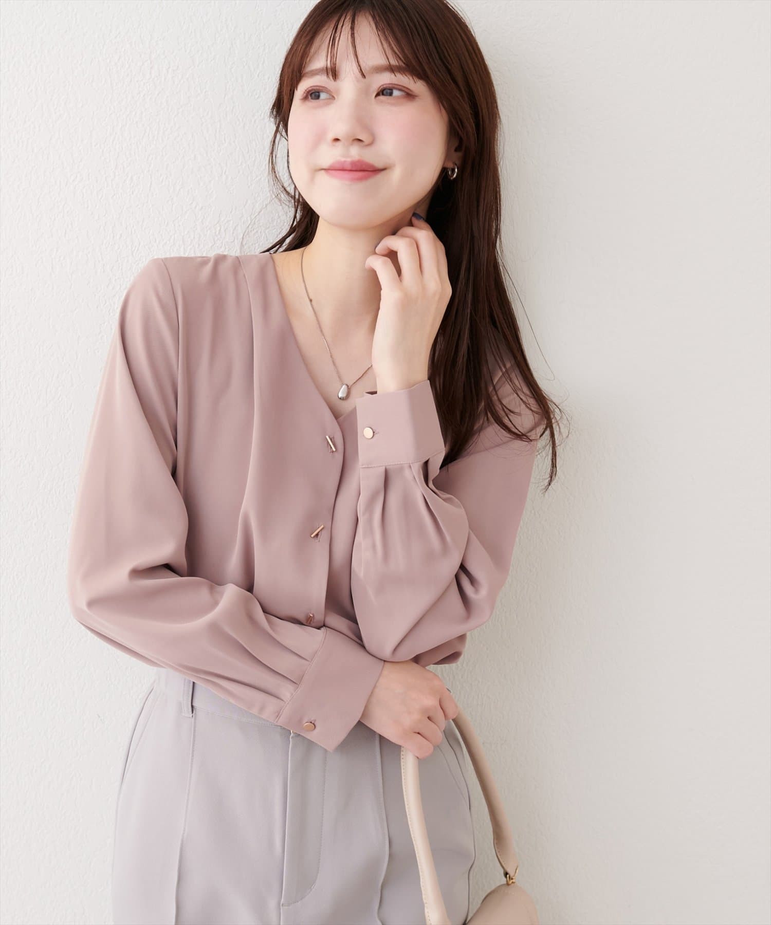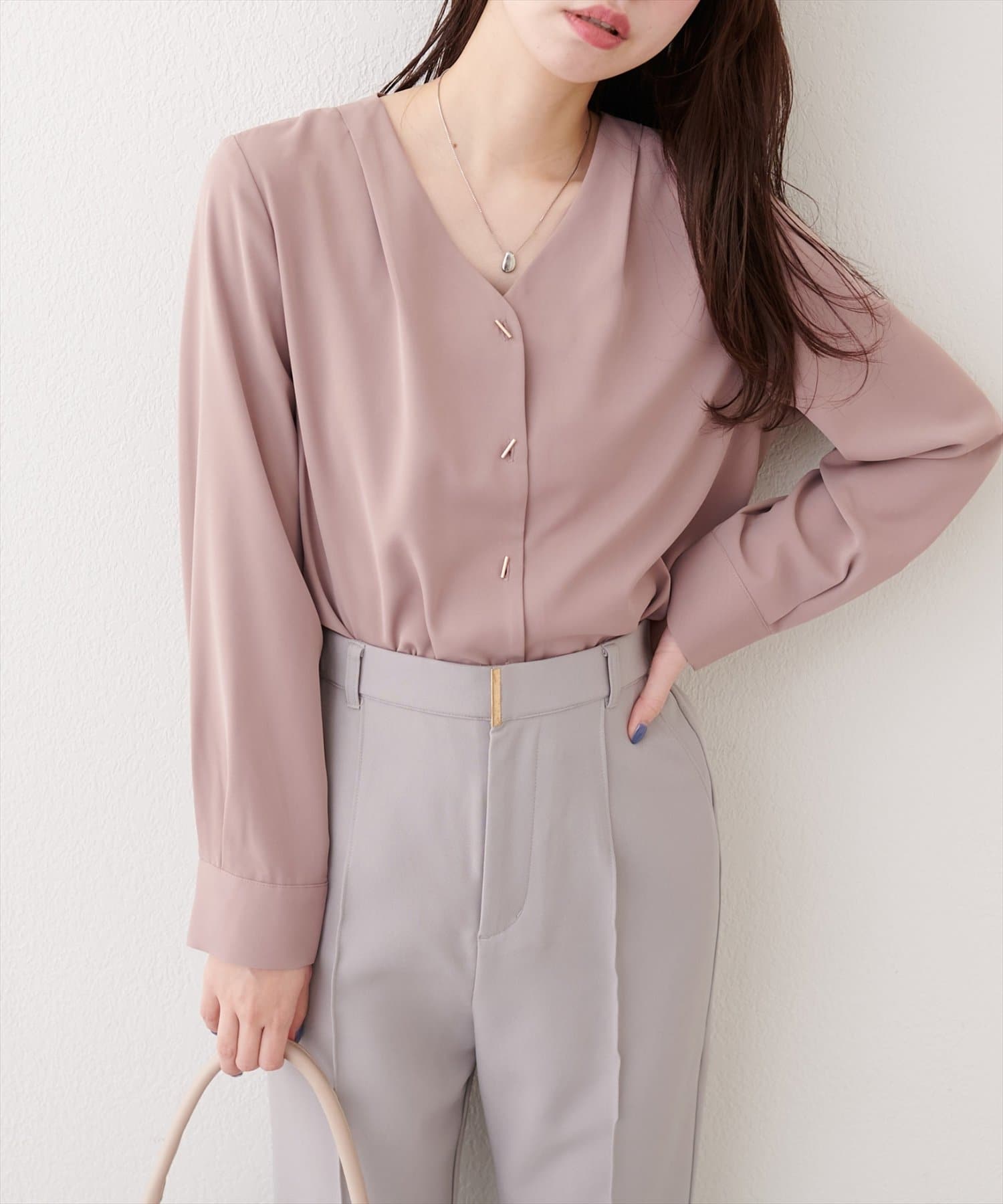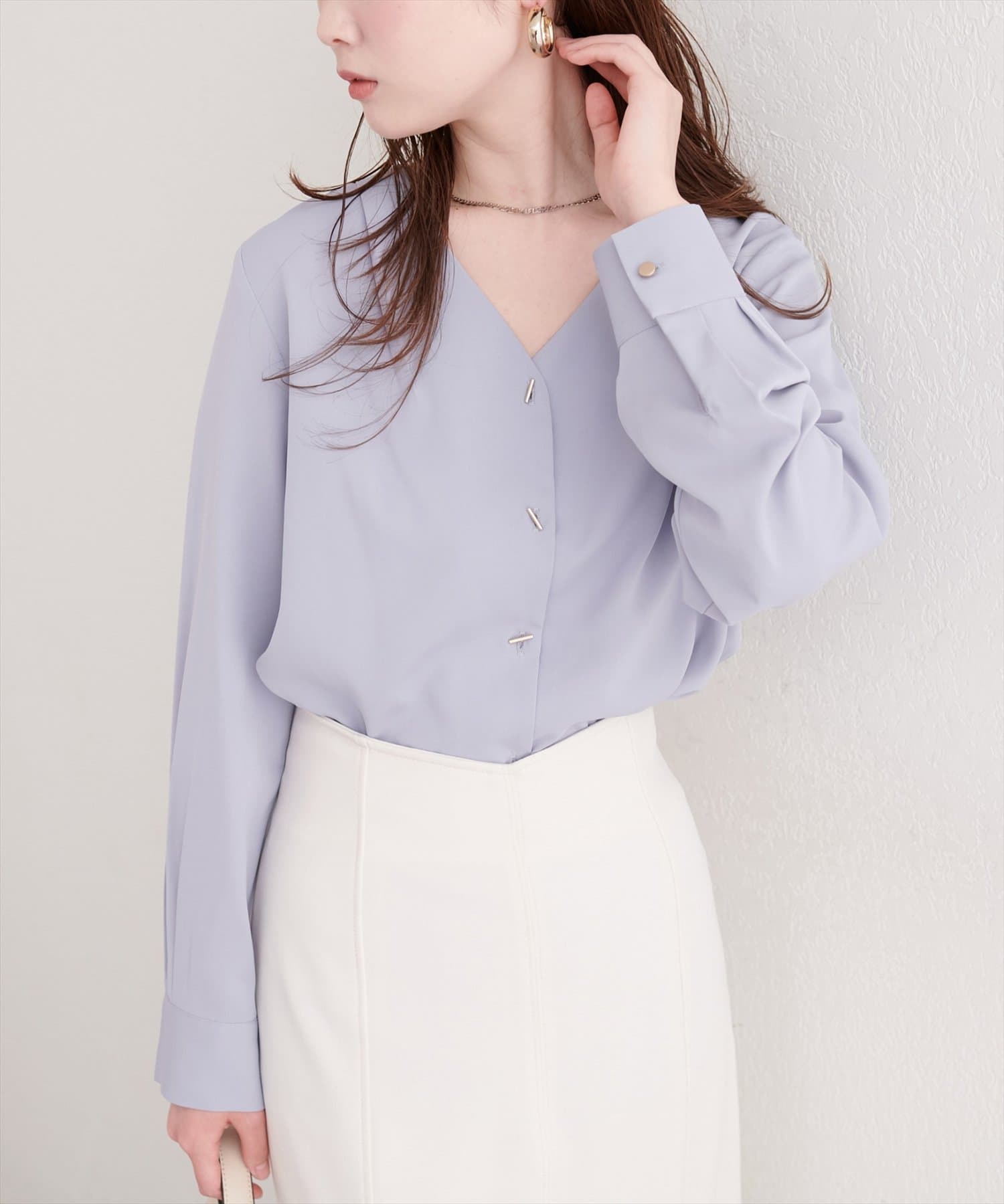 フロントにあしらったバーボタンがポイントのお上品ブラウス。