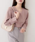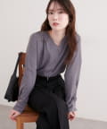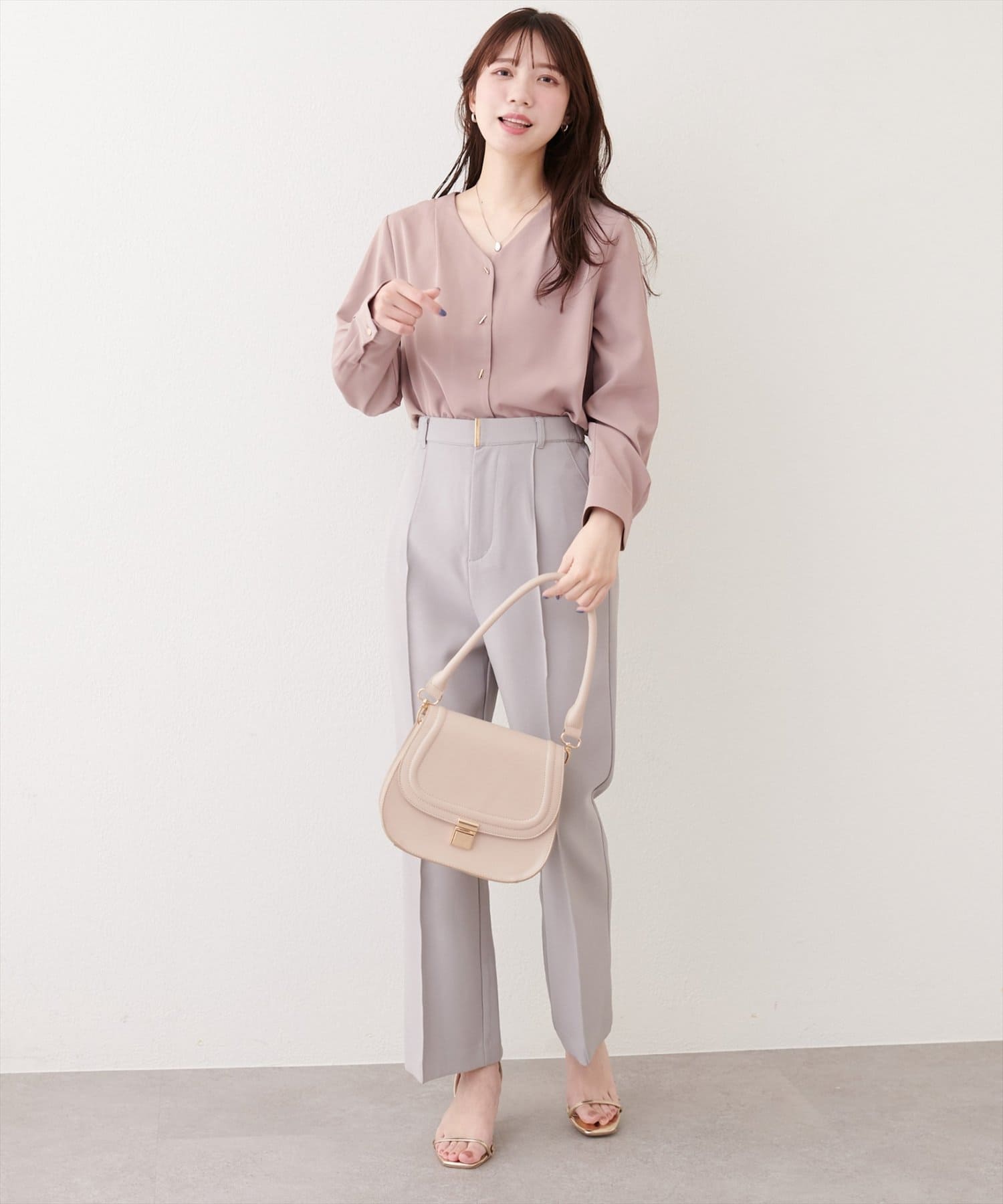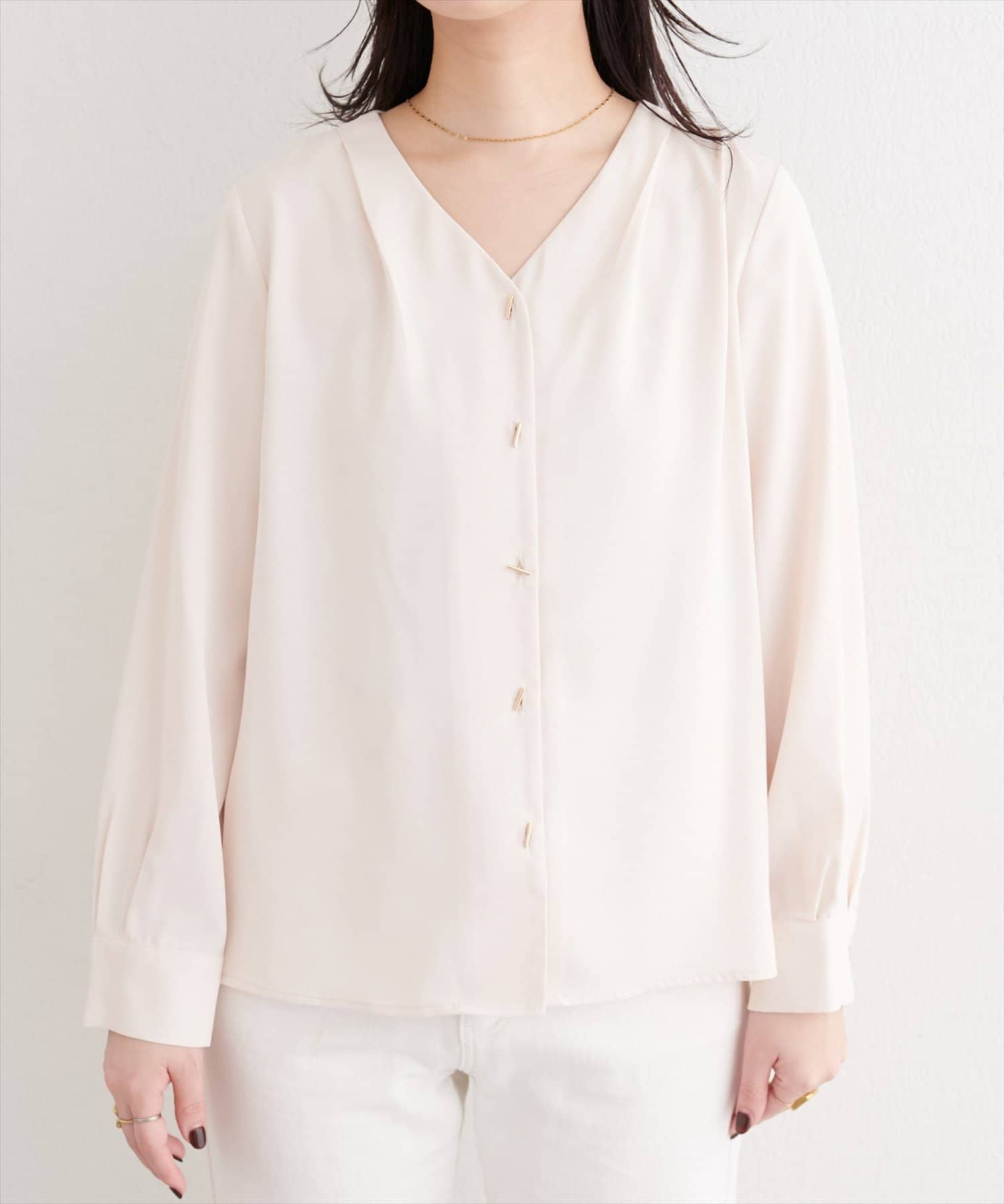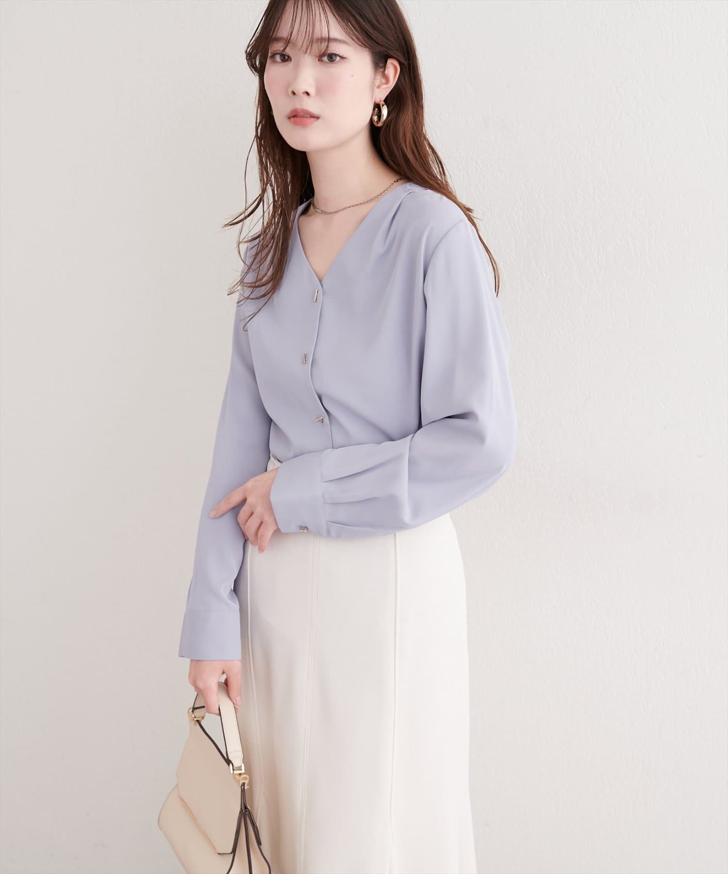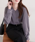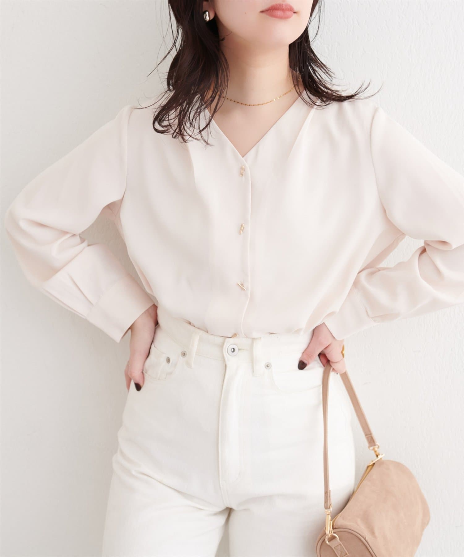 フロントにあしらったバーボタンがポイントのお上品ブラウス。