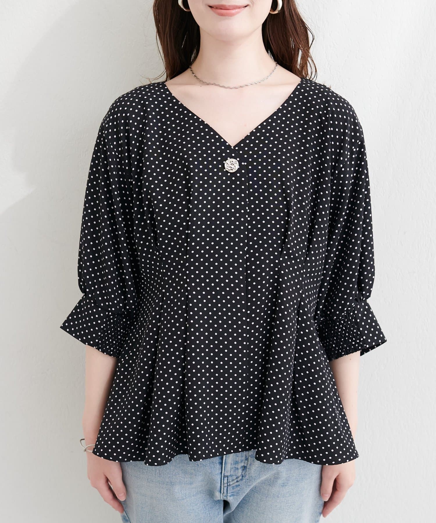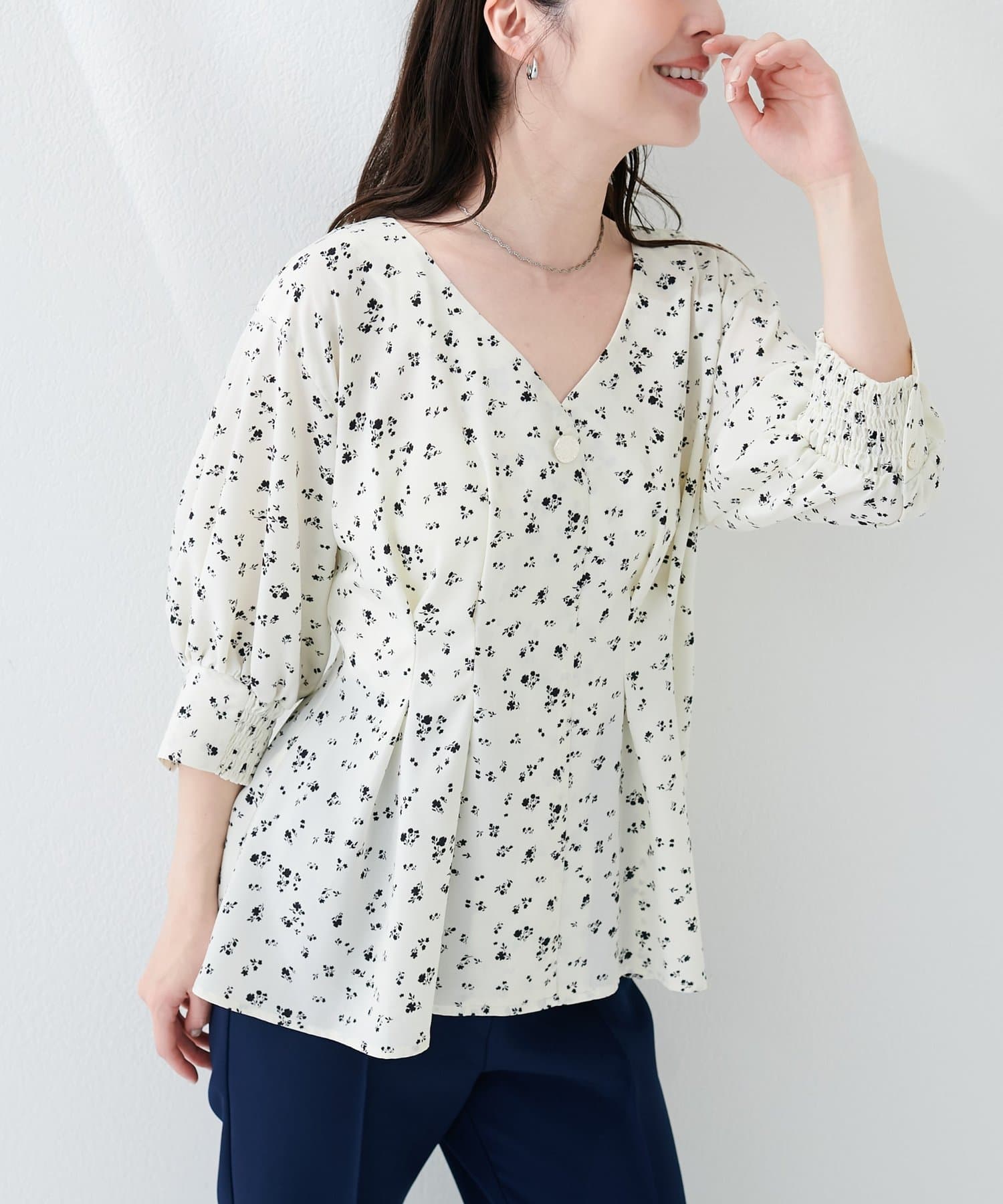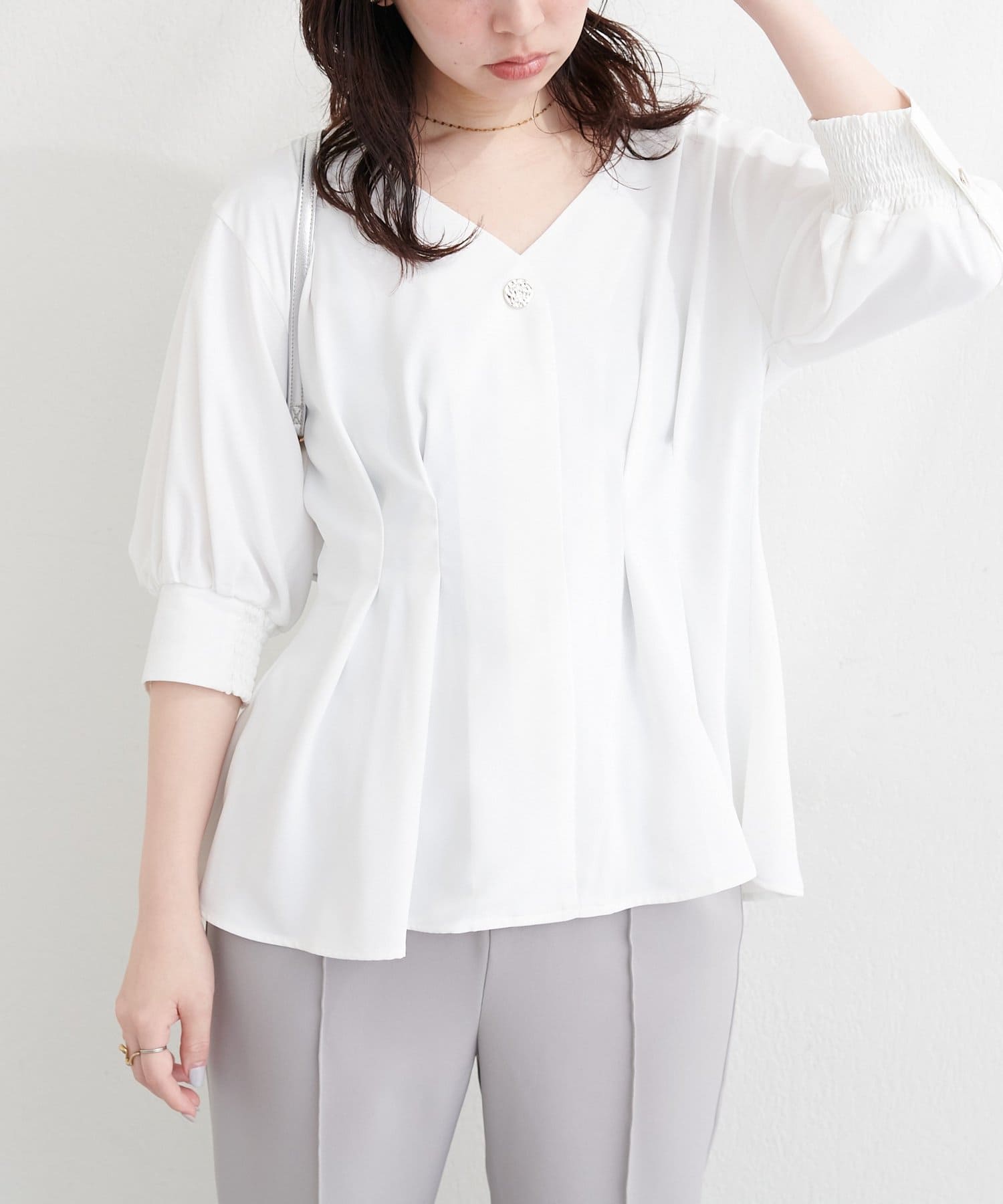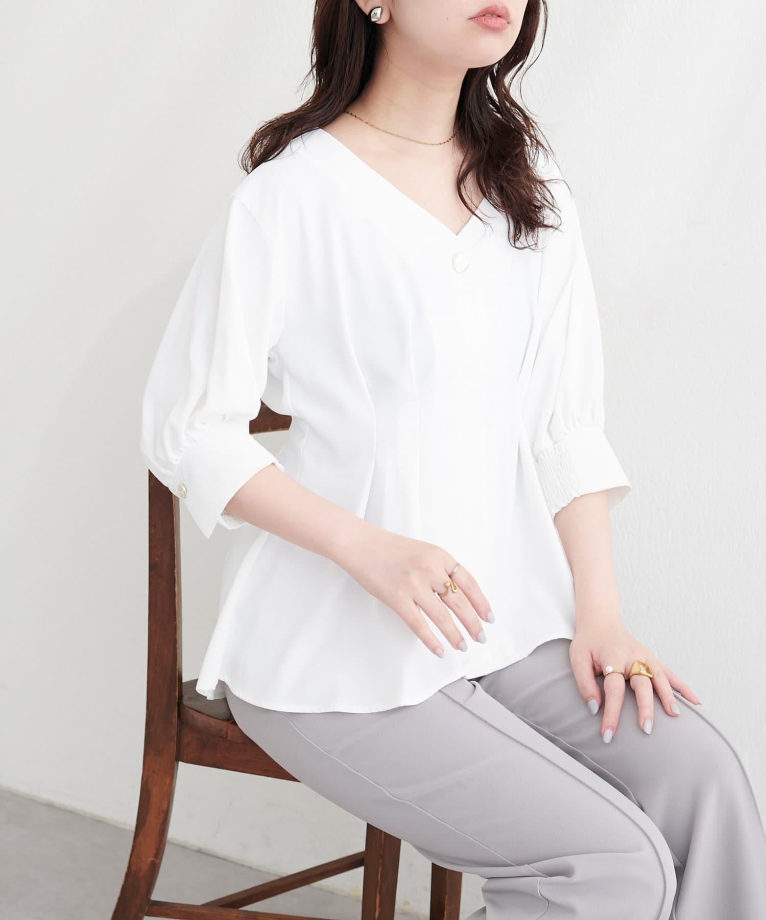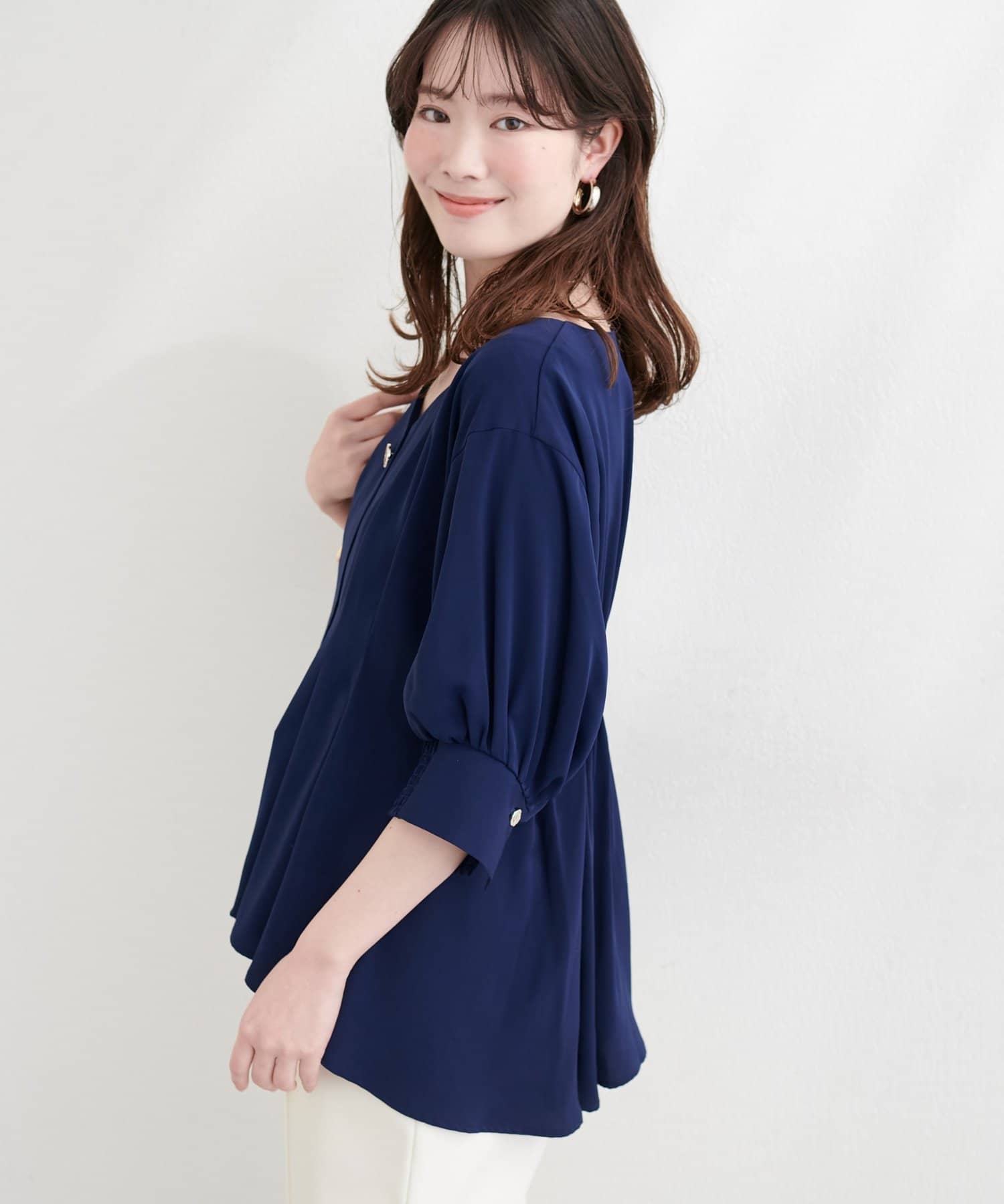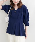 〈osono〉タックデザインぺプラム5分袖ブラウス