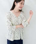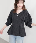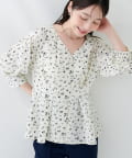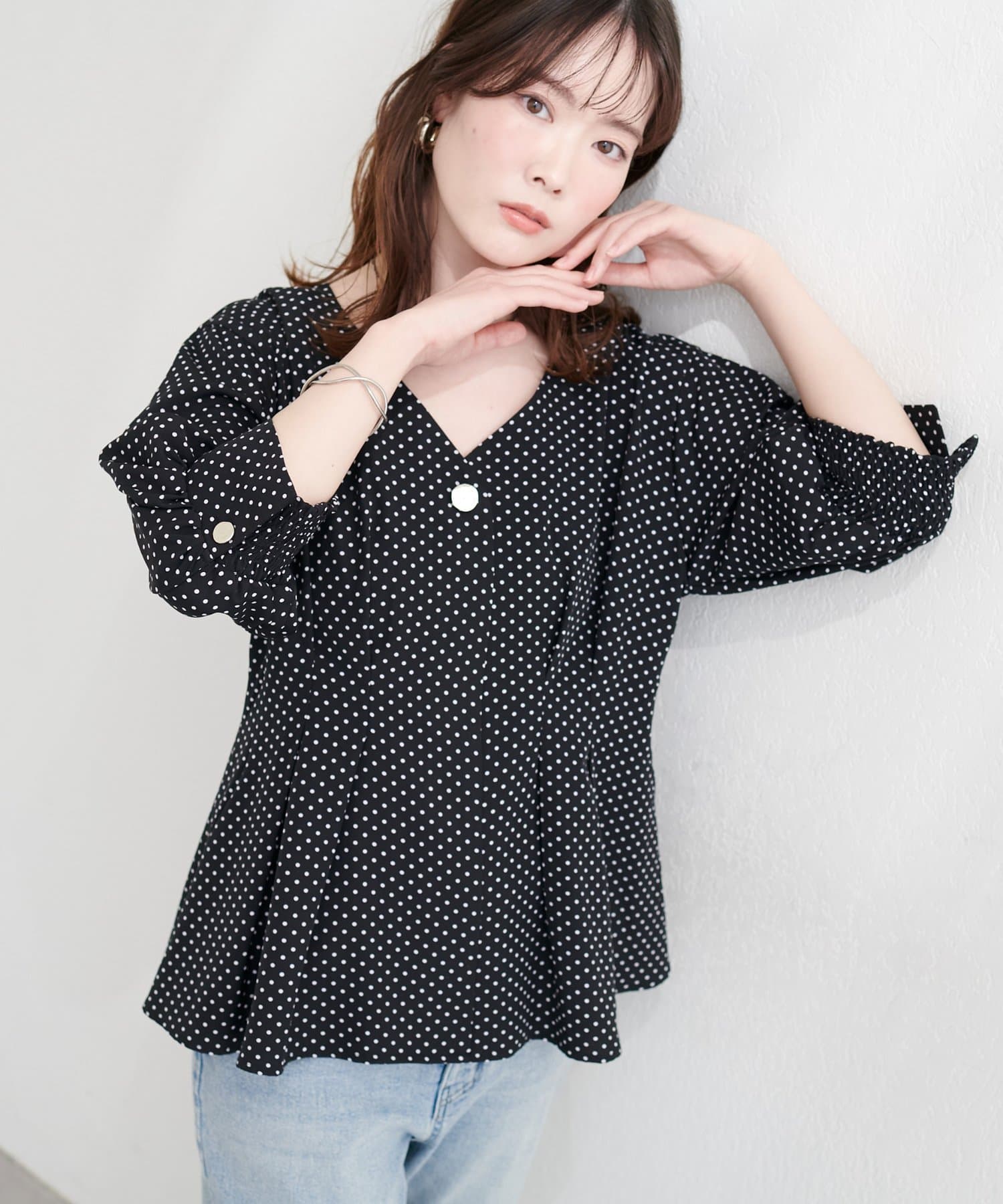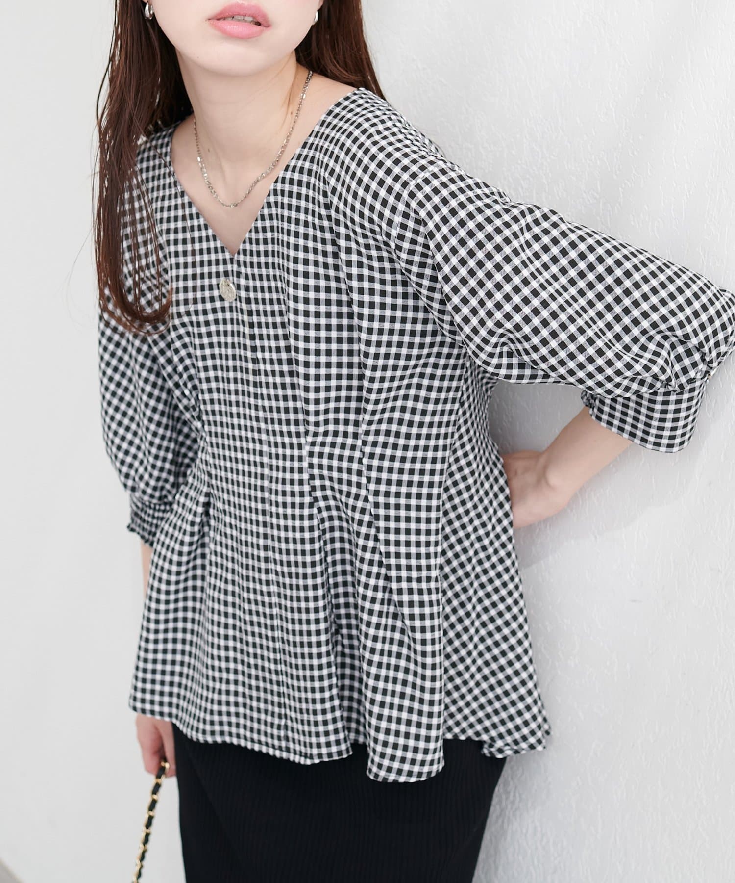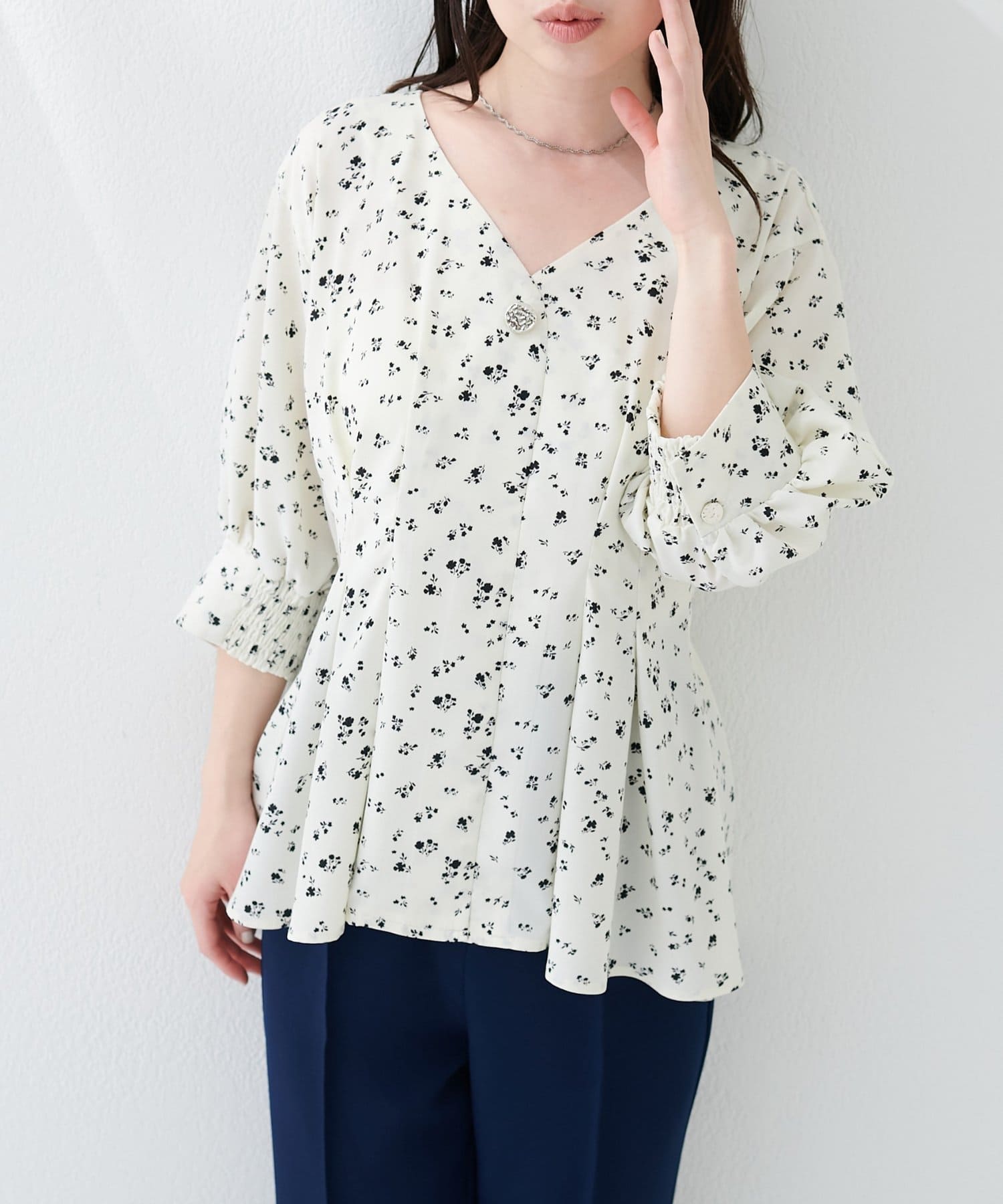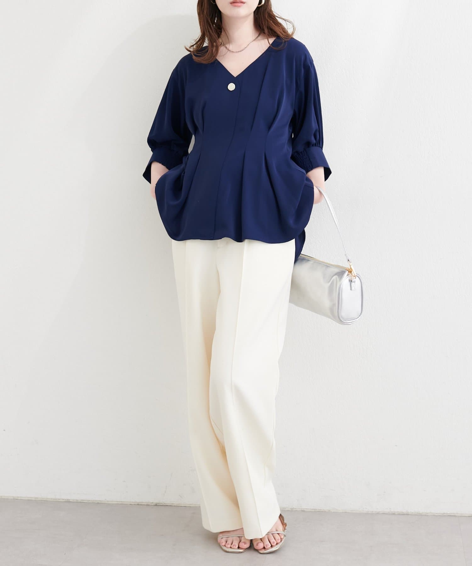 〈osono〉タックデザインぺプラム5分袖ブラウス