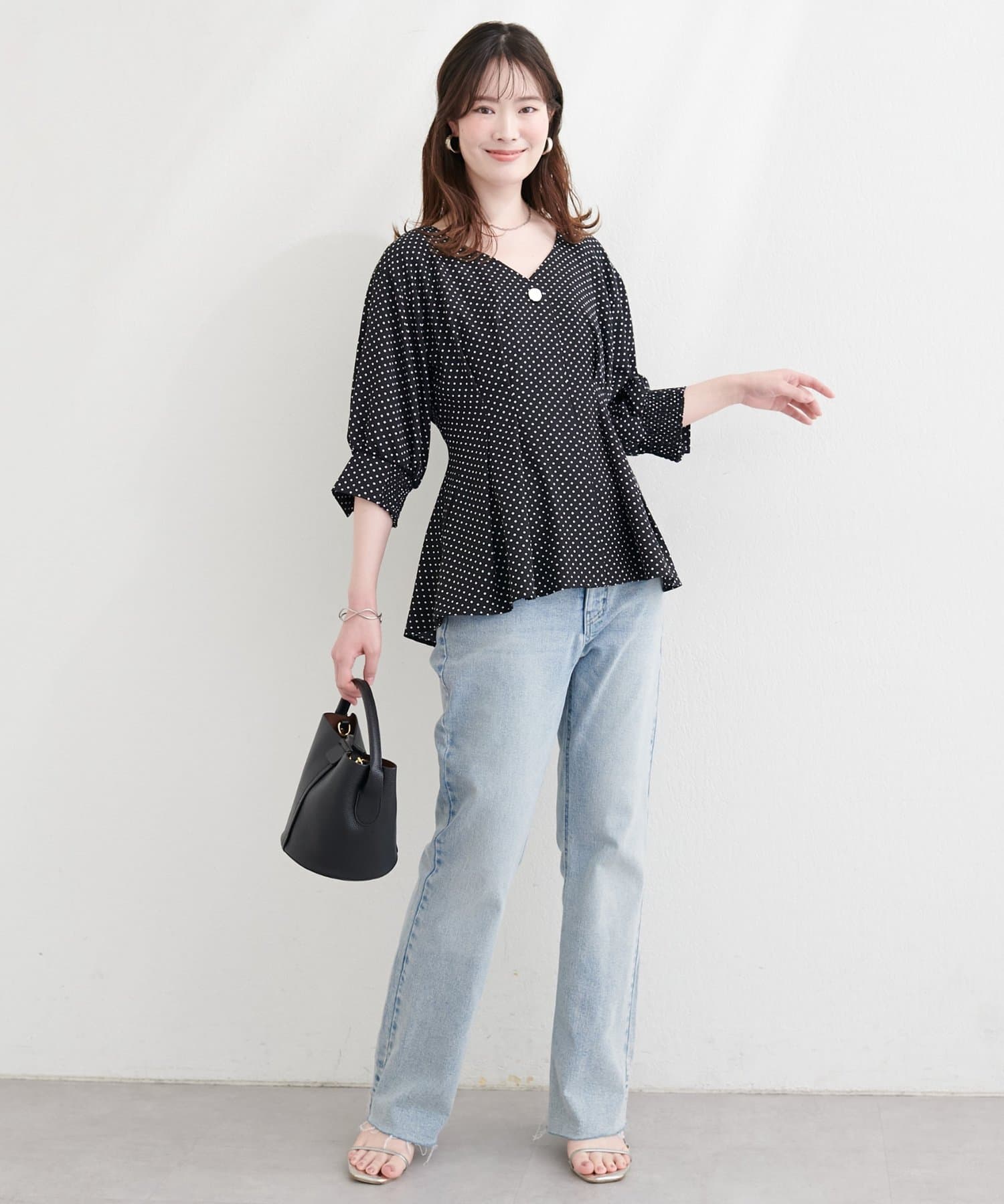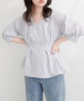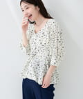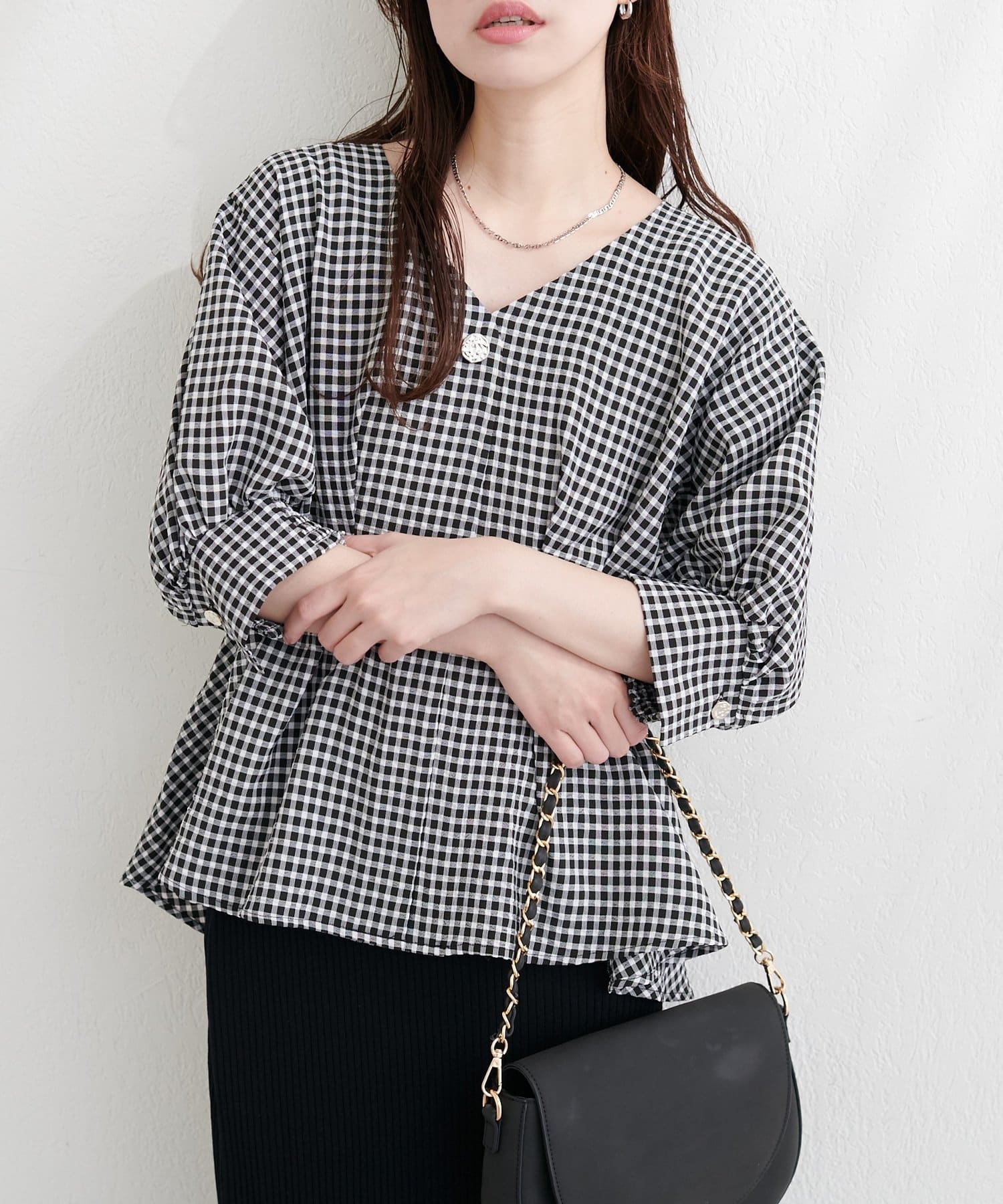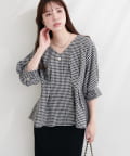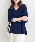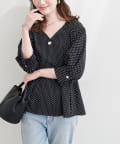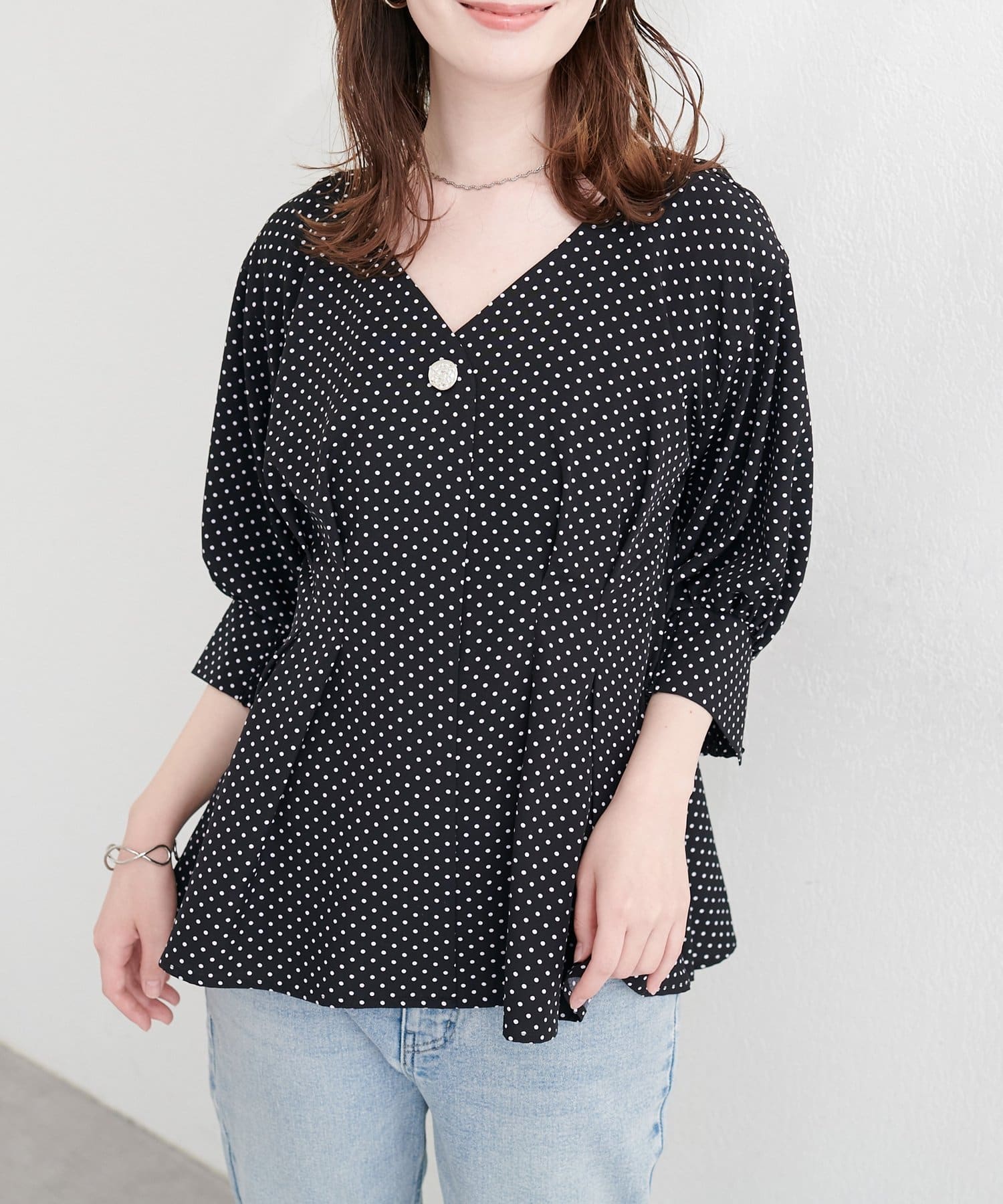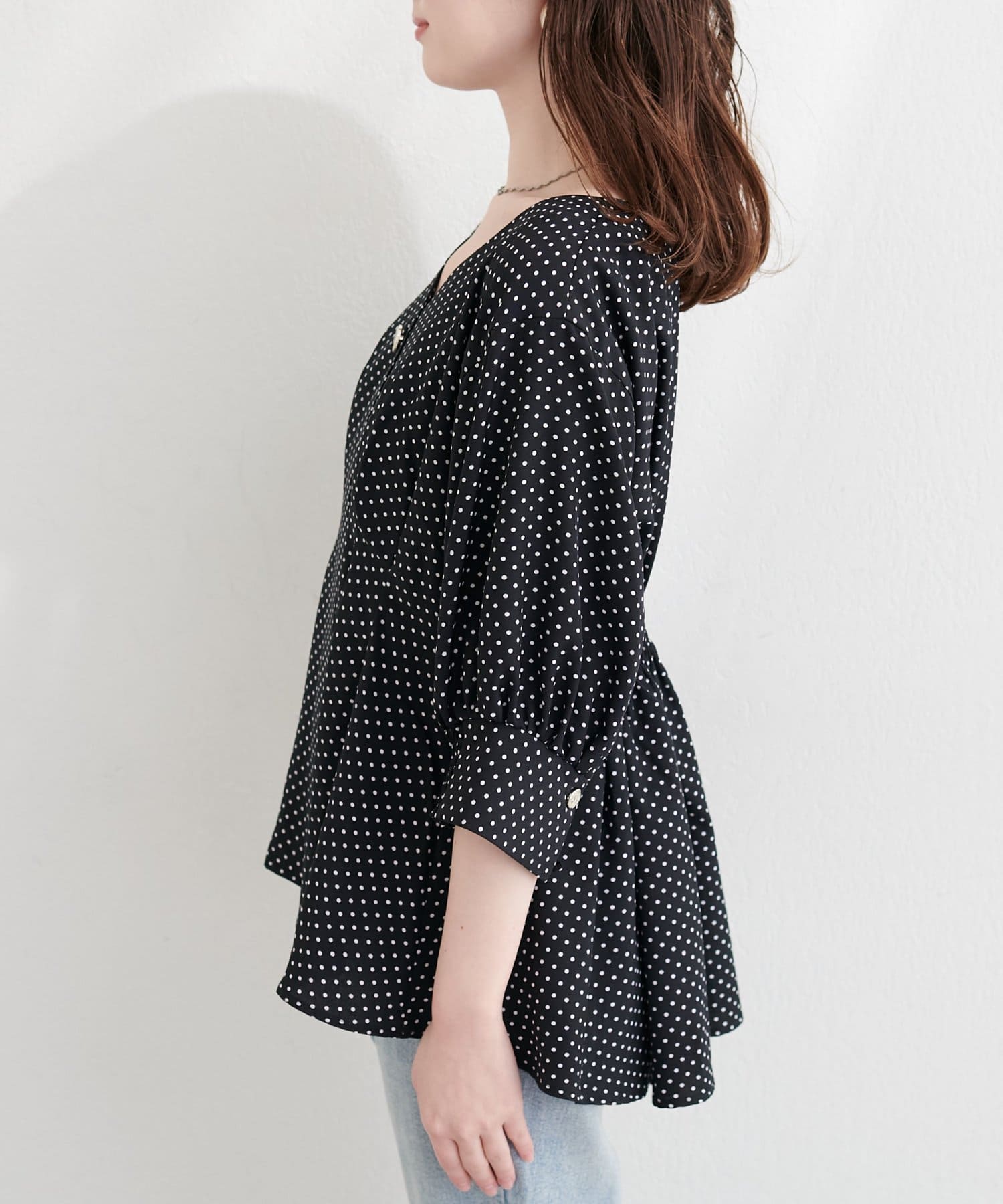 〈osono〉タックデザインぺプラム5分袖ブラウス