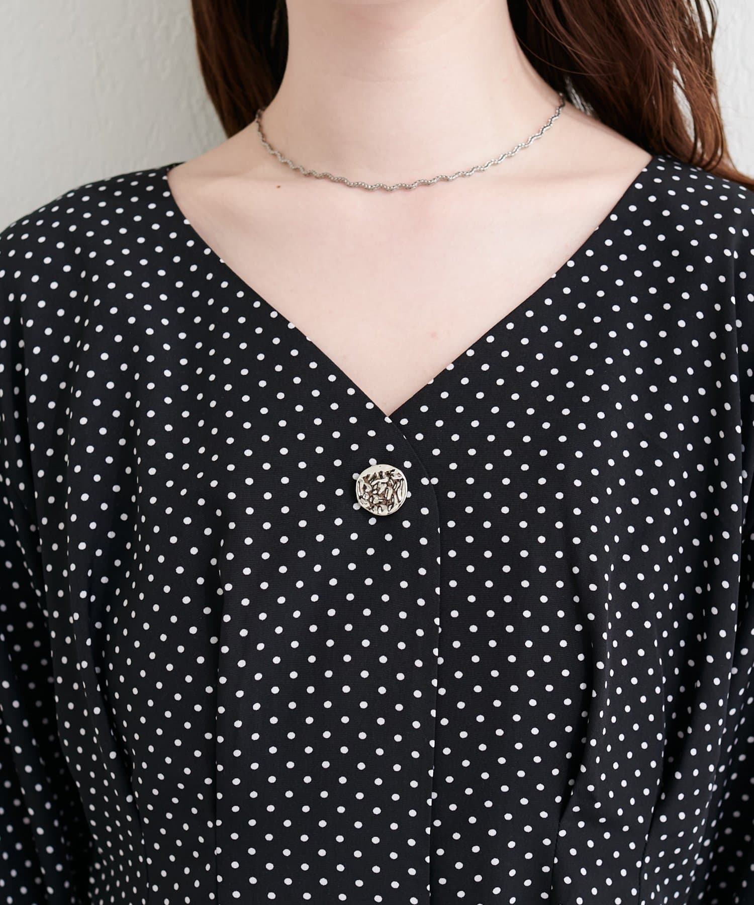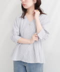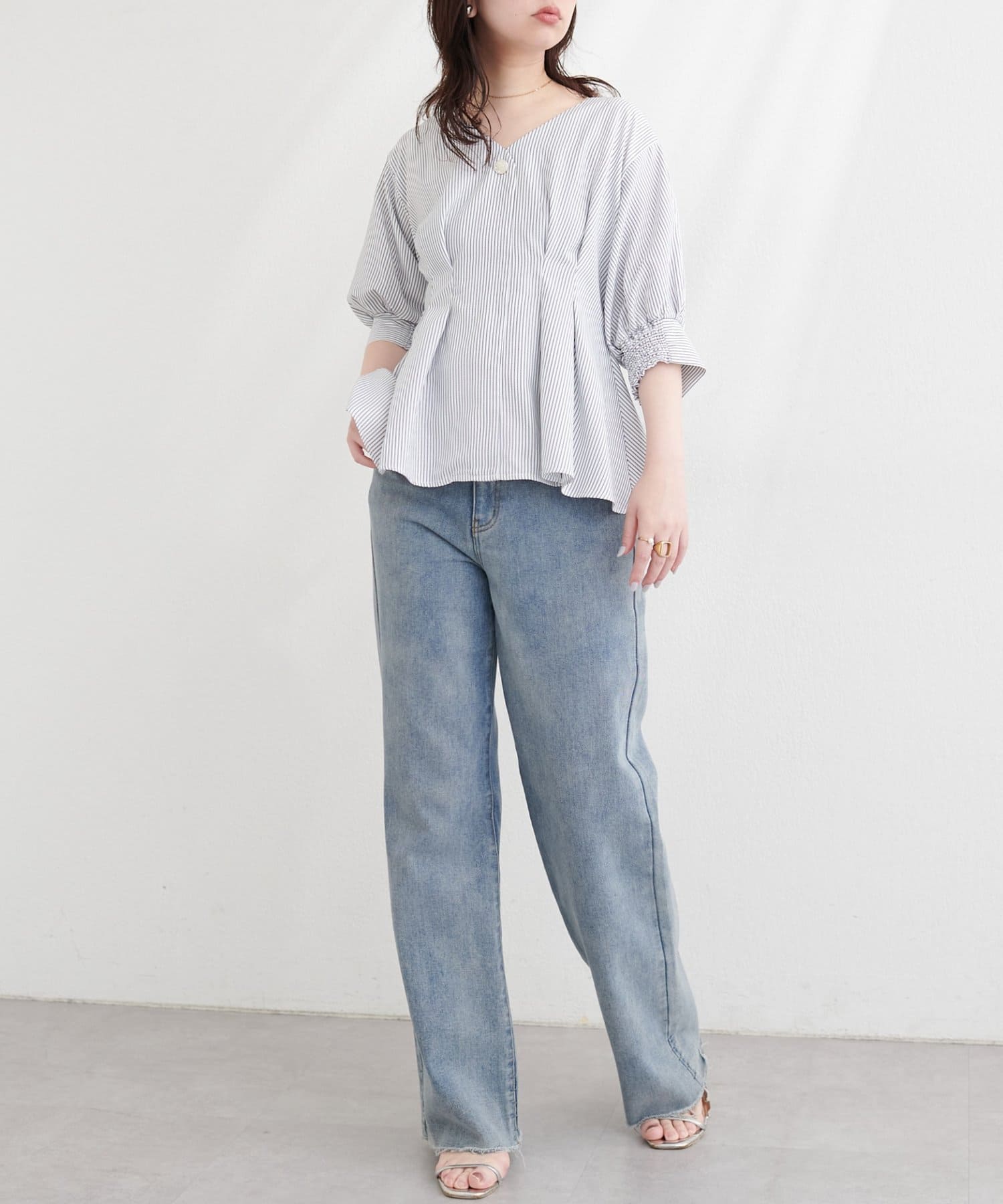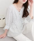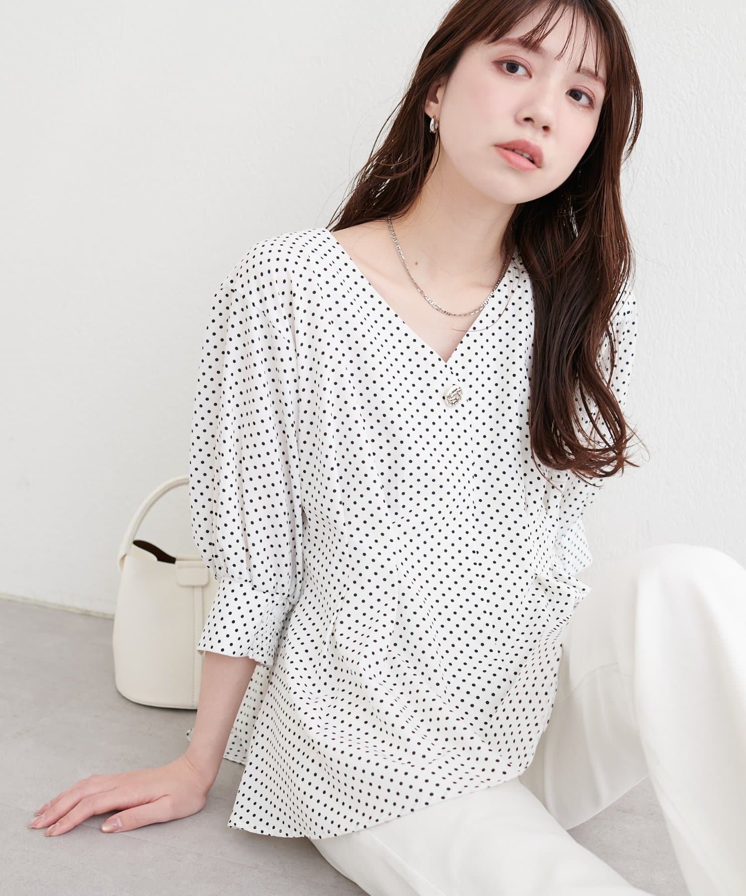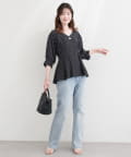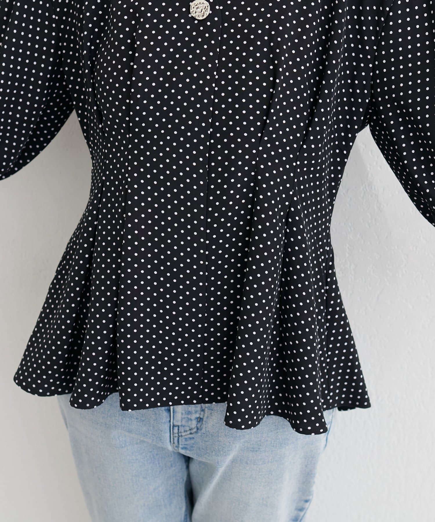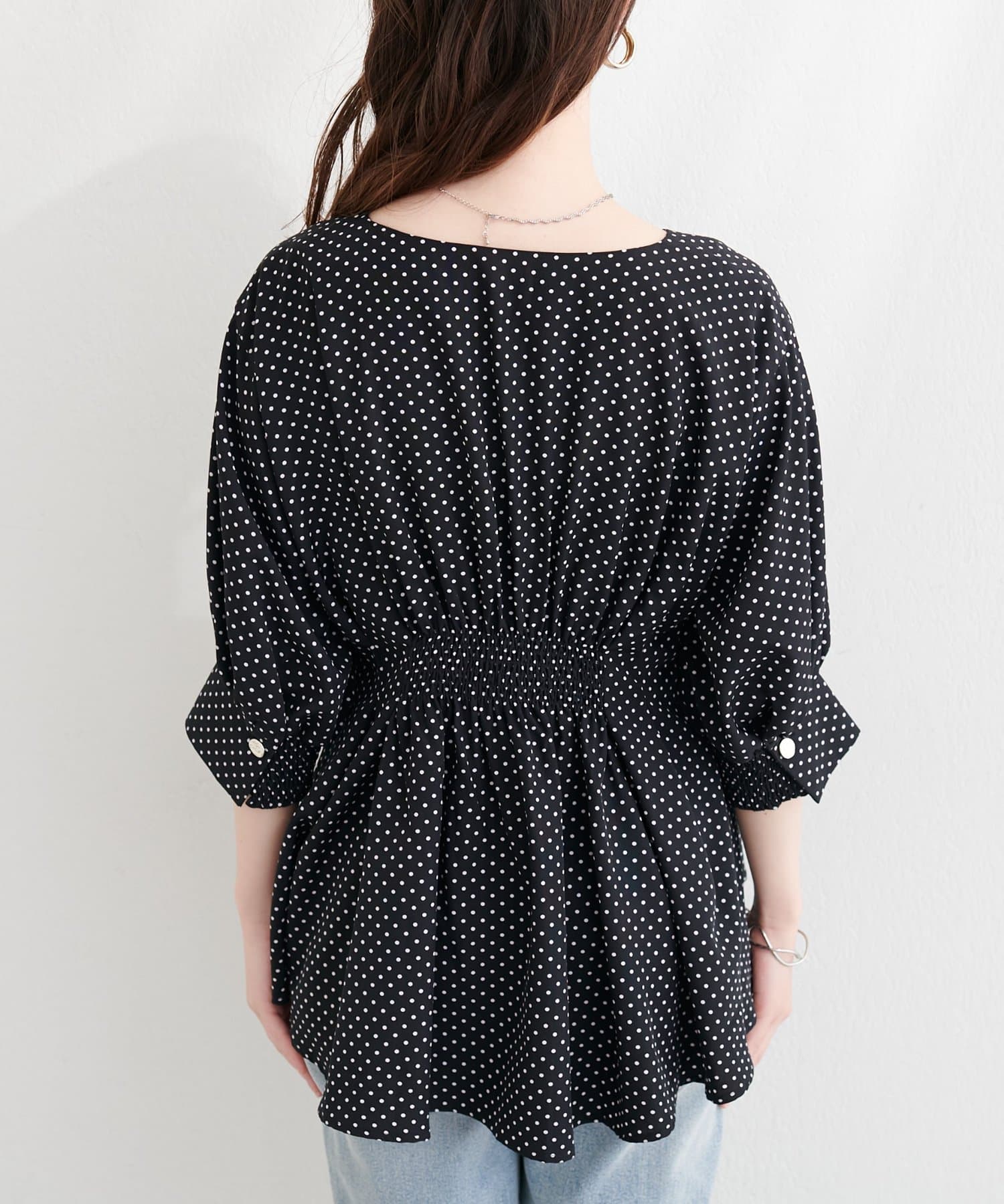 〈osono〉タックデザインぺプラム5分袖ブラウス