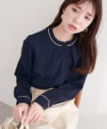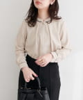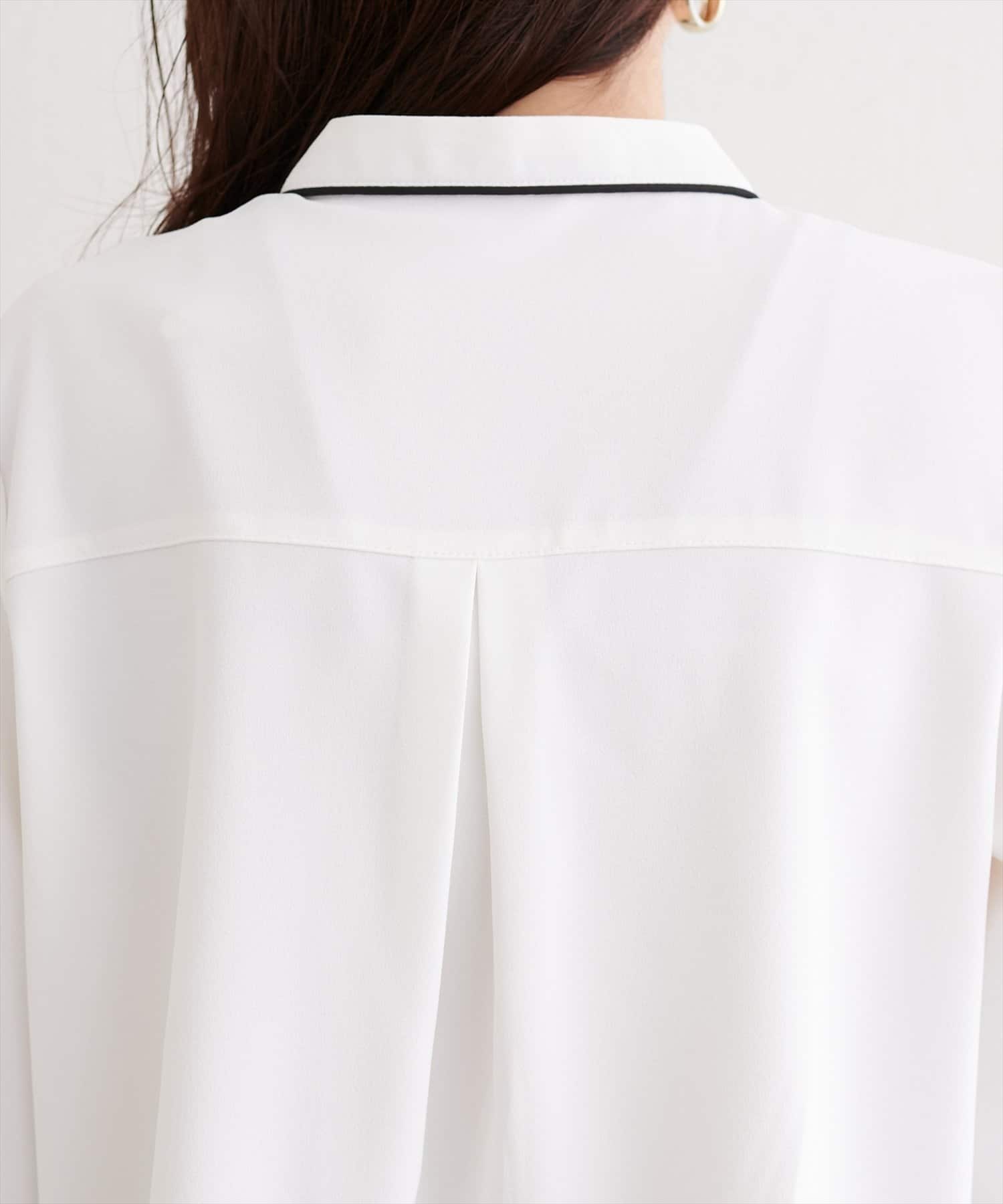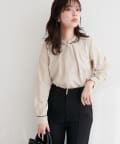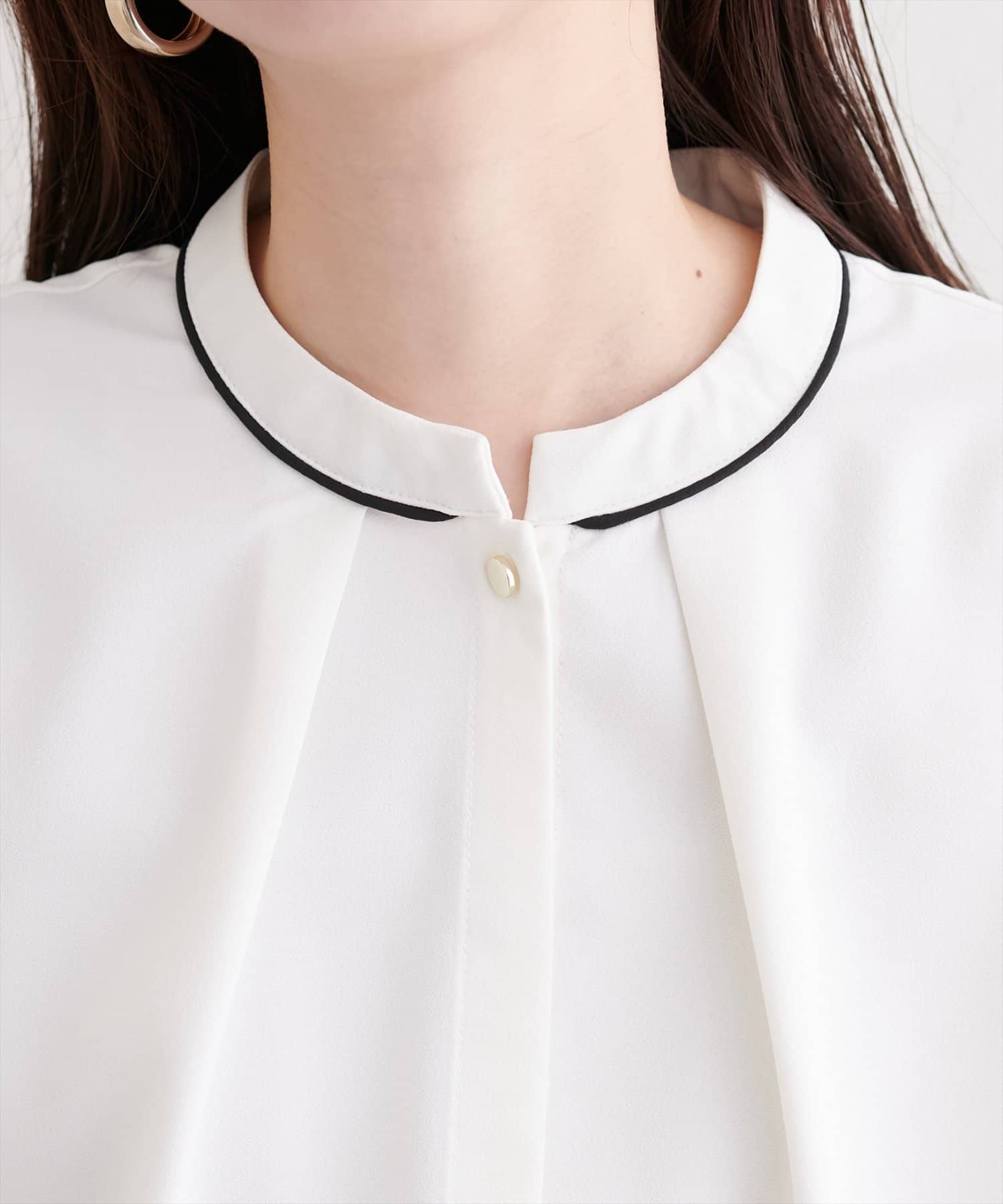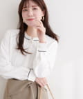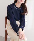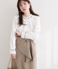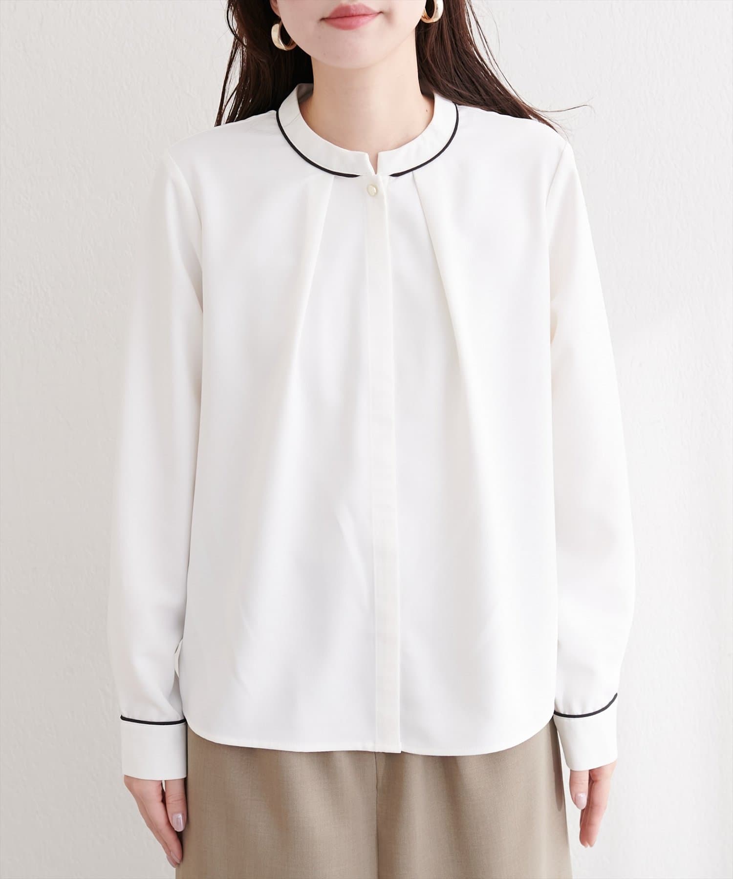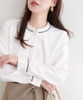 スタンドカラーパイピングブラウス