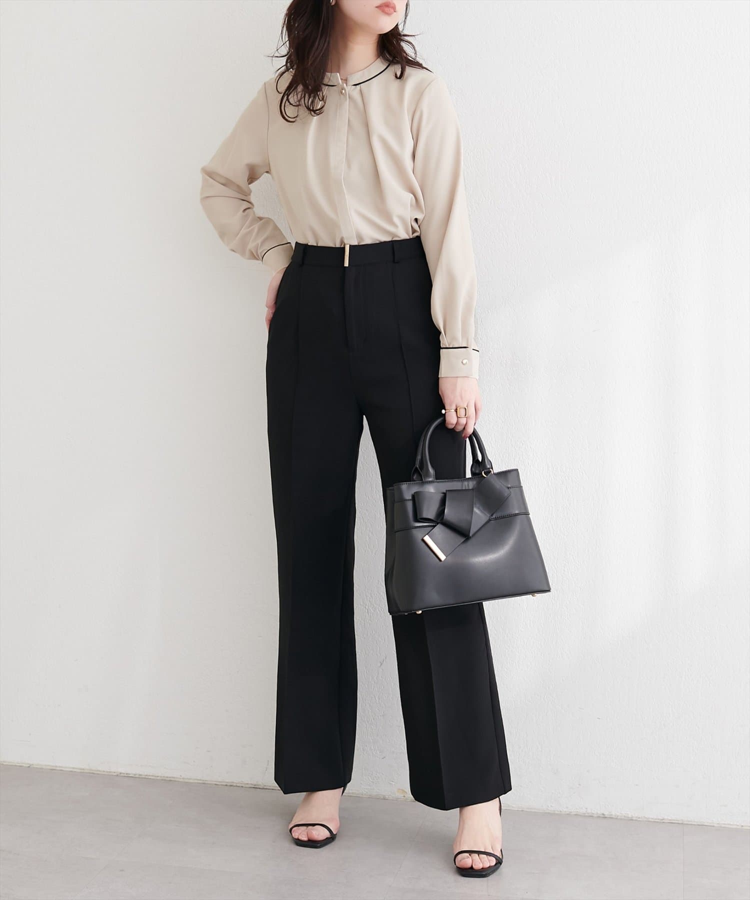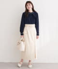 オフィスシーンでは、タイトスカートやテーパードパンツと合わせて、きっちりとした印象を演出。