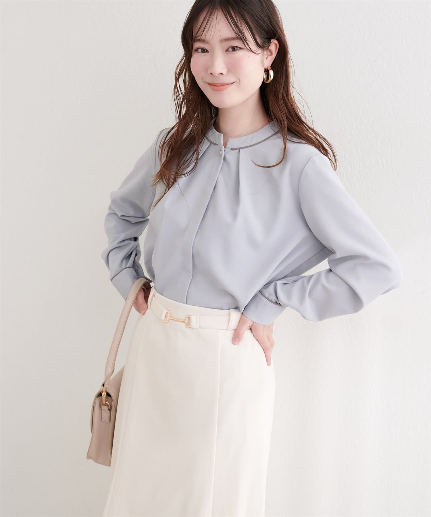 アクセサリーは、シンプルなネックレスやイヤリングを合わせることで、ブラウスの美しさをより引き立てることができます。