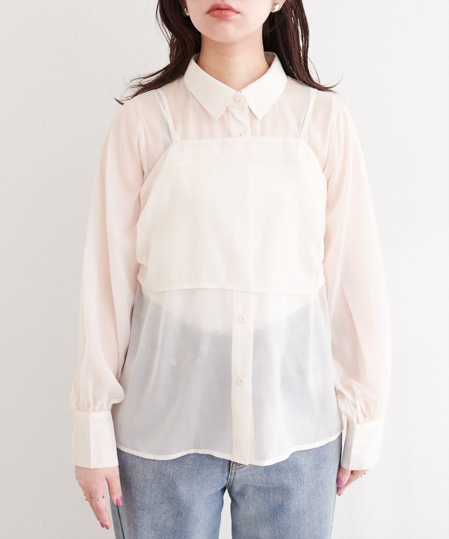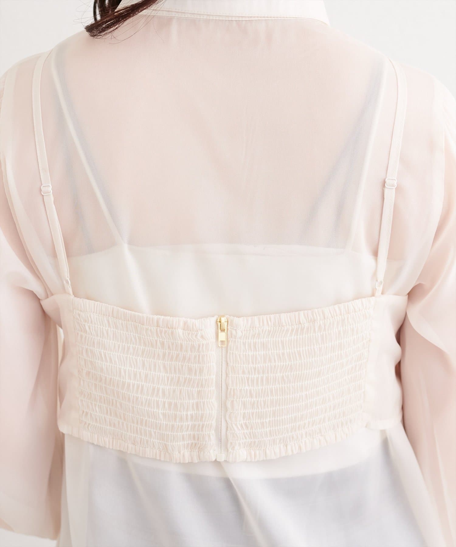 こちらの商品は透け感が強いため、キャミソールなどのインナーをご着用ください。