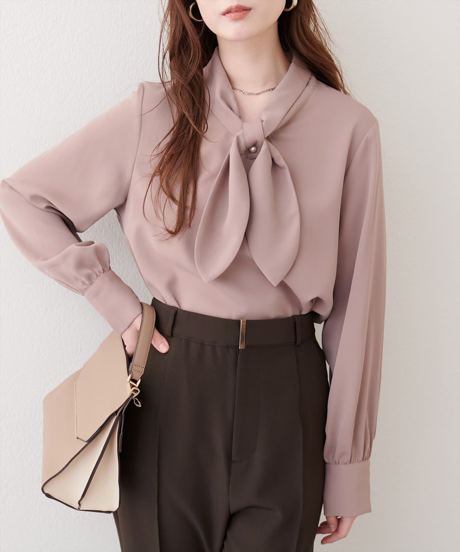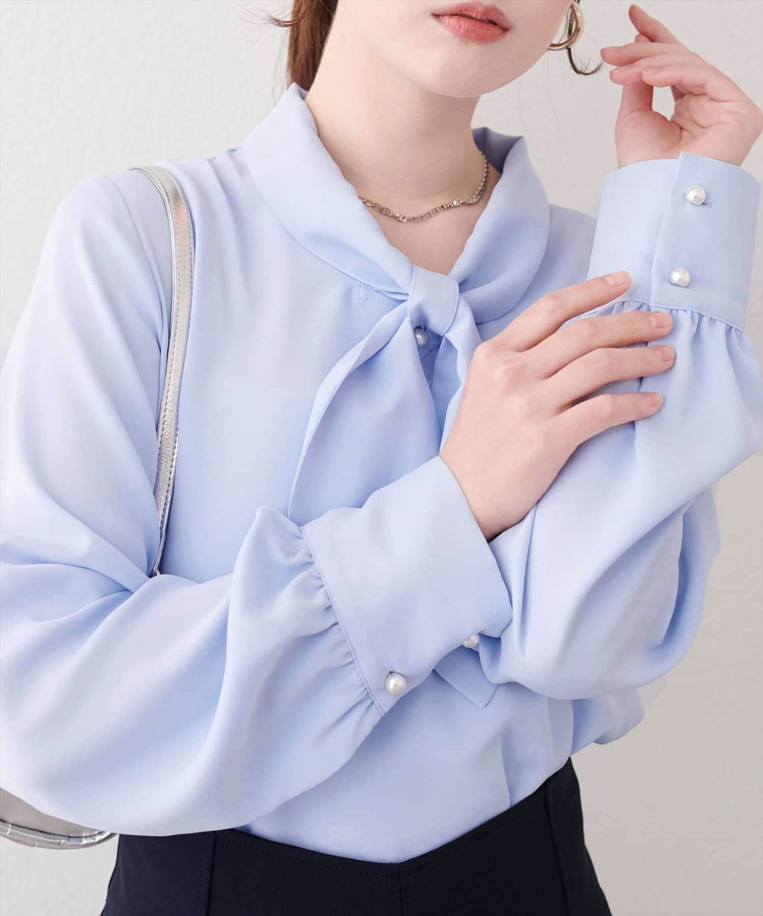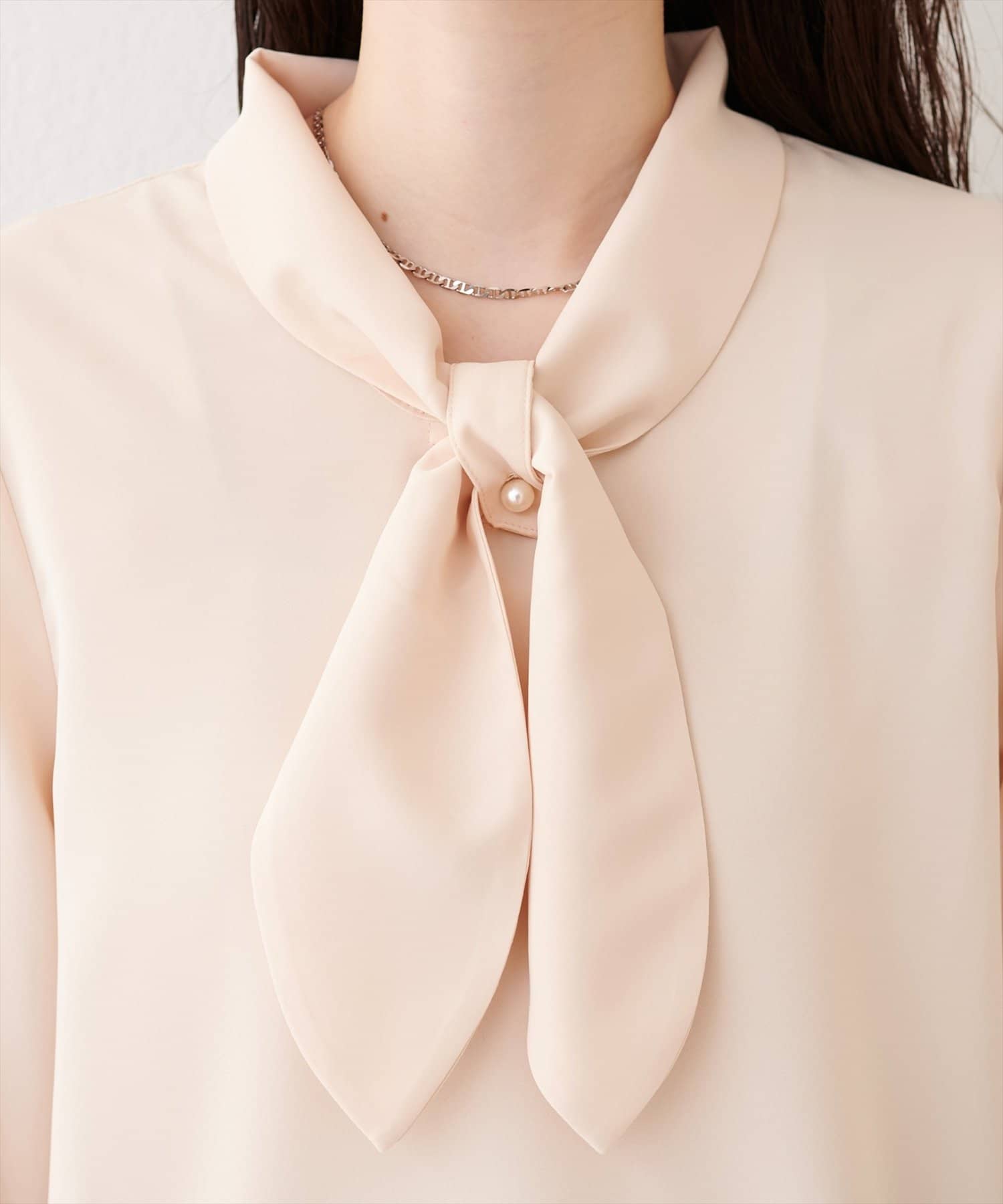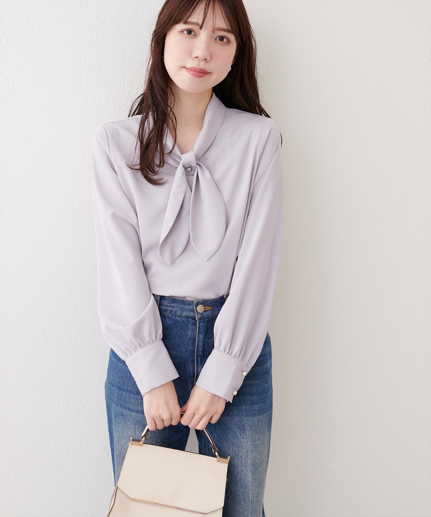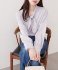 • natural couture(ナチュラルクチュール) リボンタイパール釦ブラウス