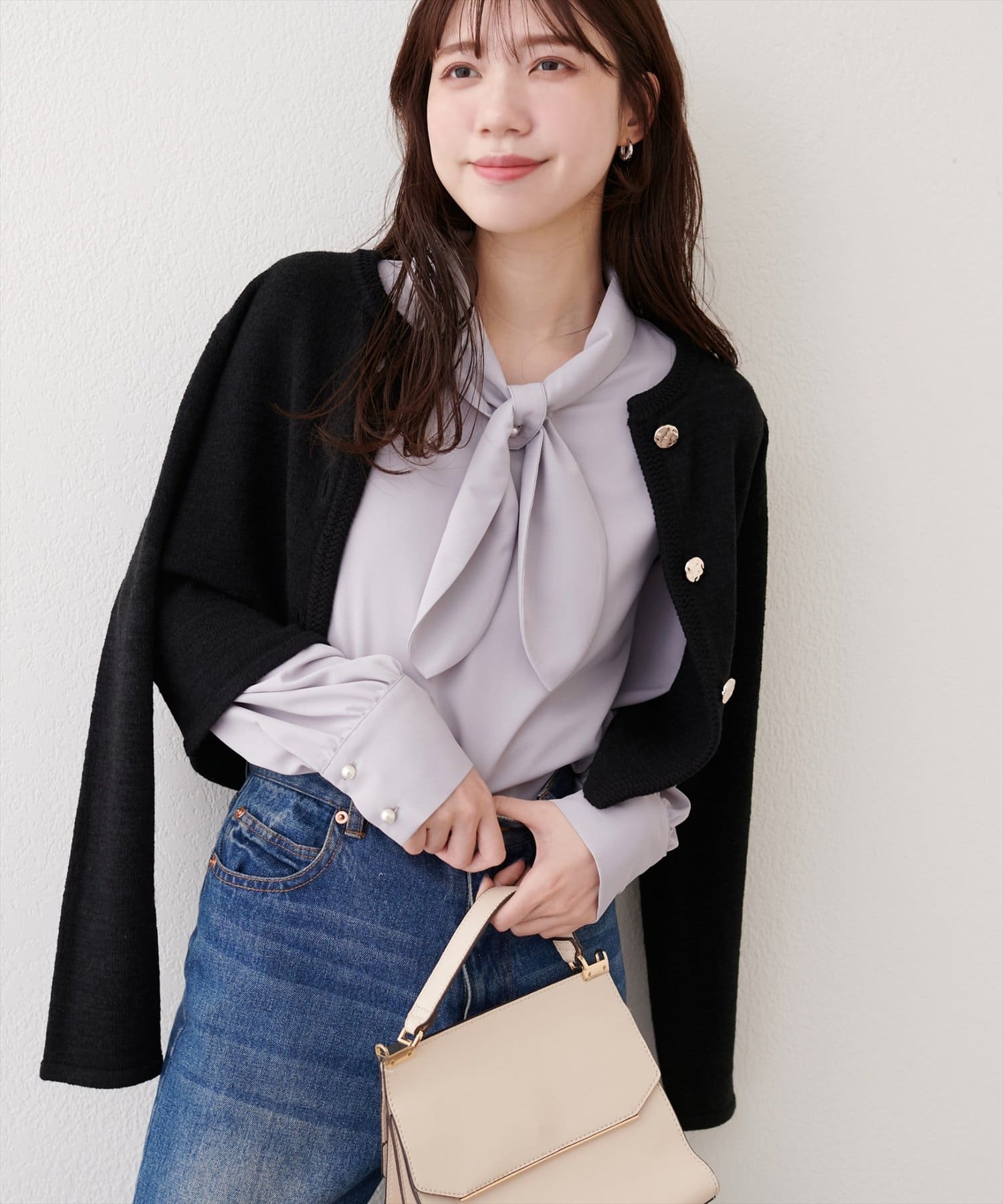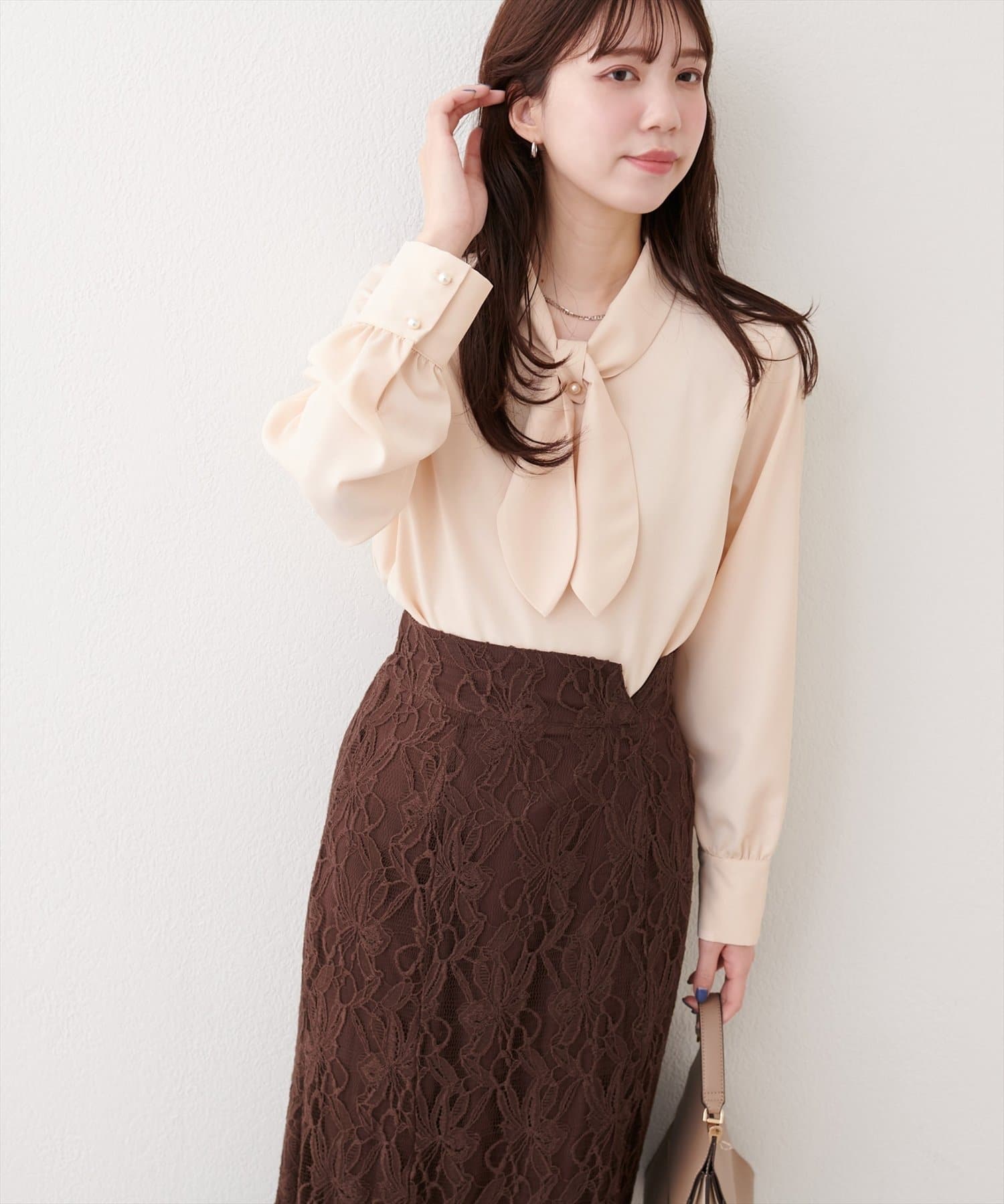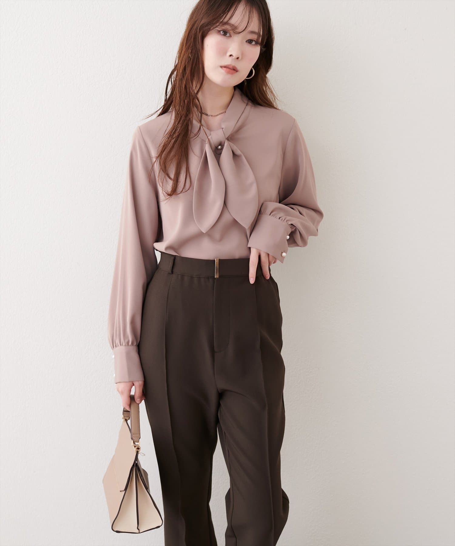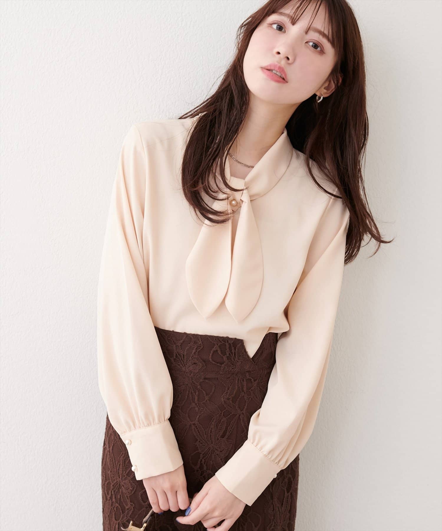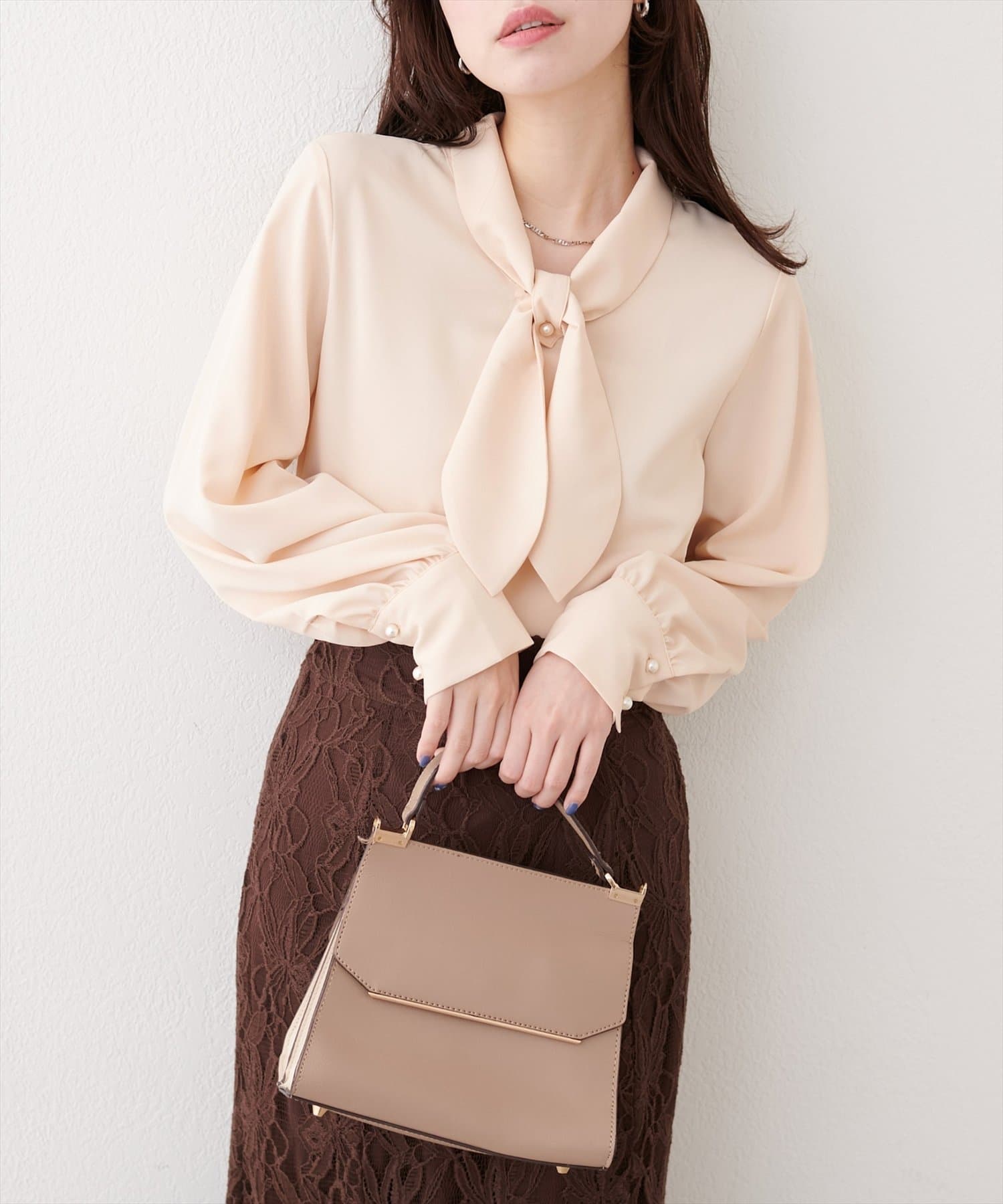 • natural couture(ナチュラルクチュール) リボンタイパール釦ブラウス