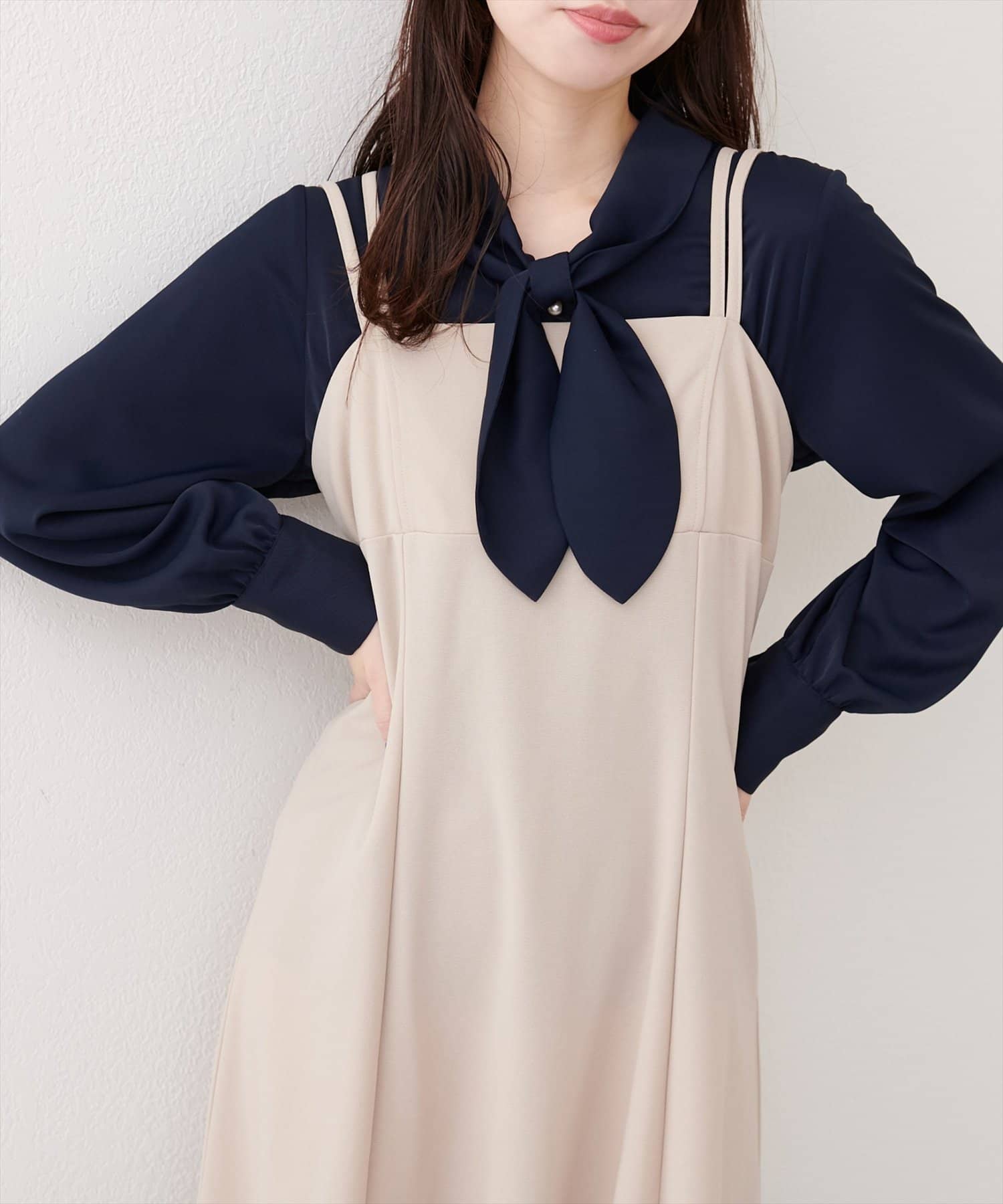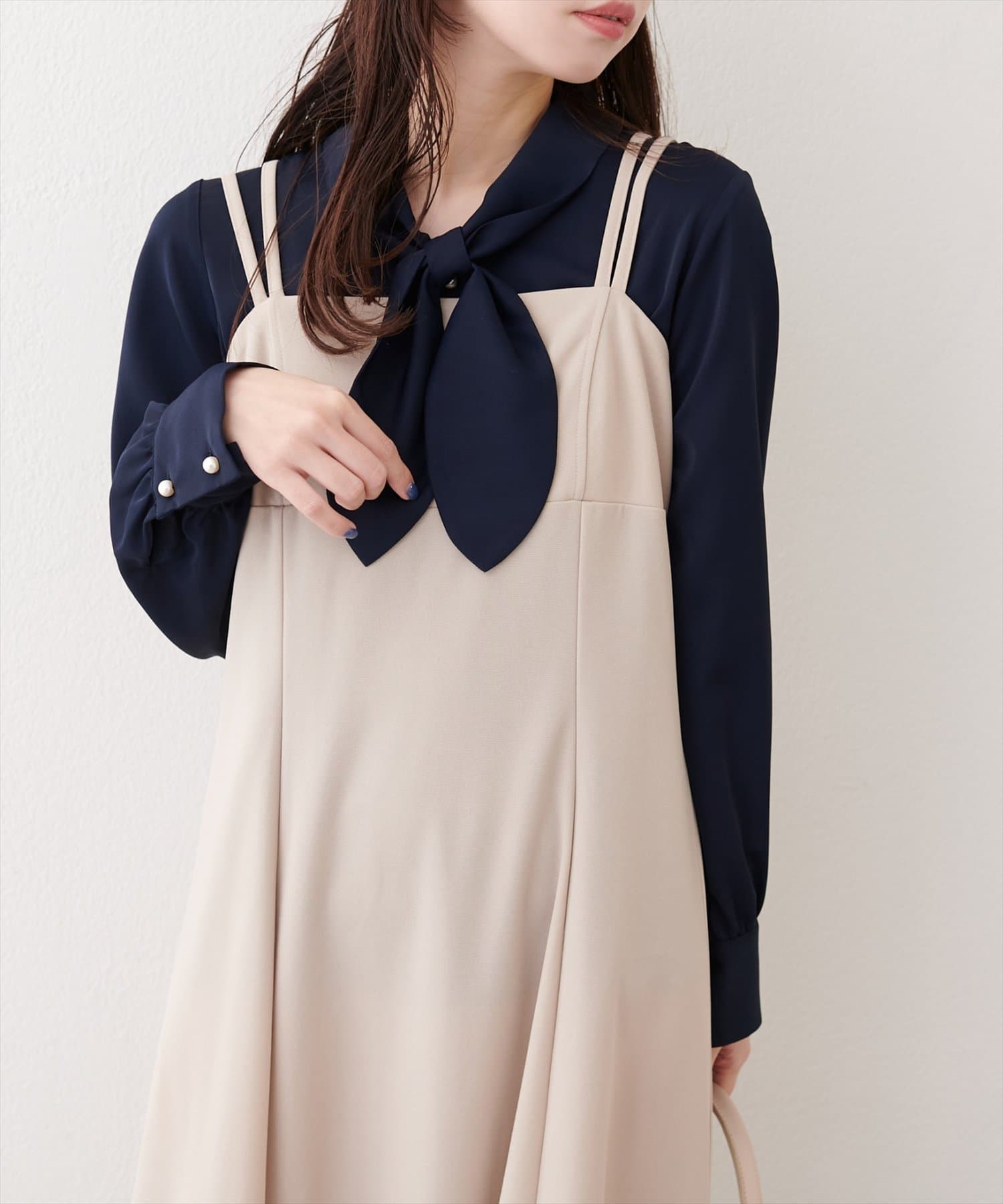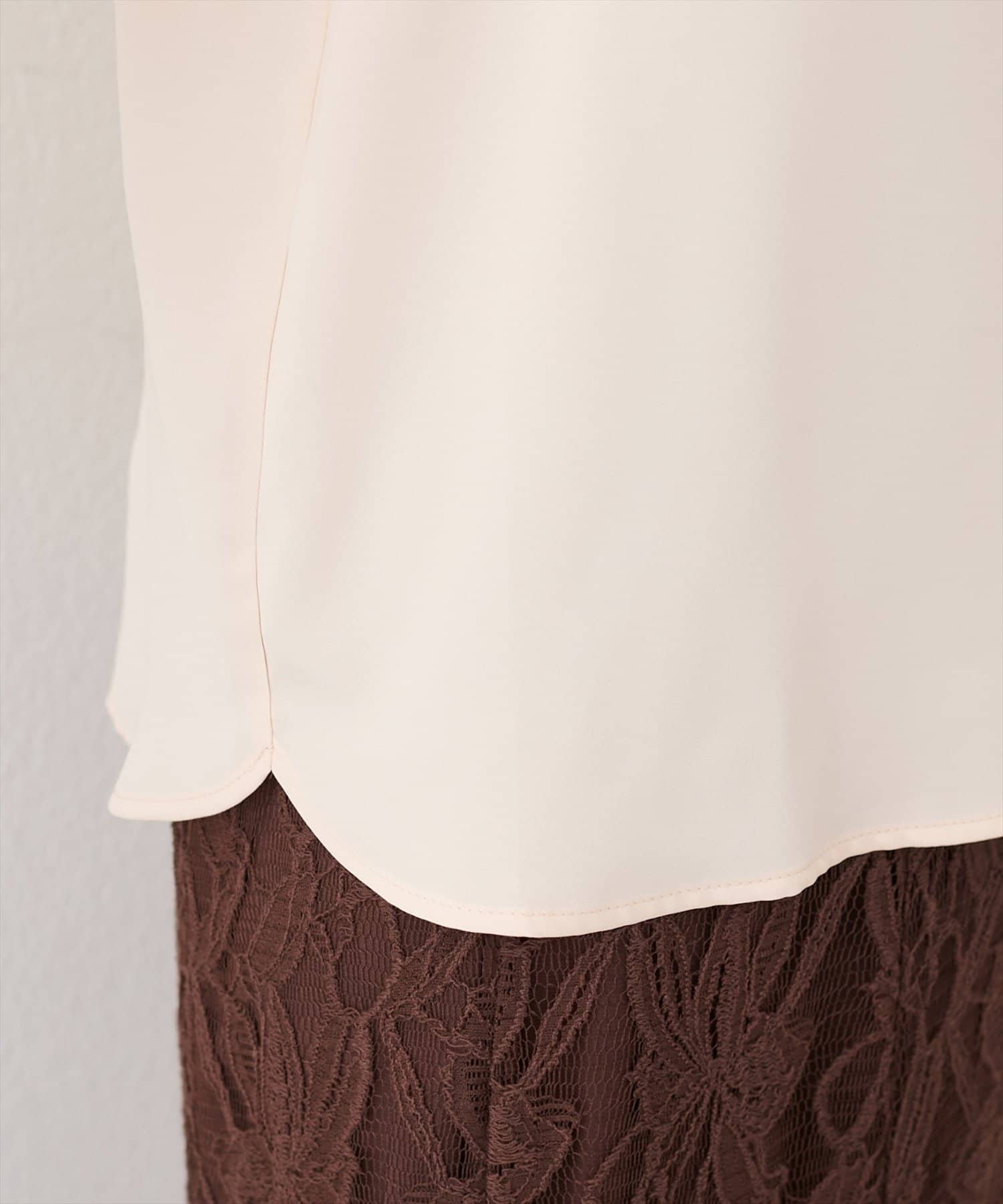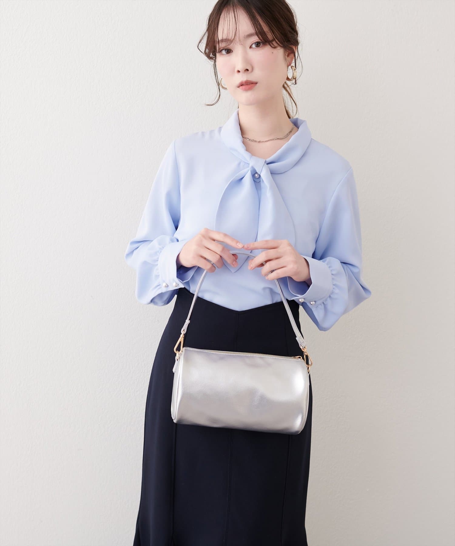 • natural couture(ナチュラルクチュール) リボンタイパール釦ブラウス