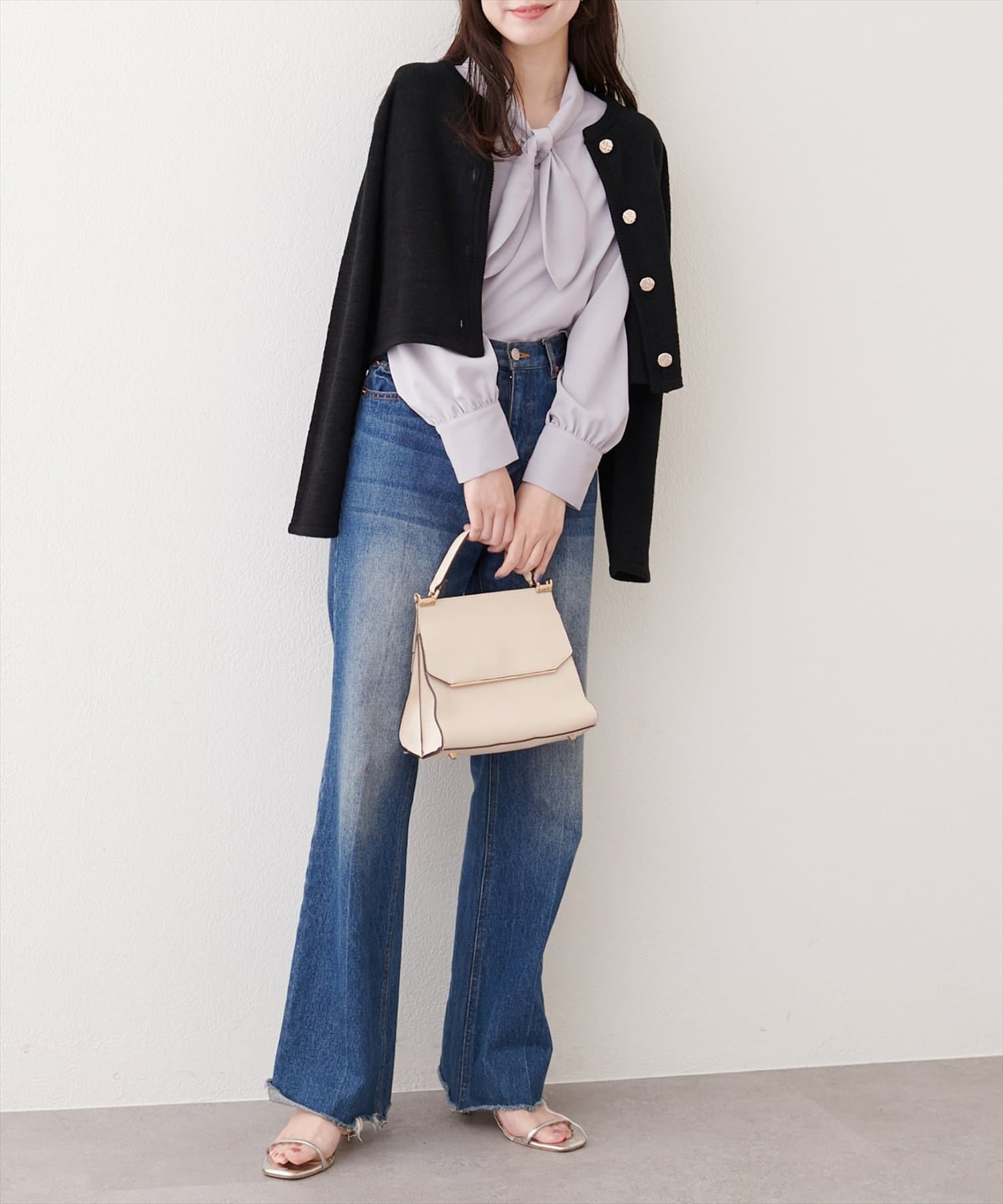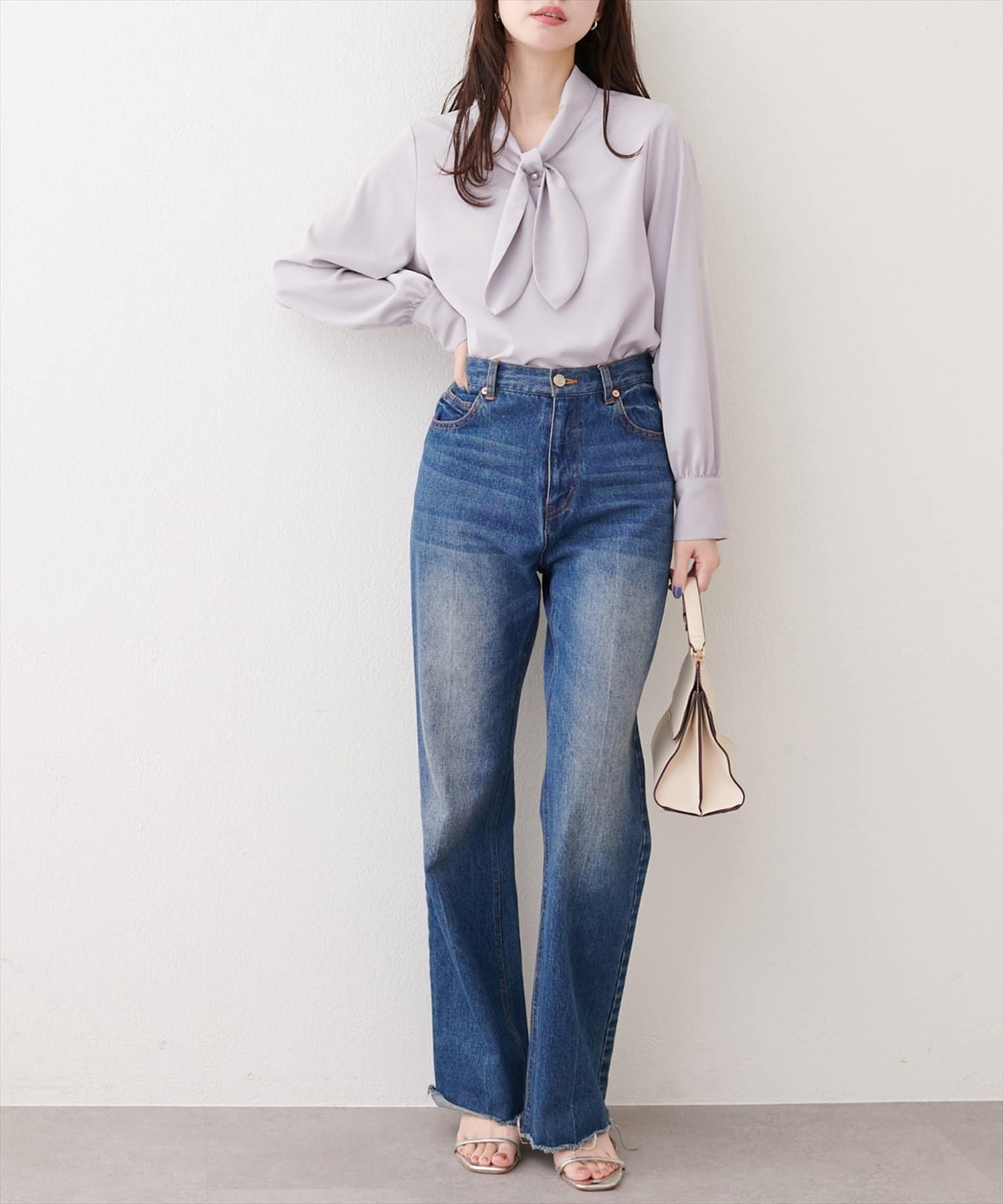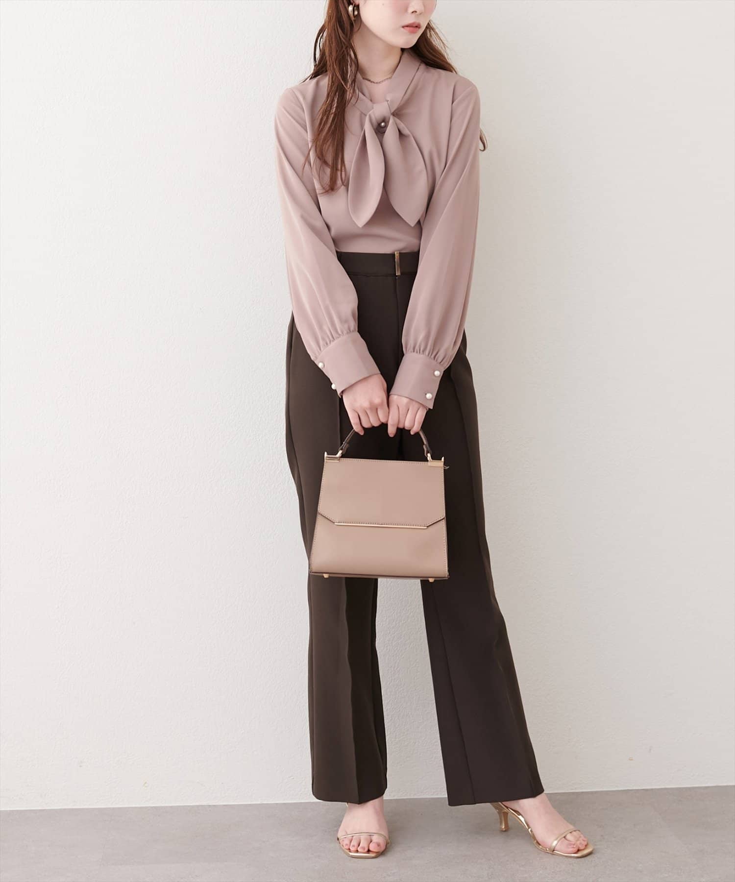 シンプルなボトムスと合わせれば、ブラウスのデザインが際立ち、洗練された着こなしが完成します。