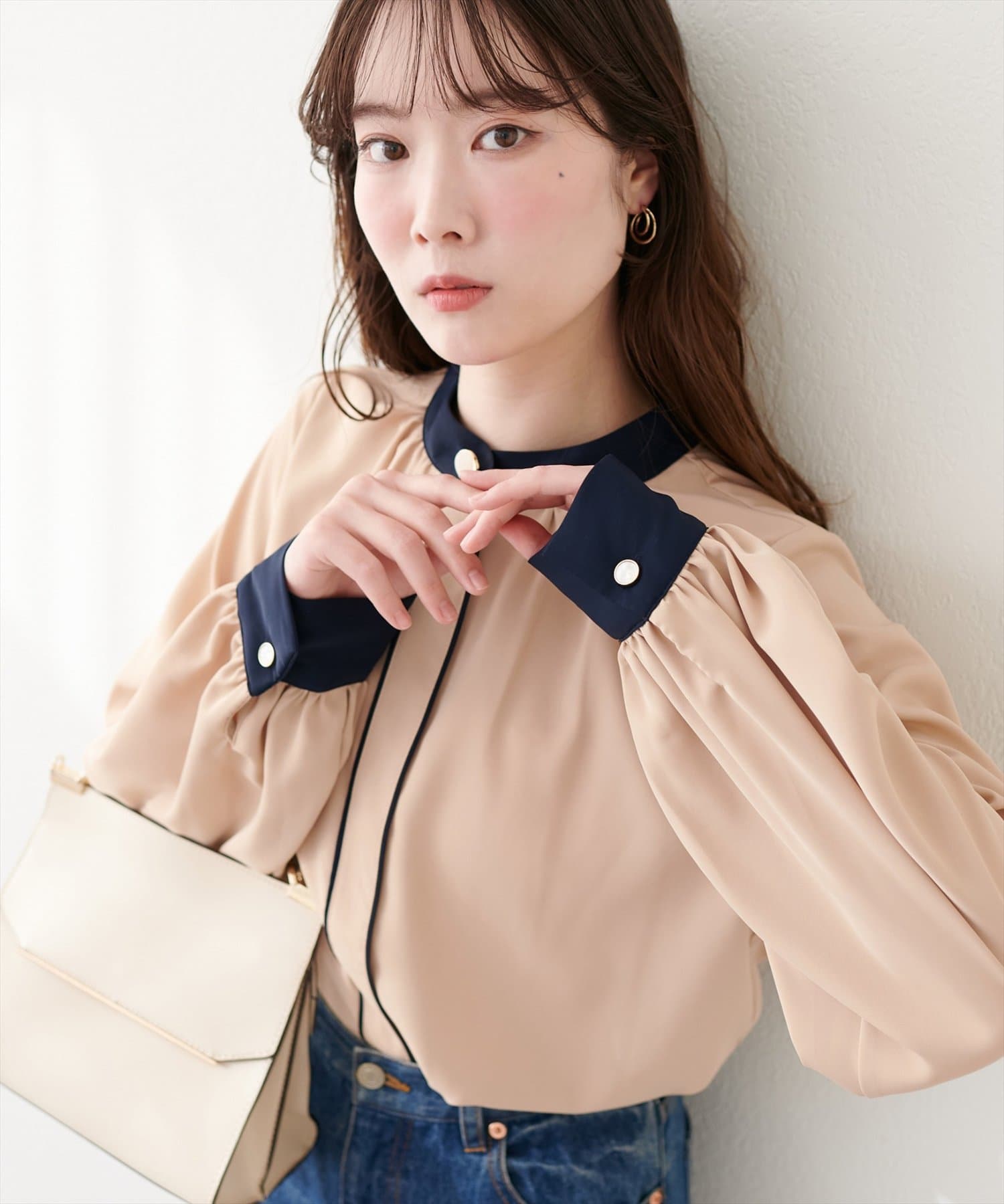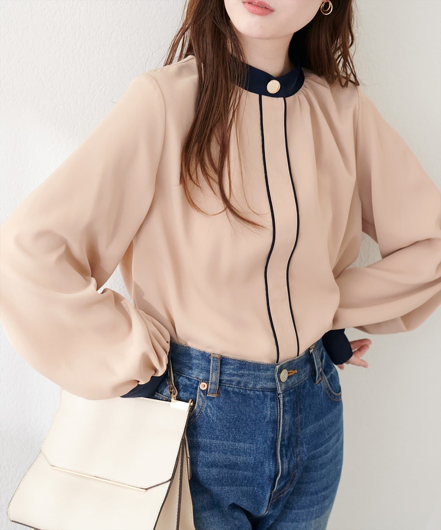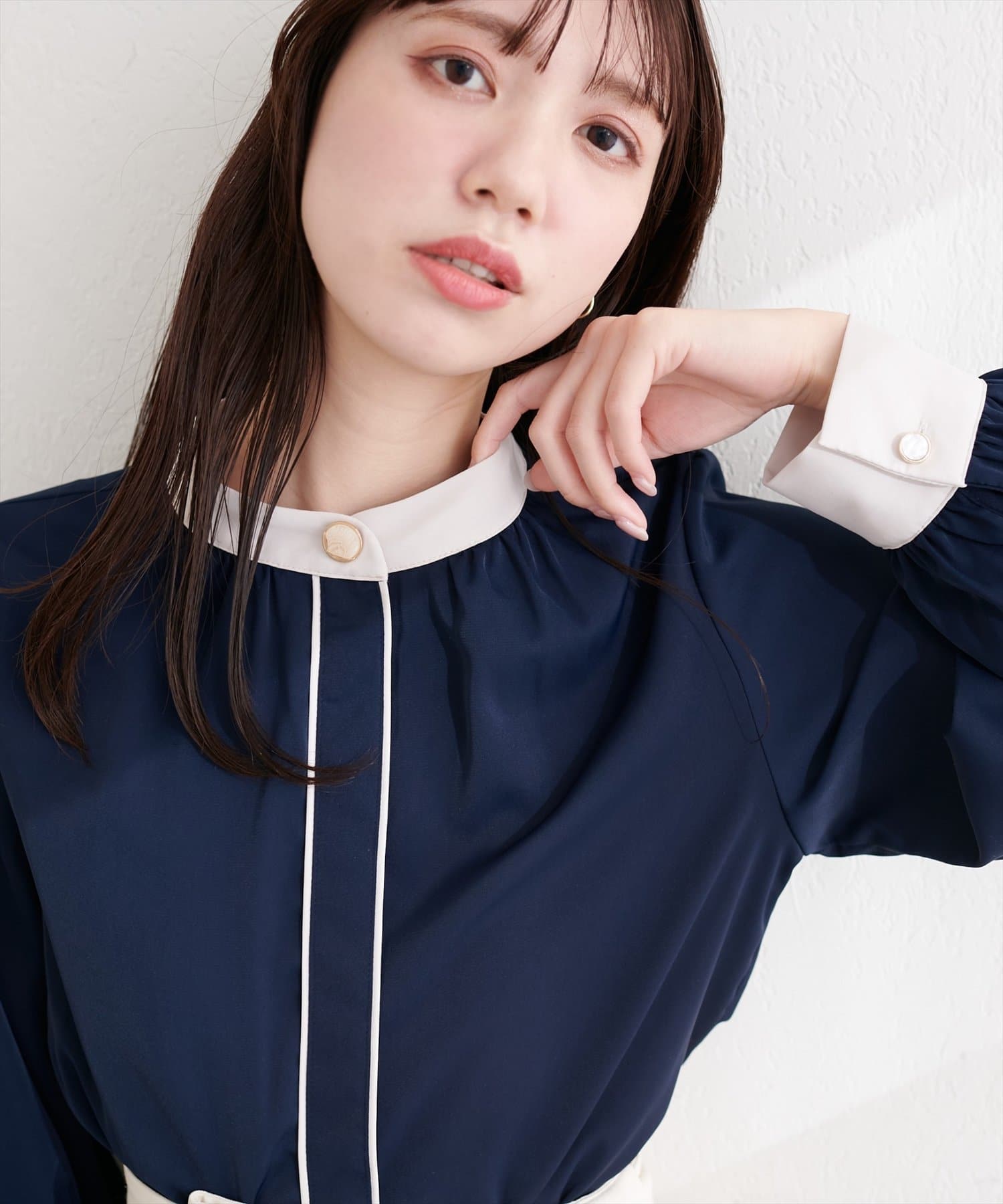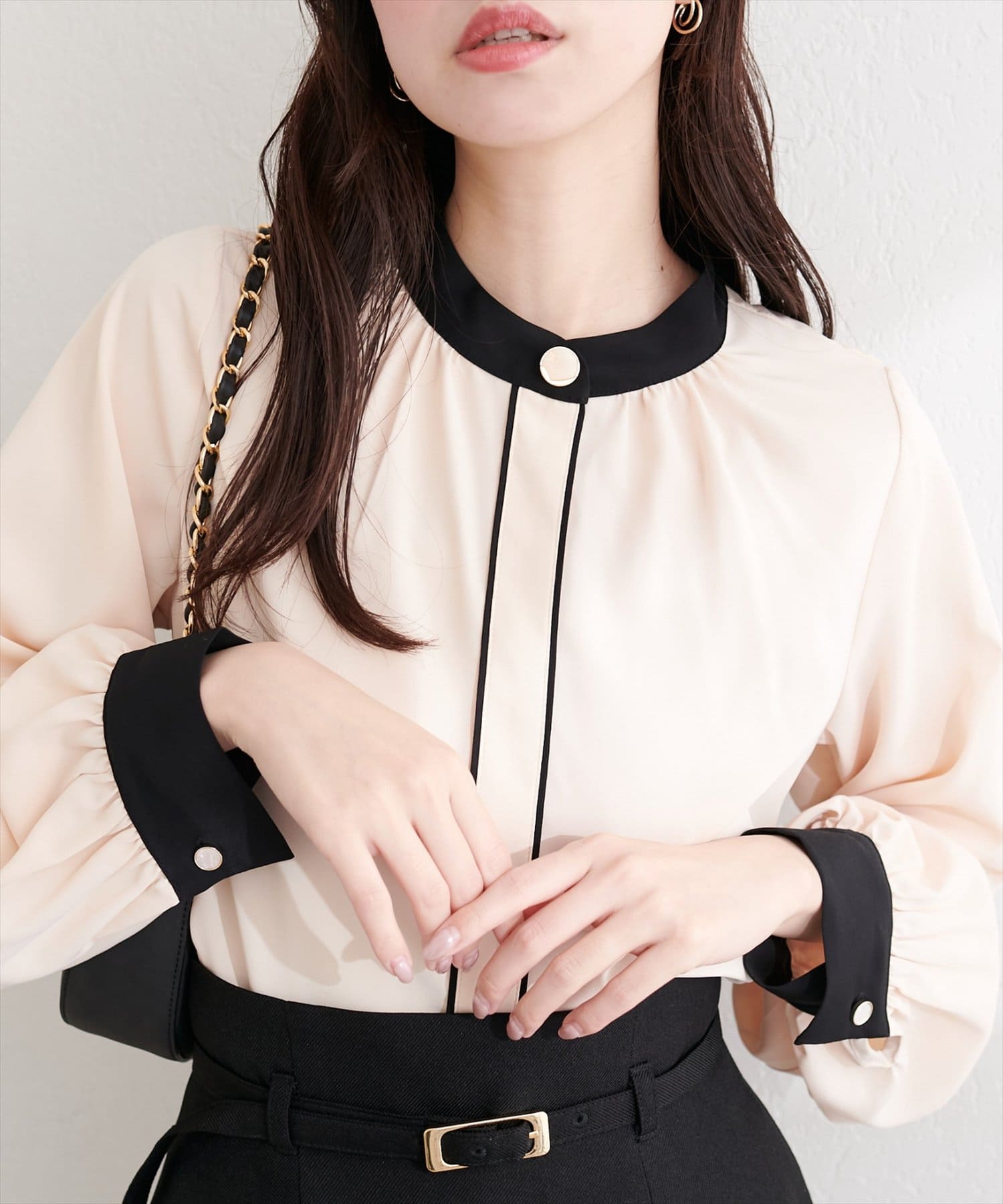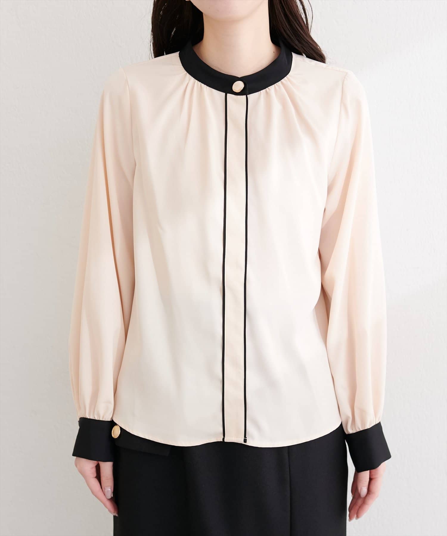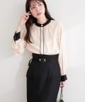 ニュアンスデザイン釦配色ブラウス