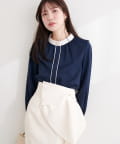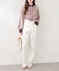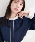 首元と袖口にあしらわれた配色デザインが、コーディネートに奥行きをもたらします。