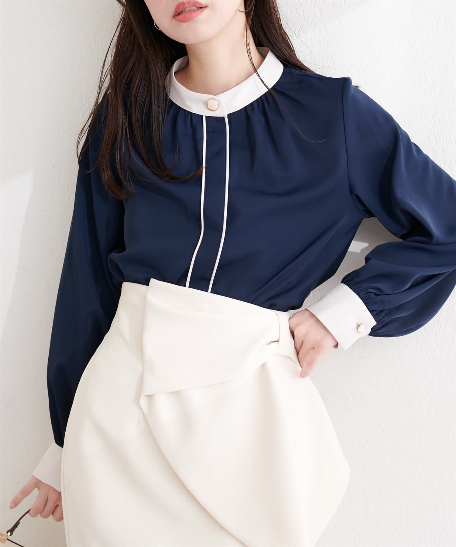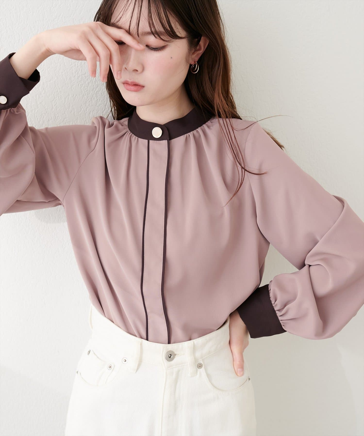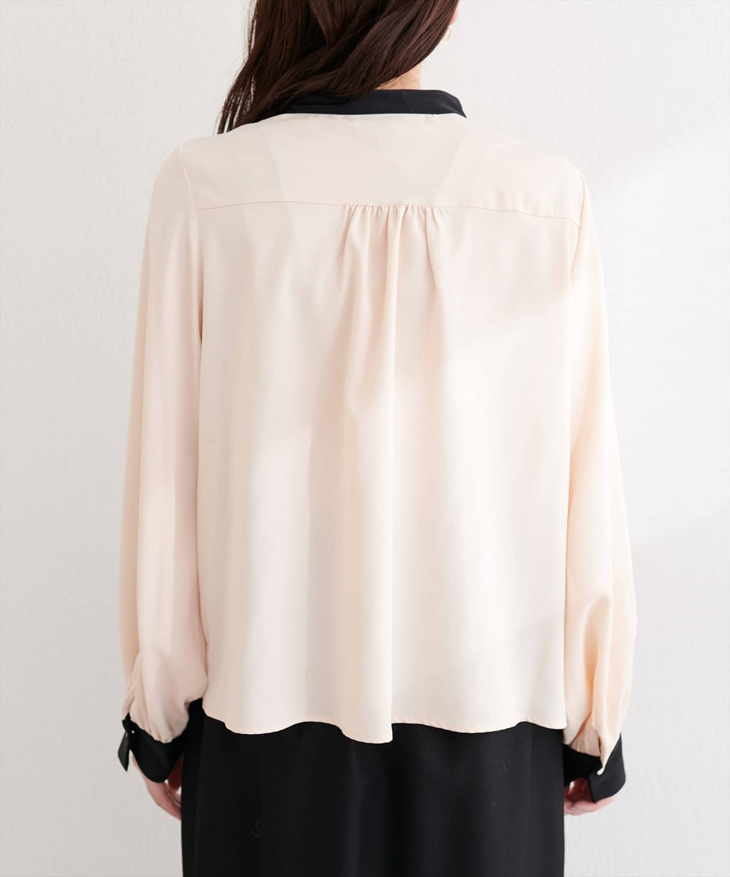 普段使いはもちろん、オフィスシーンにも最適なブラウスです。