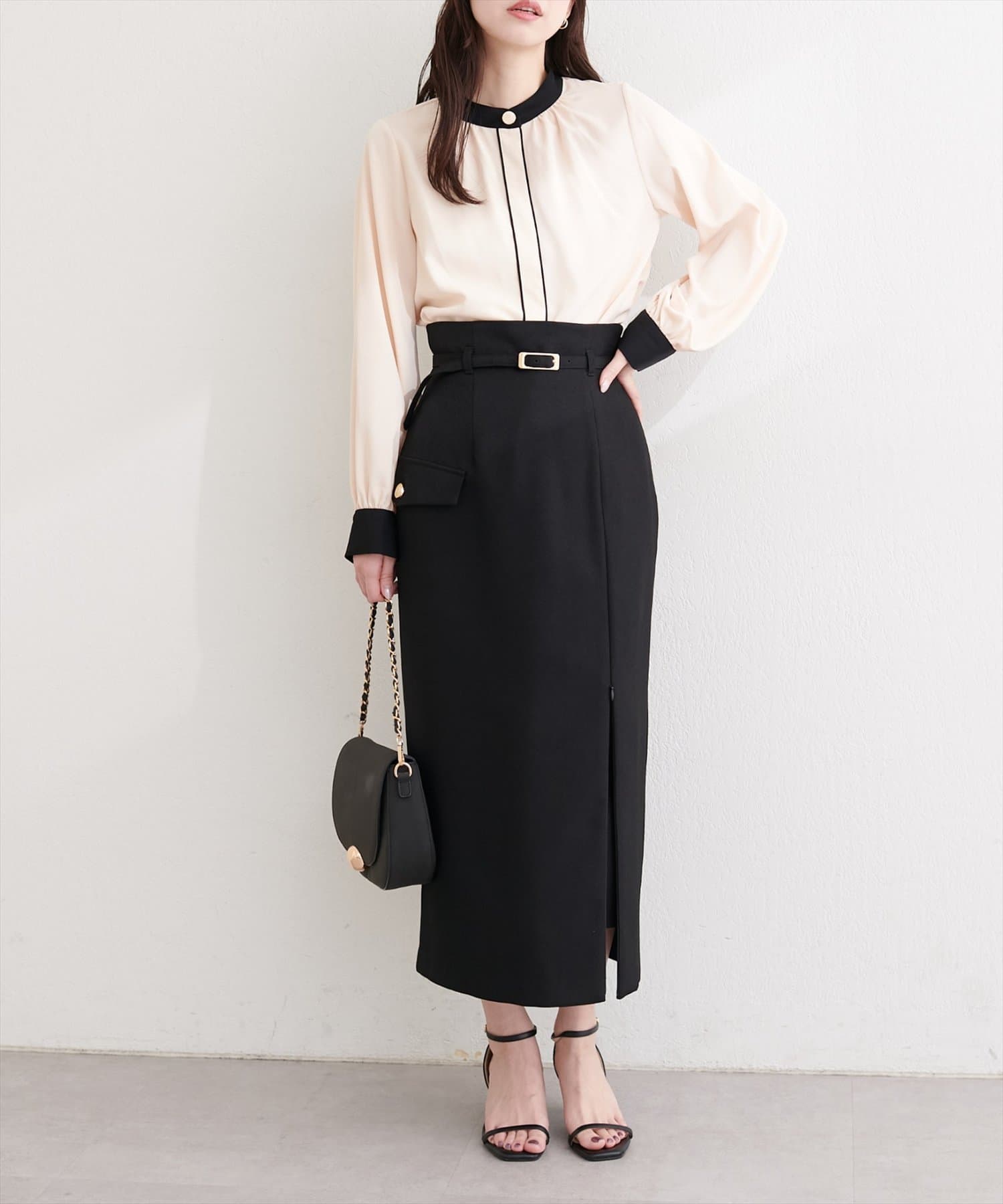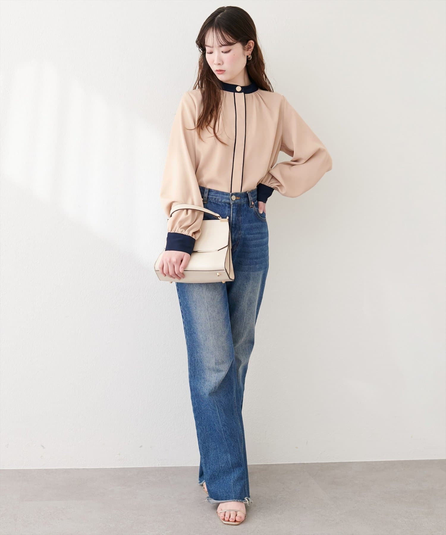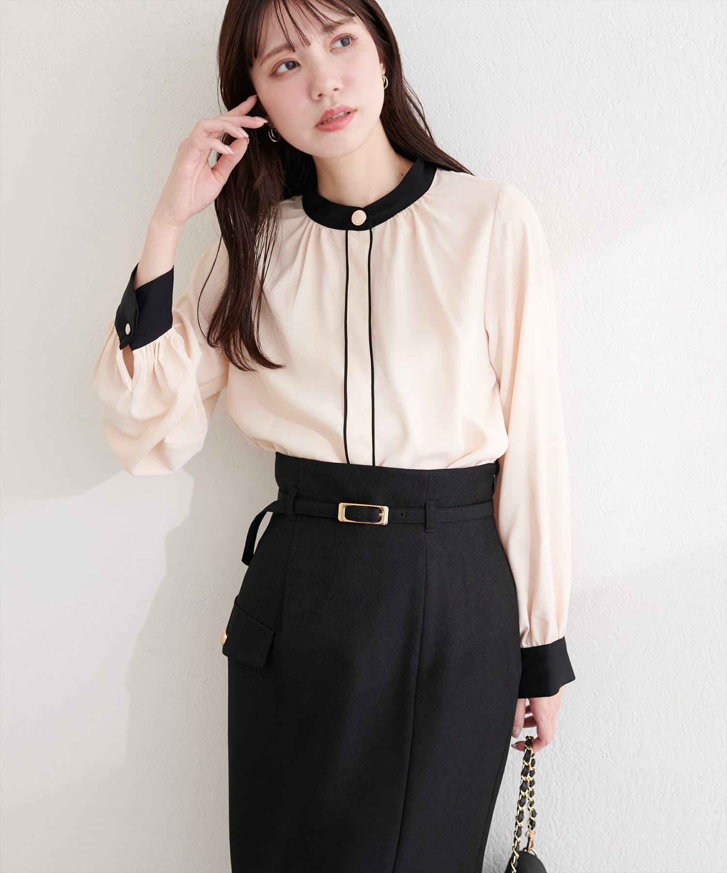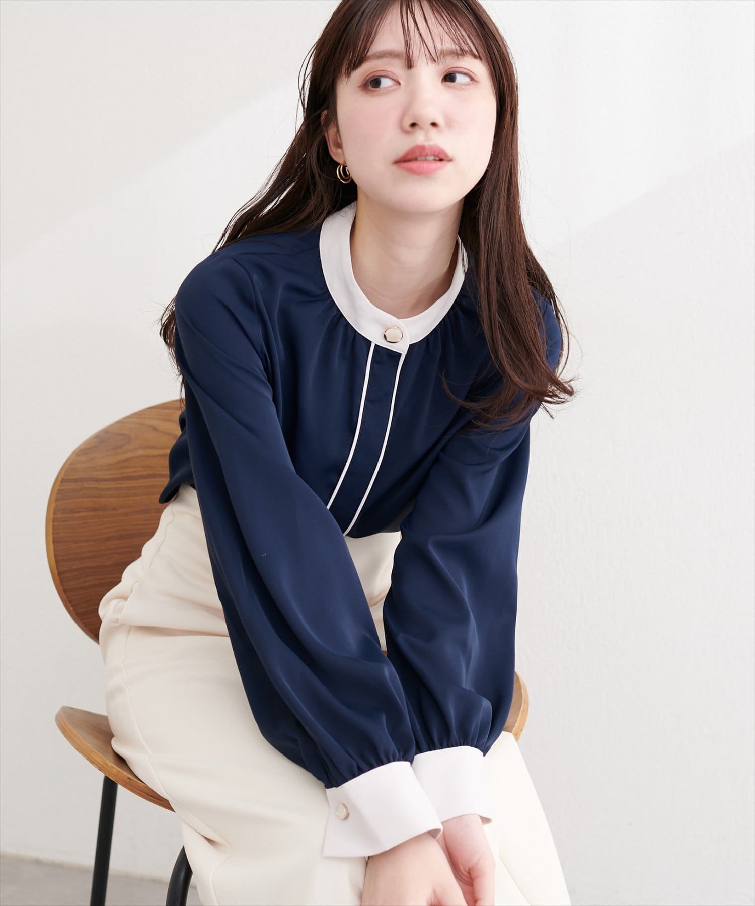 普段使いはもちろん、オフィスシーンにも最適なブラウスです。