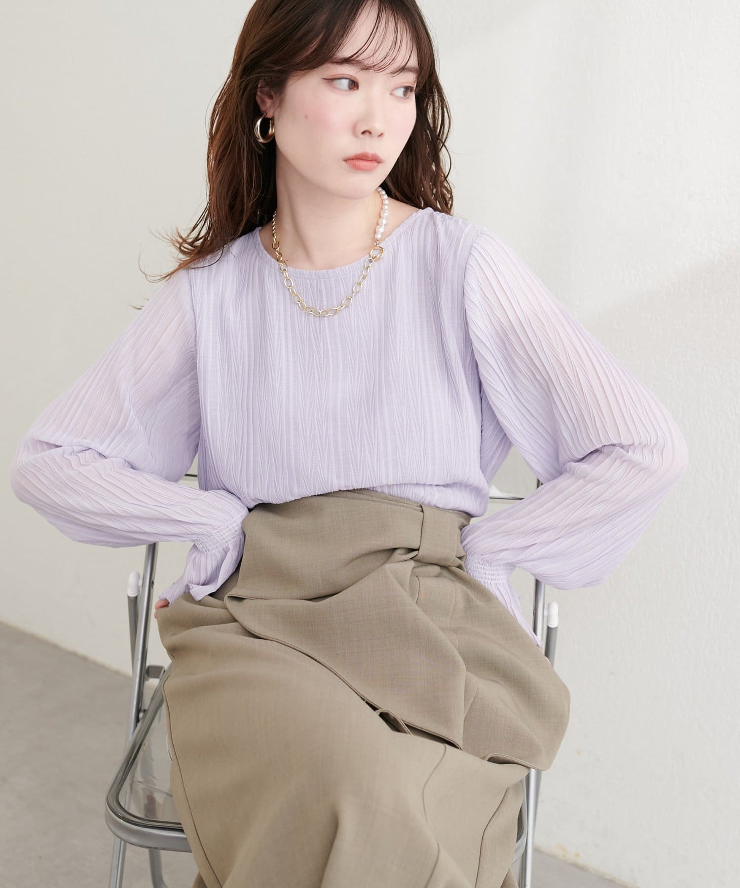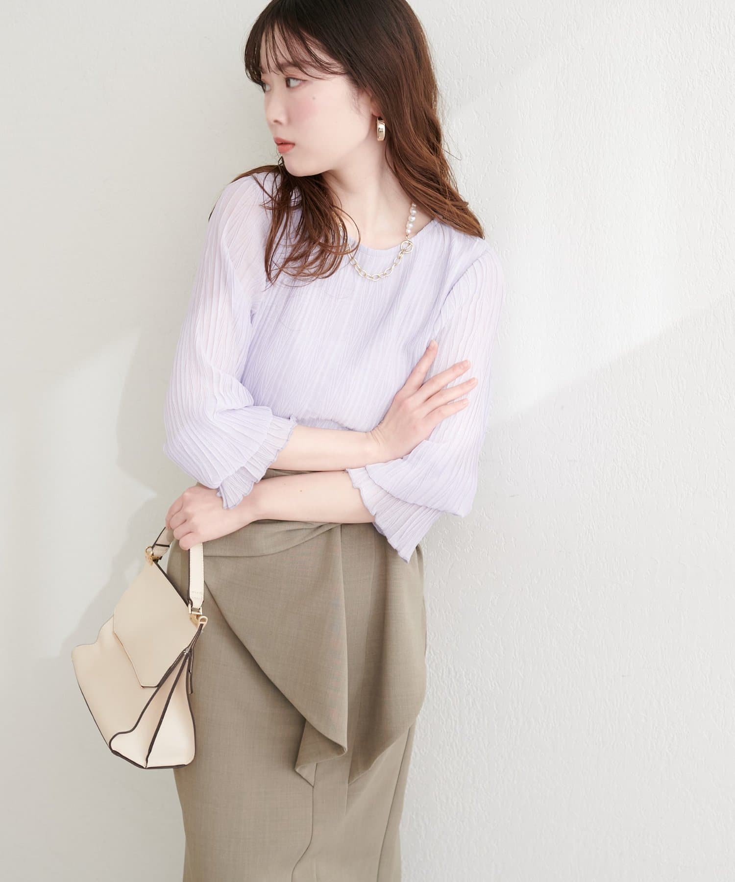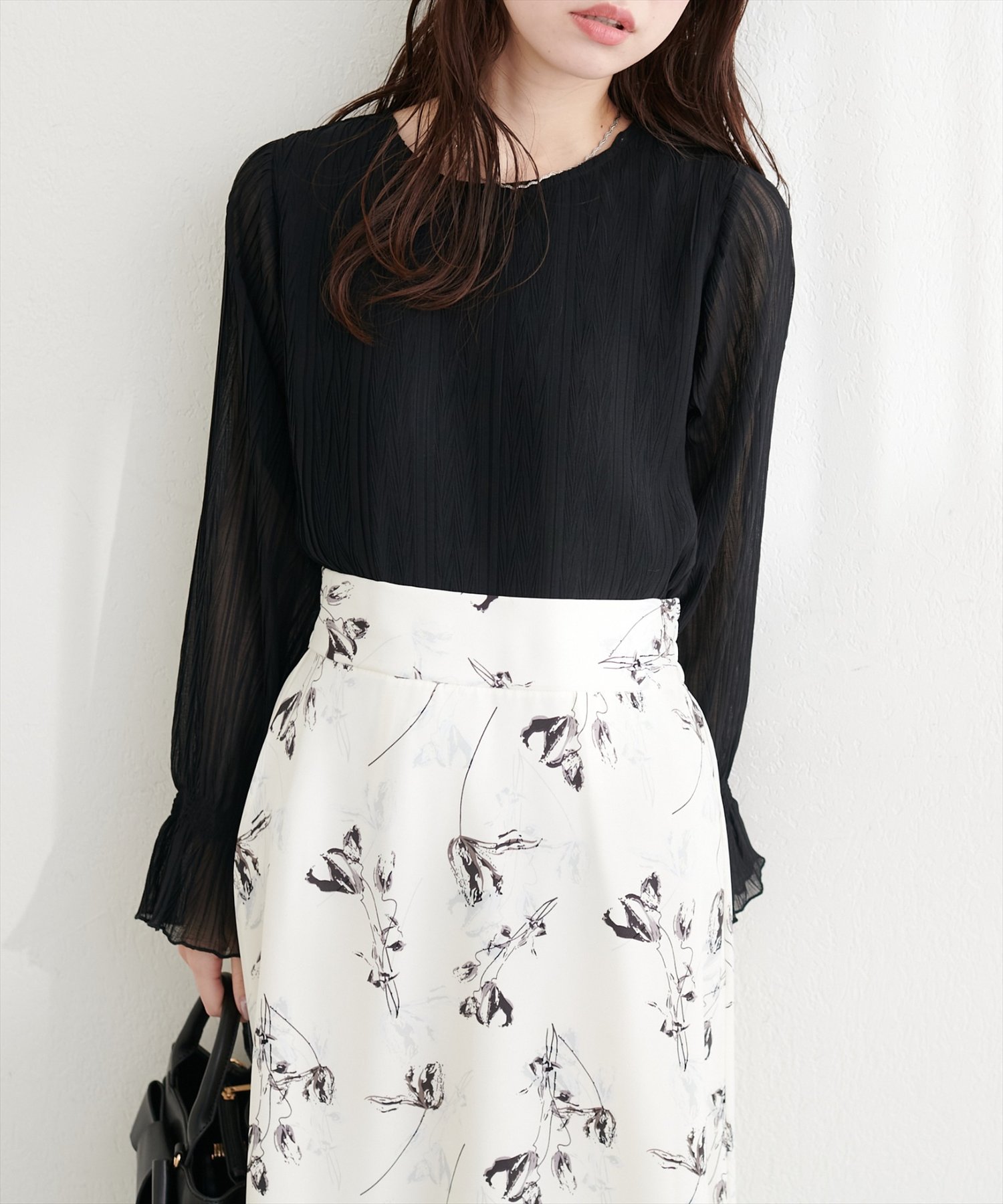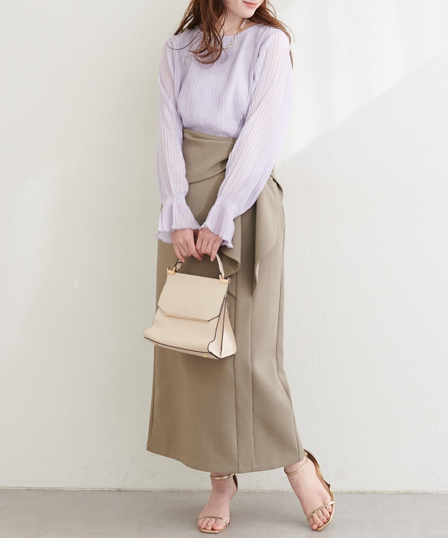 ブラウスの素材感が引き立つコーデに仕上がります。