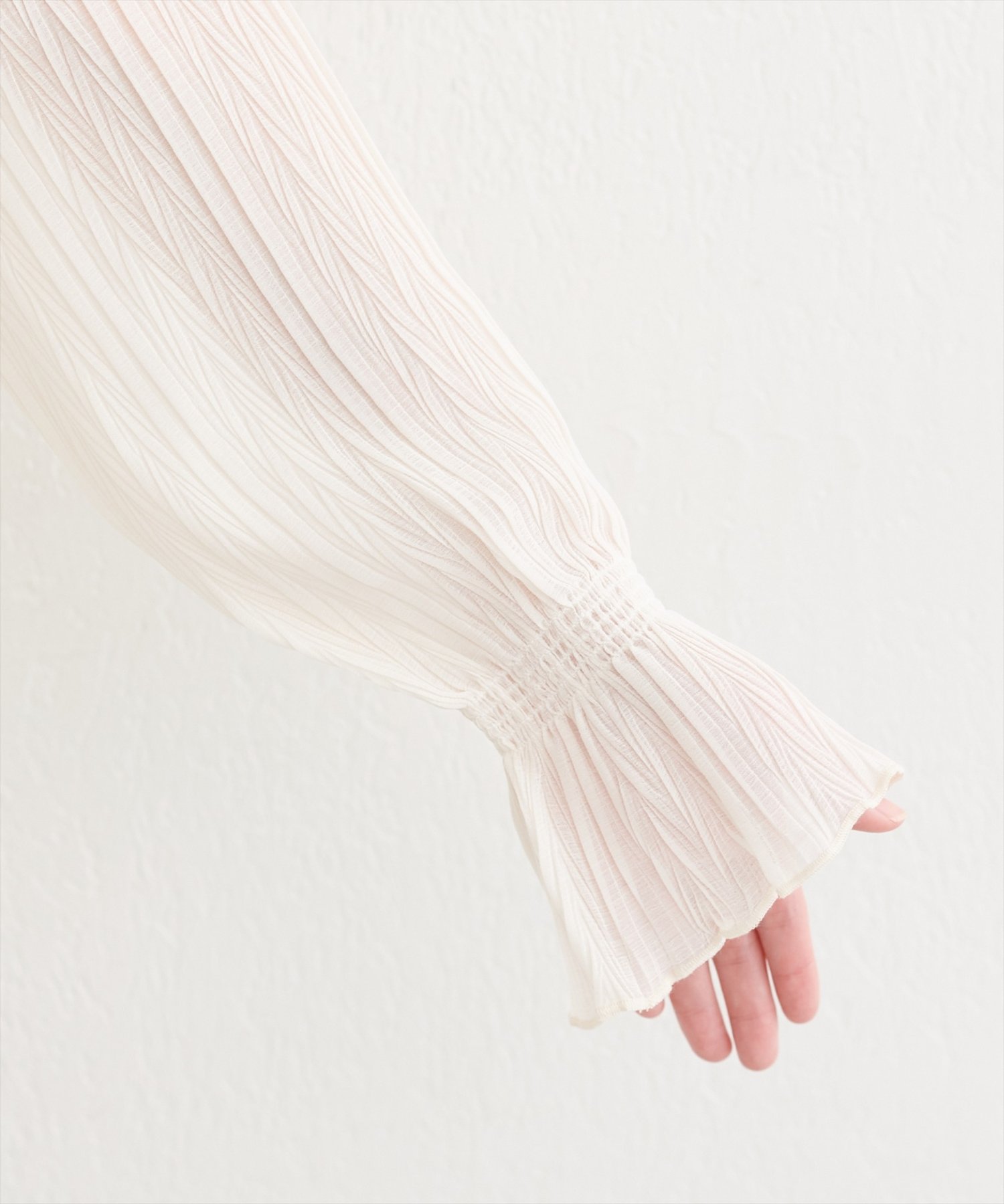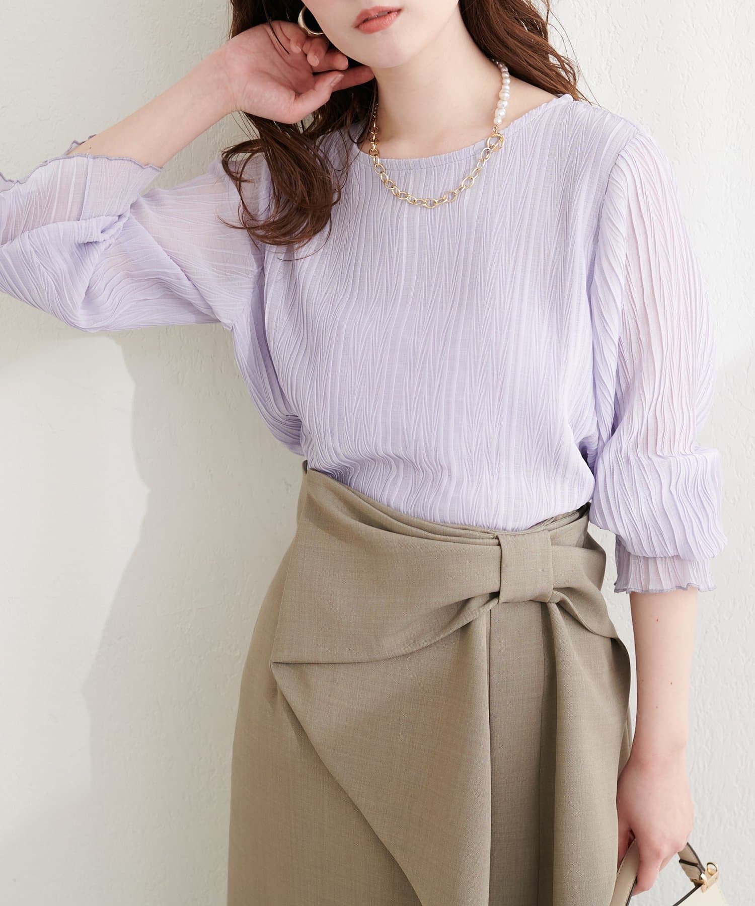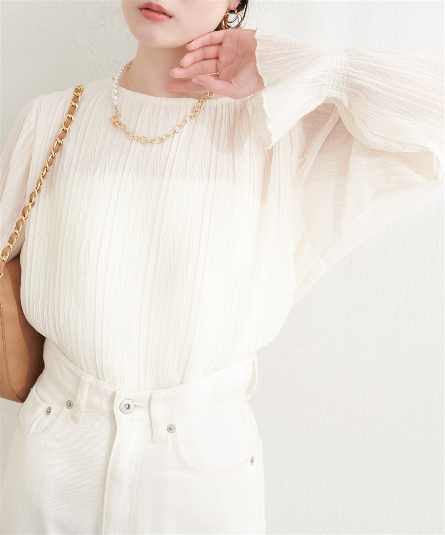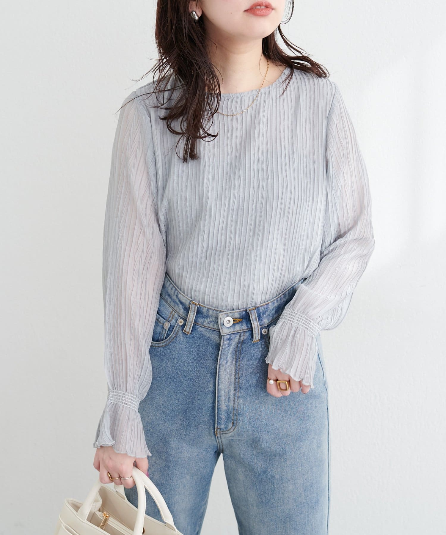 ブラウスの素材感が引き立つコーデに仕上がります。