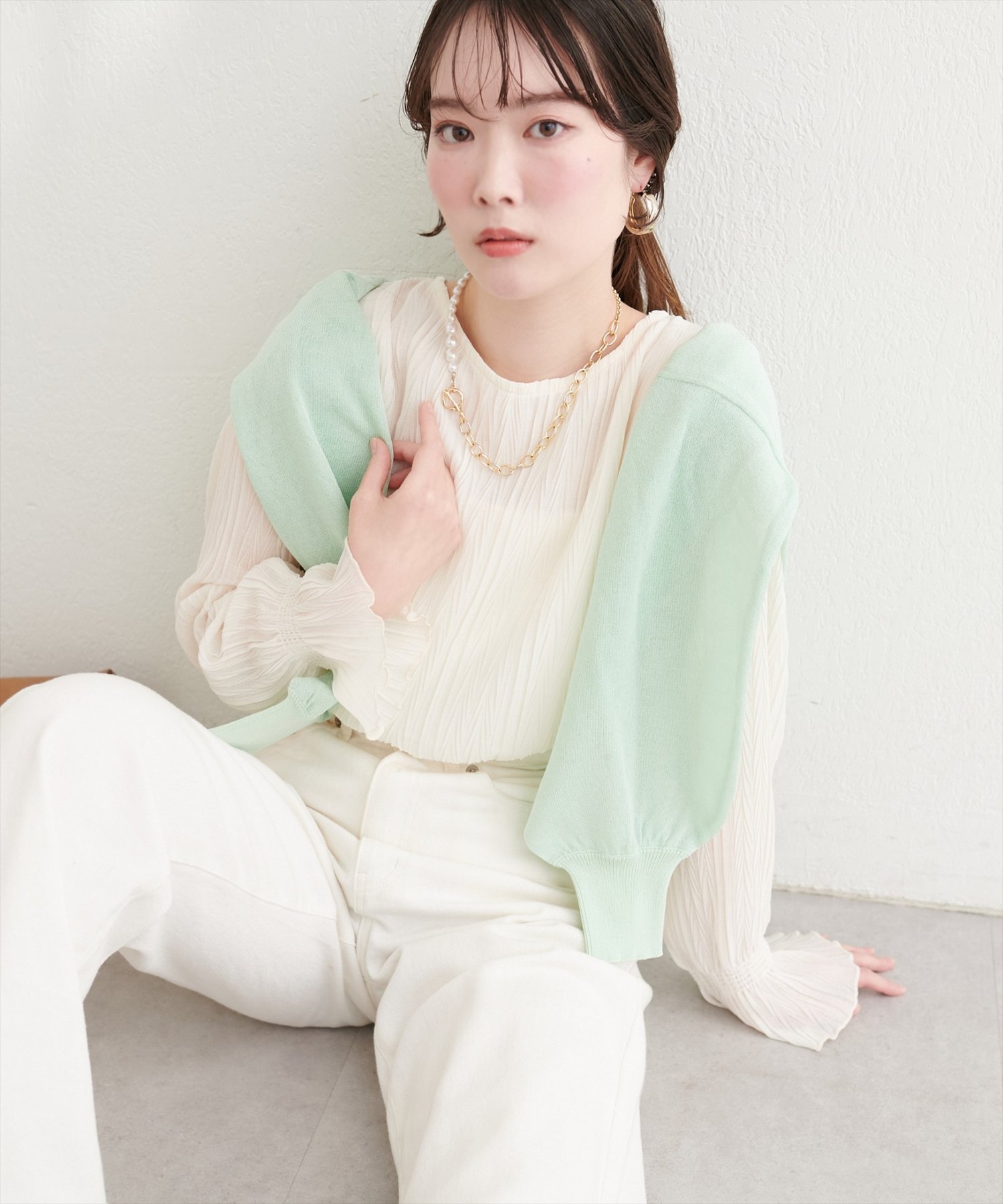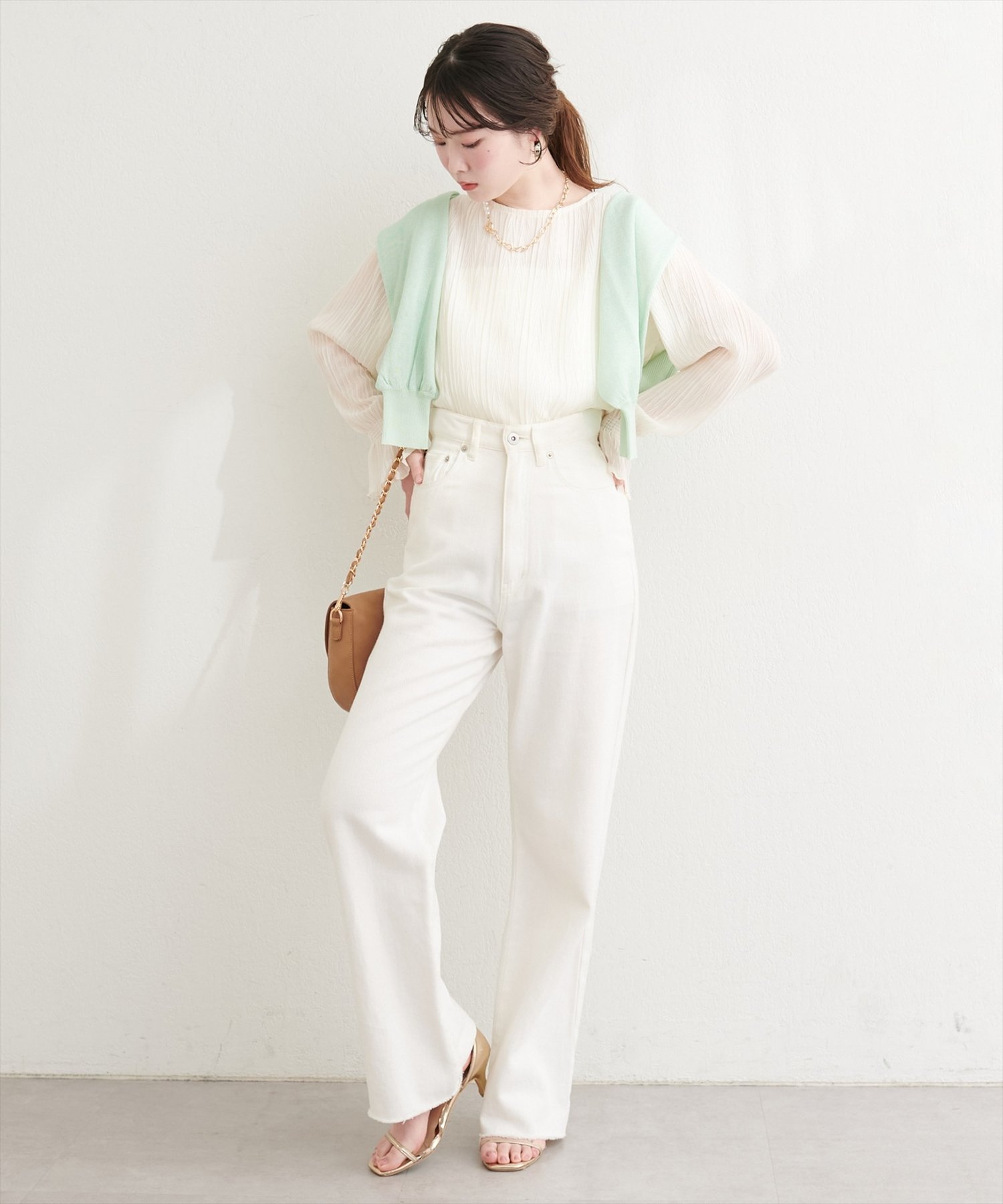 ややシアー感のある生地を採用し、華奢なキャミソールやタンクトップ合わせで、