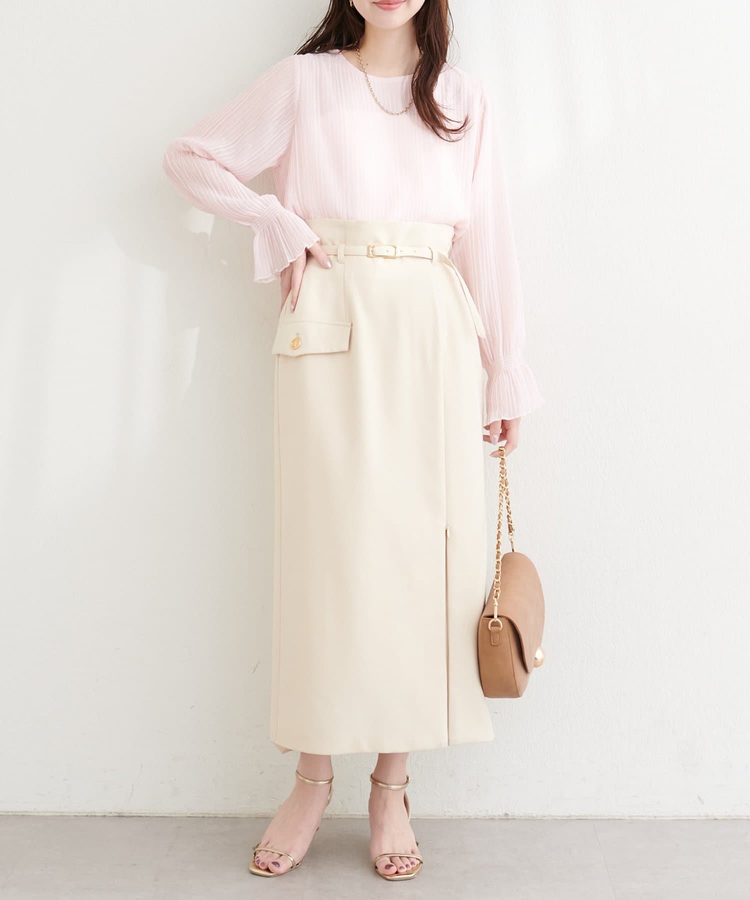 ナローシルエットやAラインシルエットのスカートにウエストインでシンプルにスタイリングして頂くだけで、
