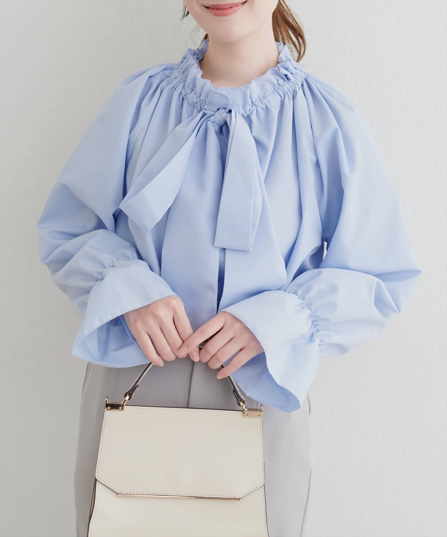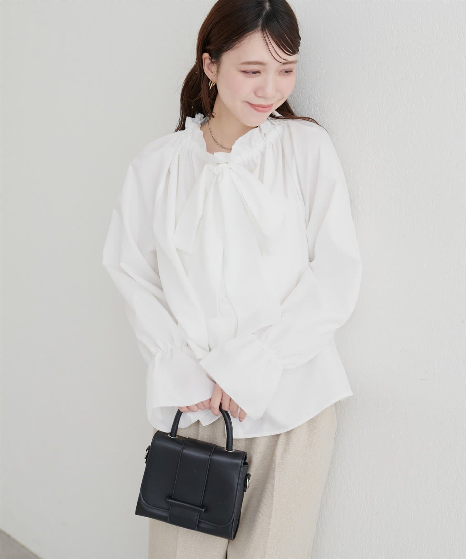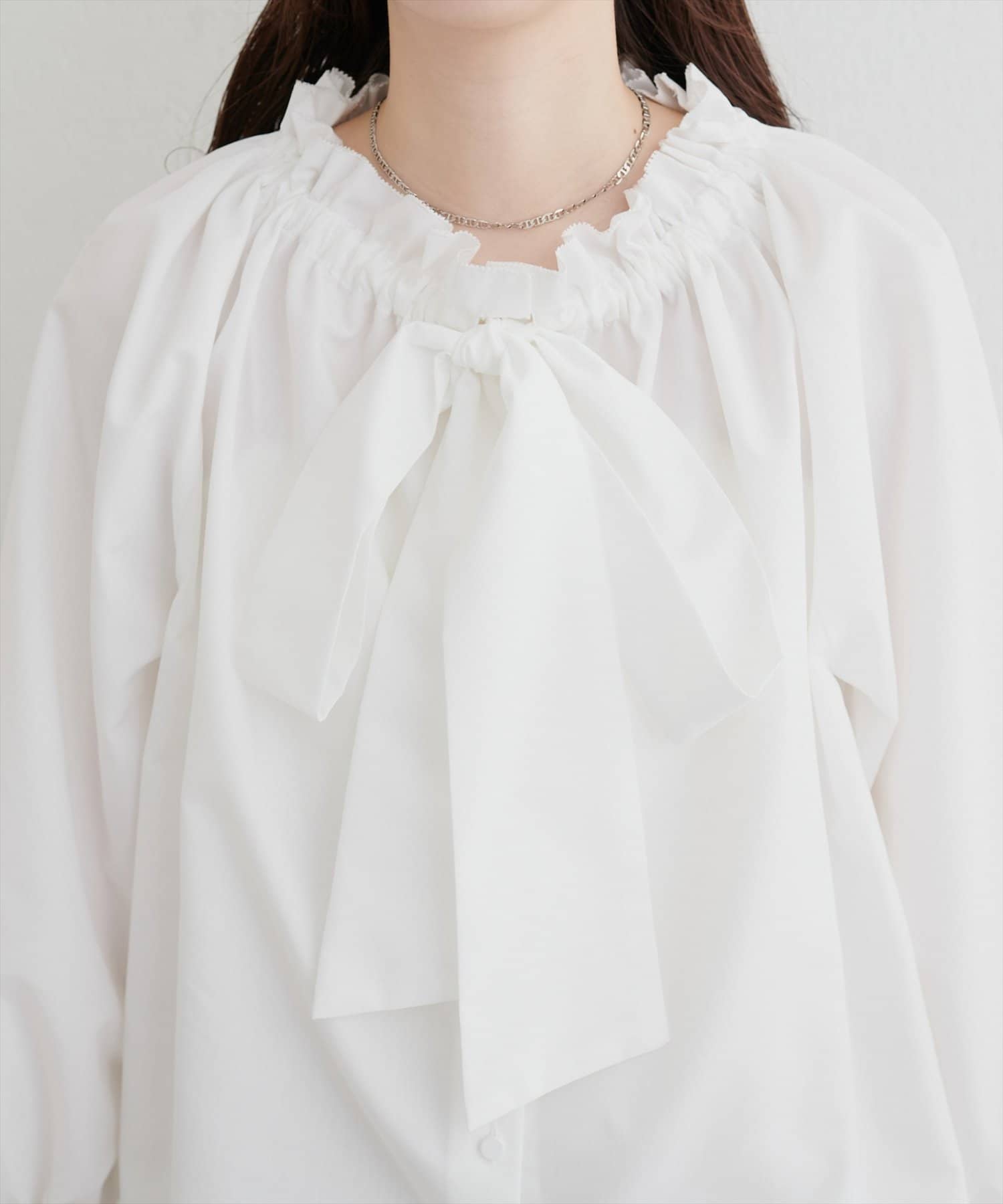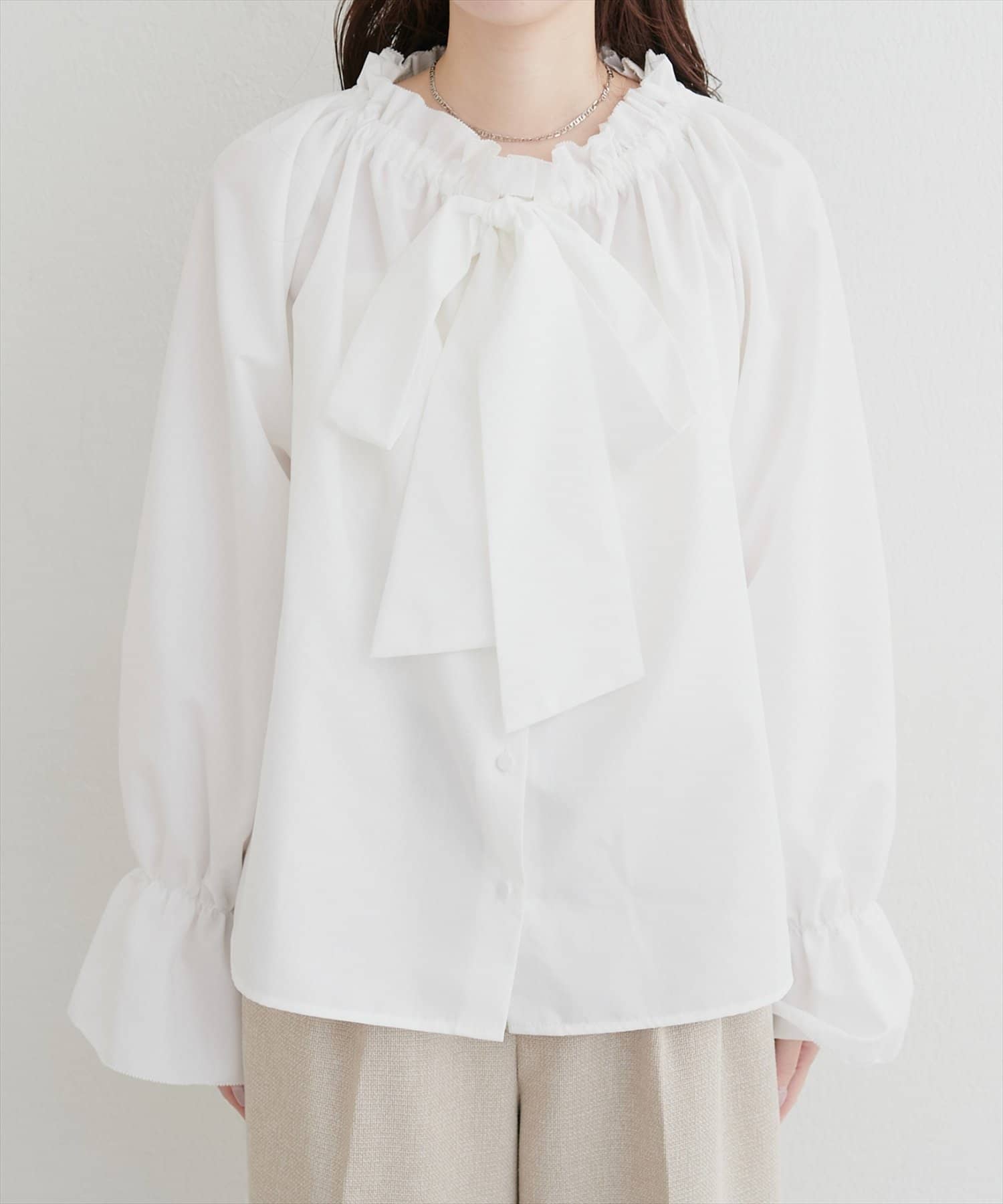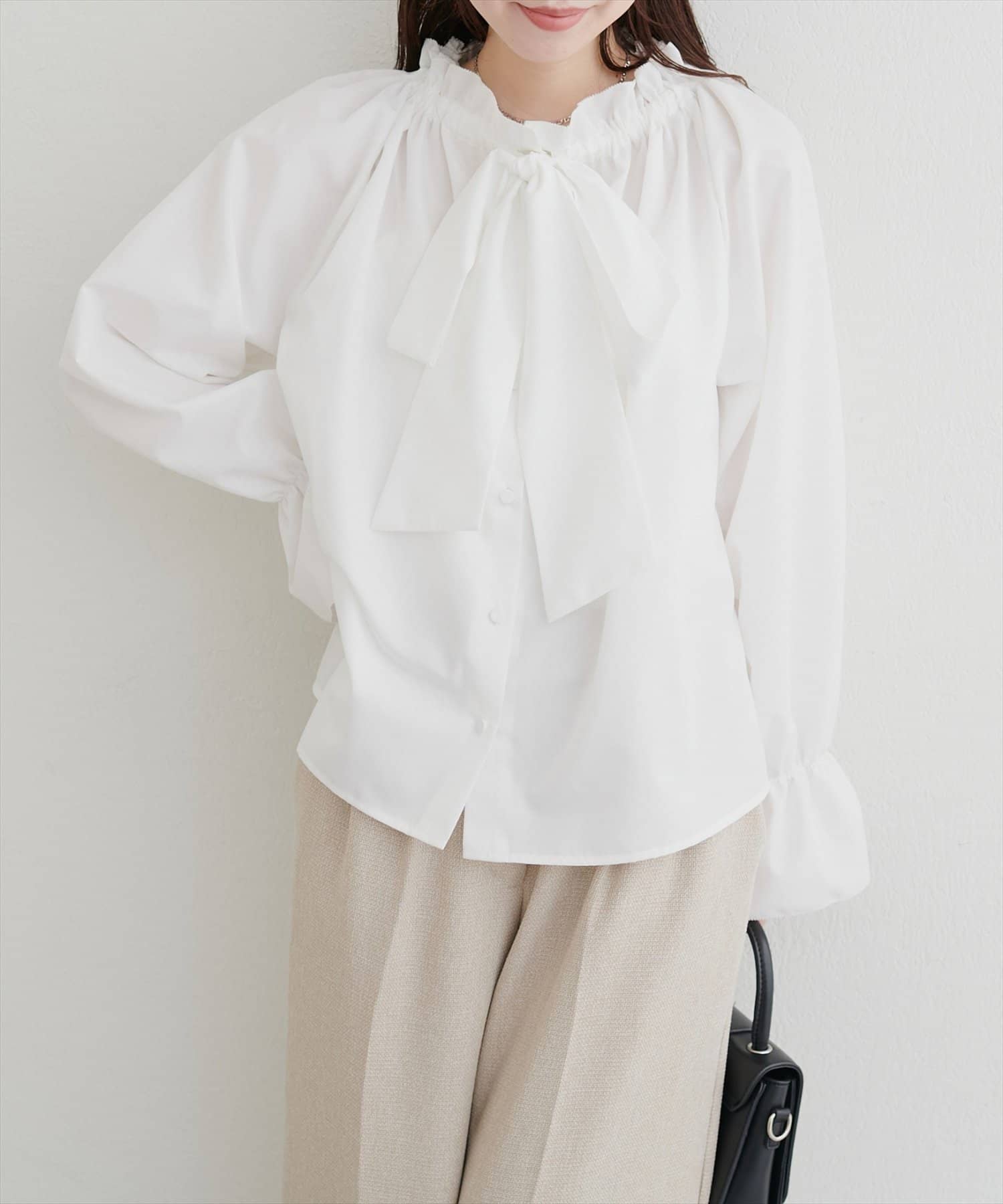 リボンをきゅっと結べば、清楚でクラシカルなブラウスに。