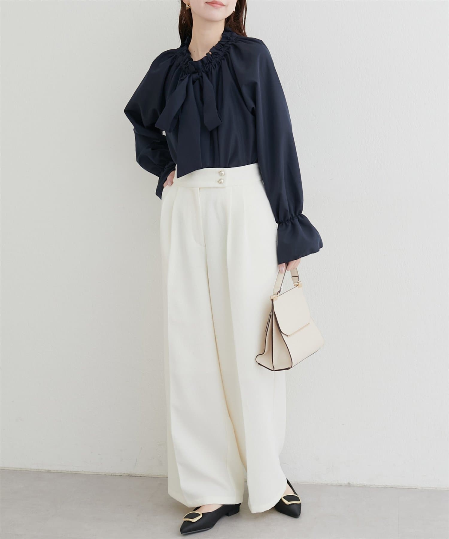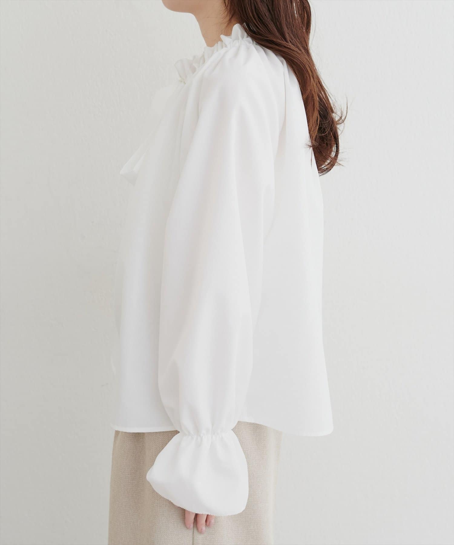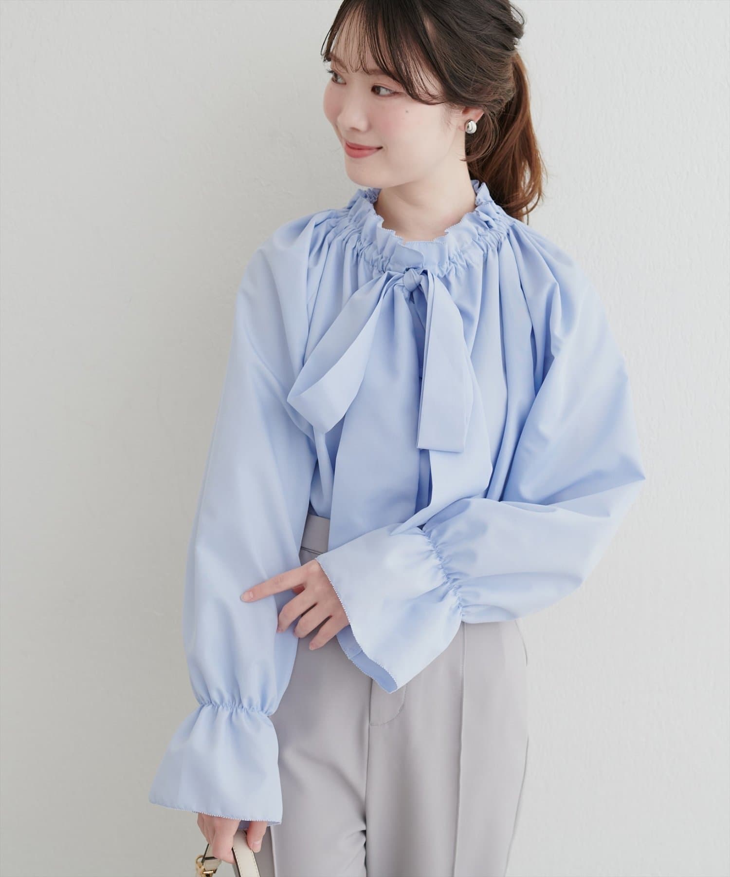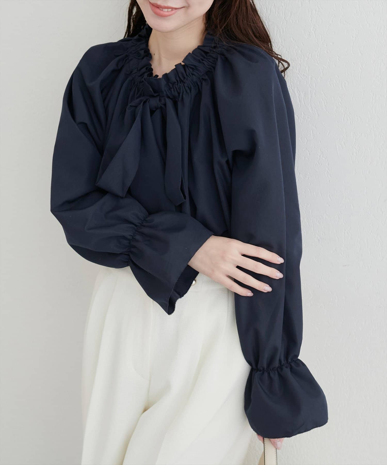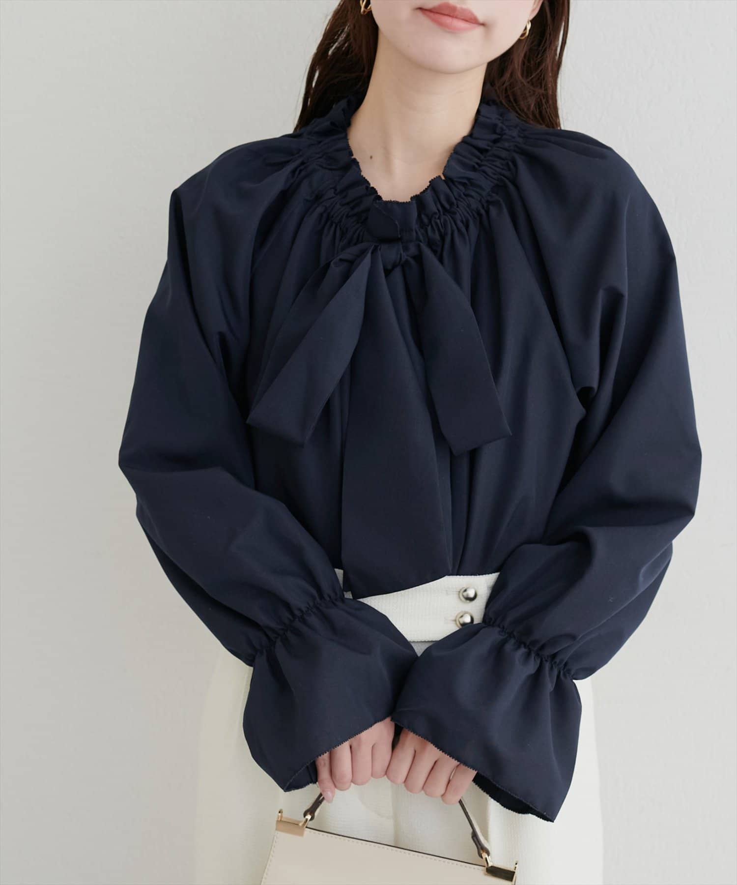 リボンをきゅっと結べば、清楚でクラシカルなブラウスに。