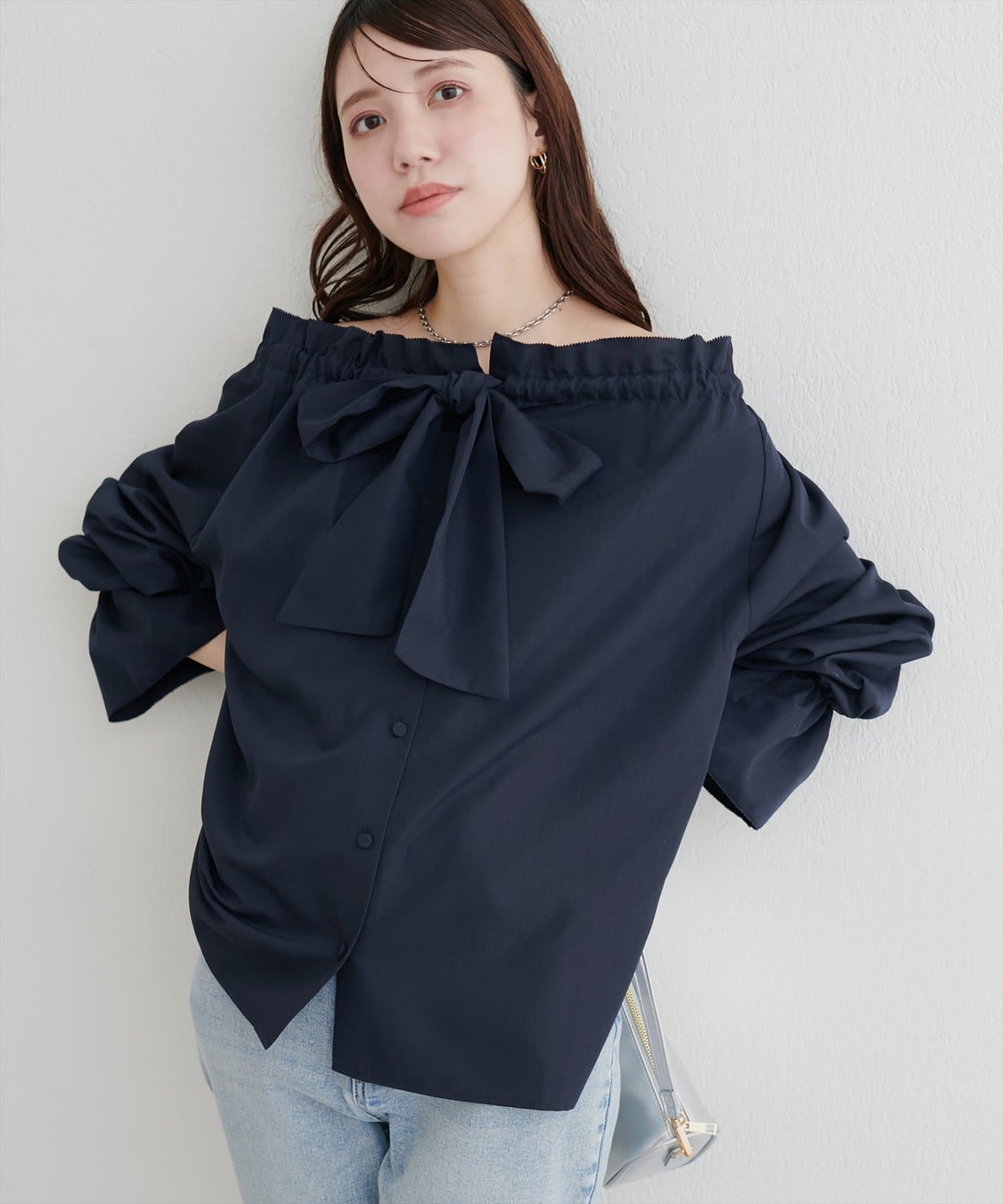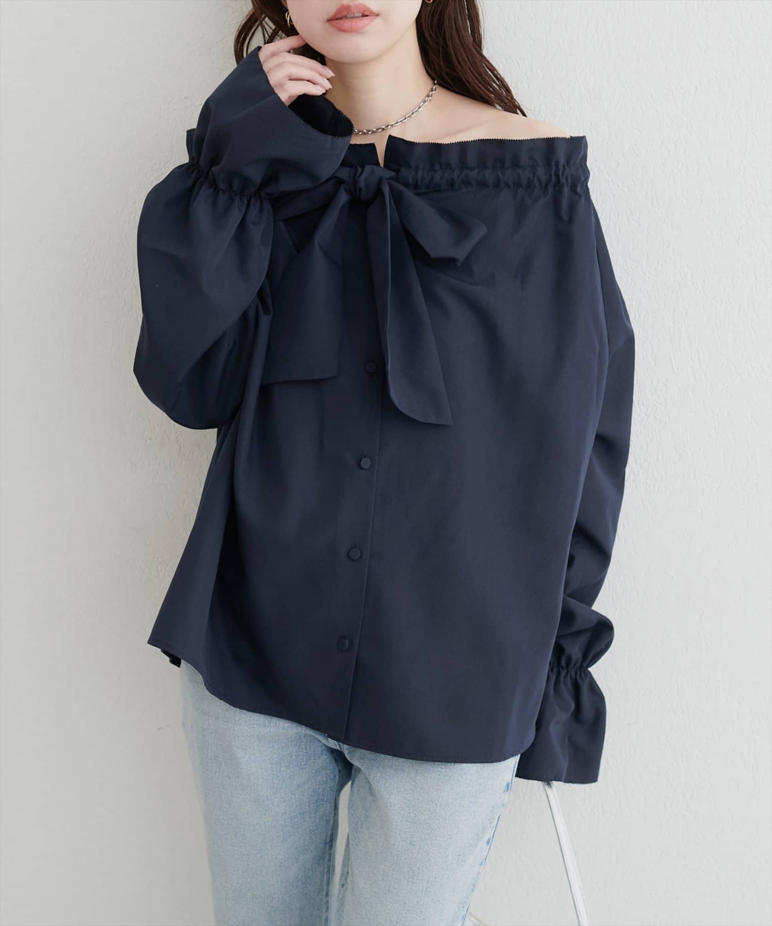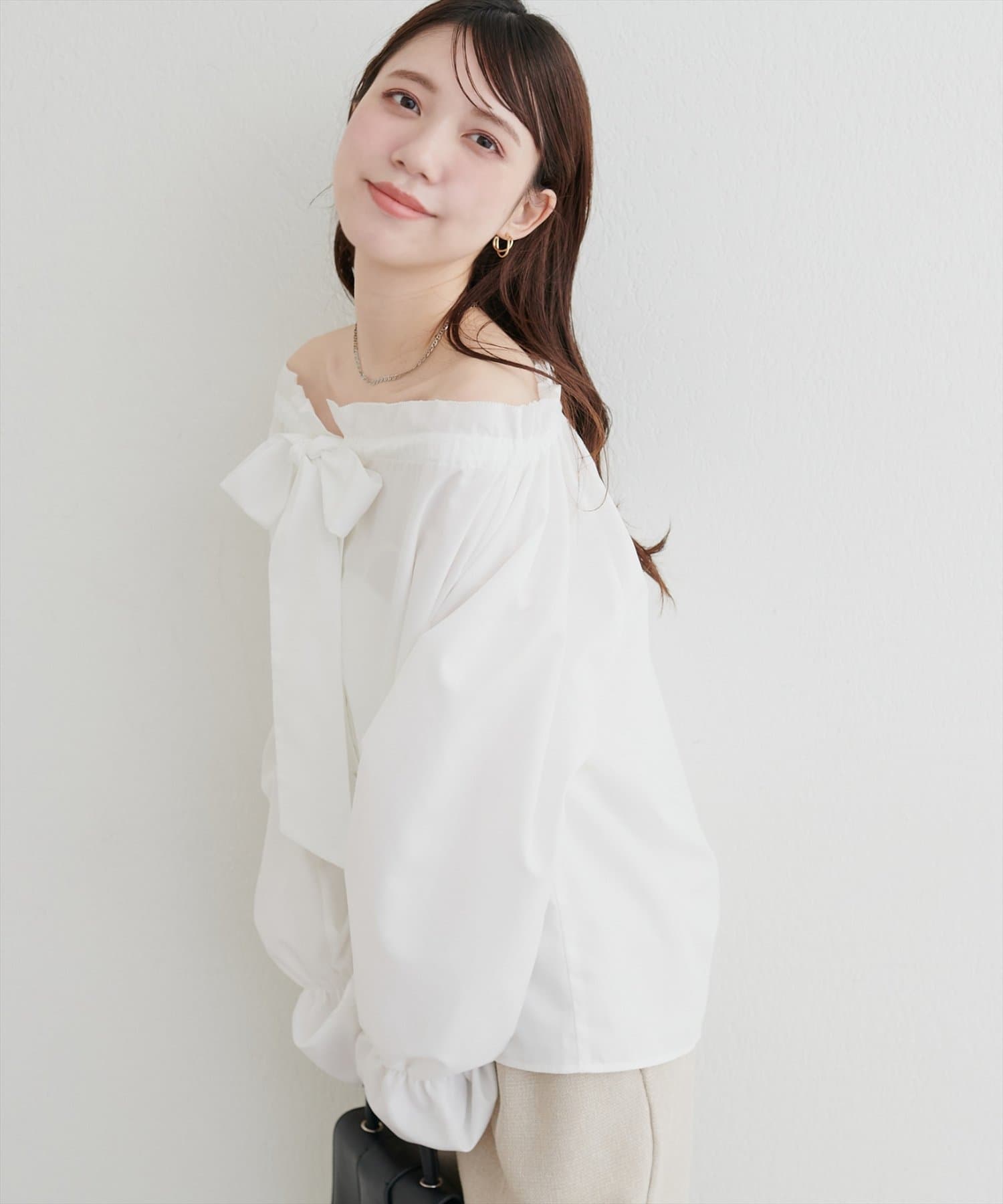 リボンをゆるめに結べば、オフショルになる嬉しい2WAYデザインです。