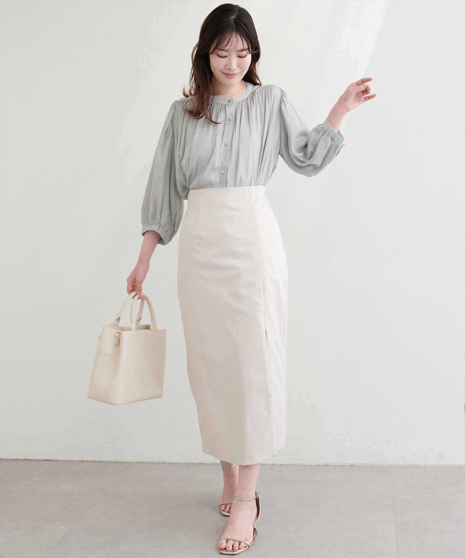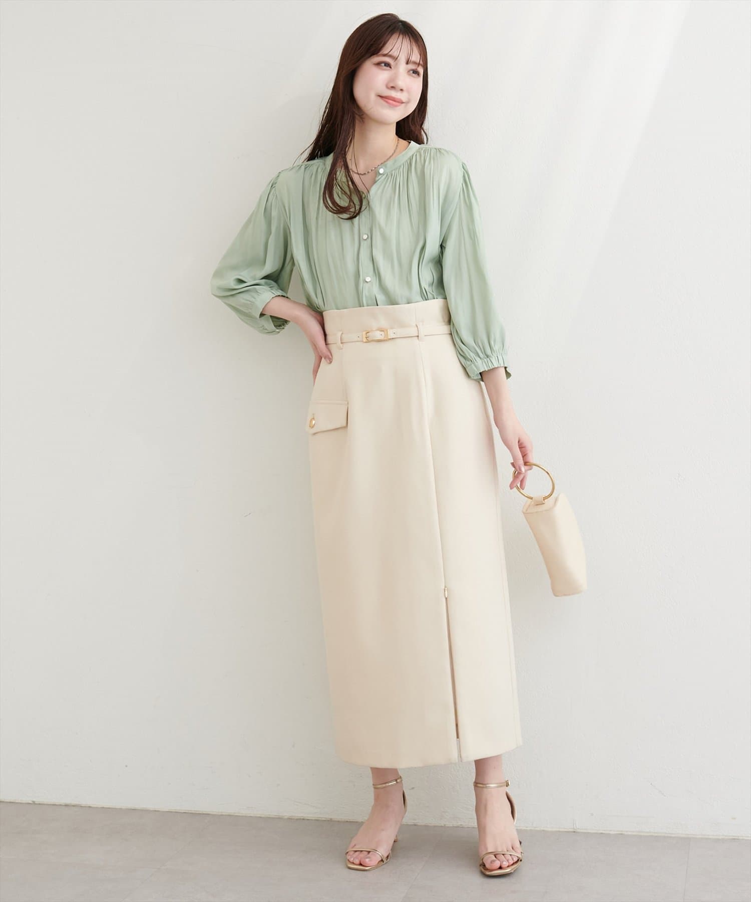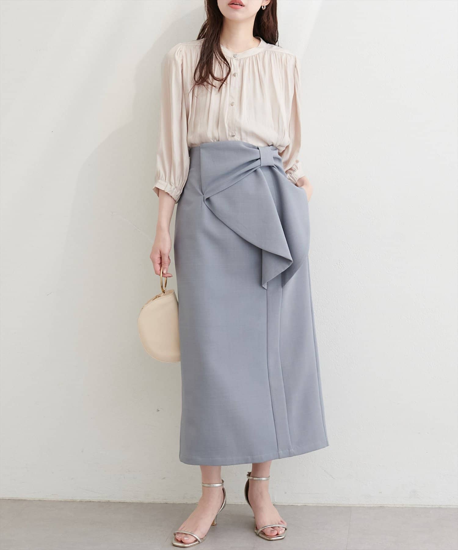 マーメイドシルエットやフレアライン、Iラインのスカートにウエストインして、