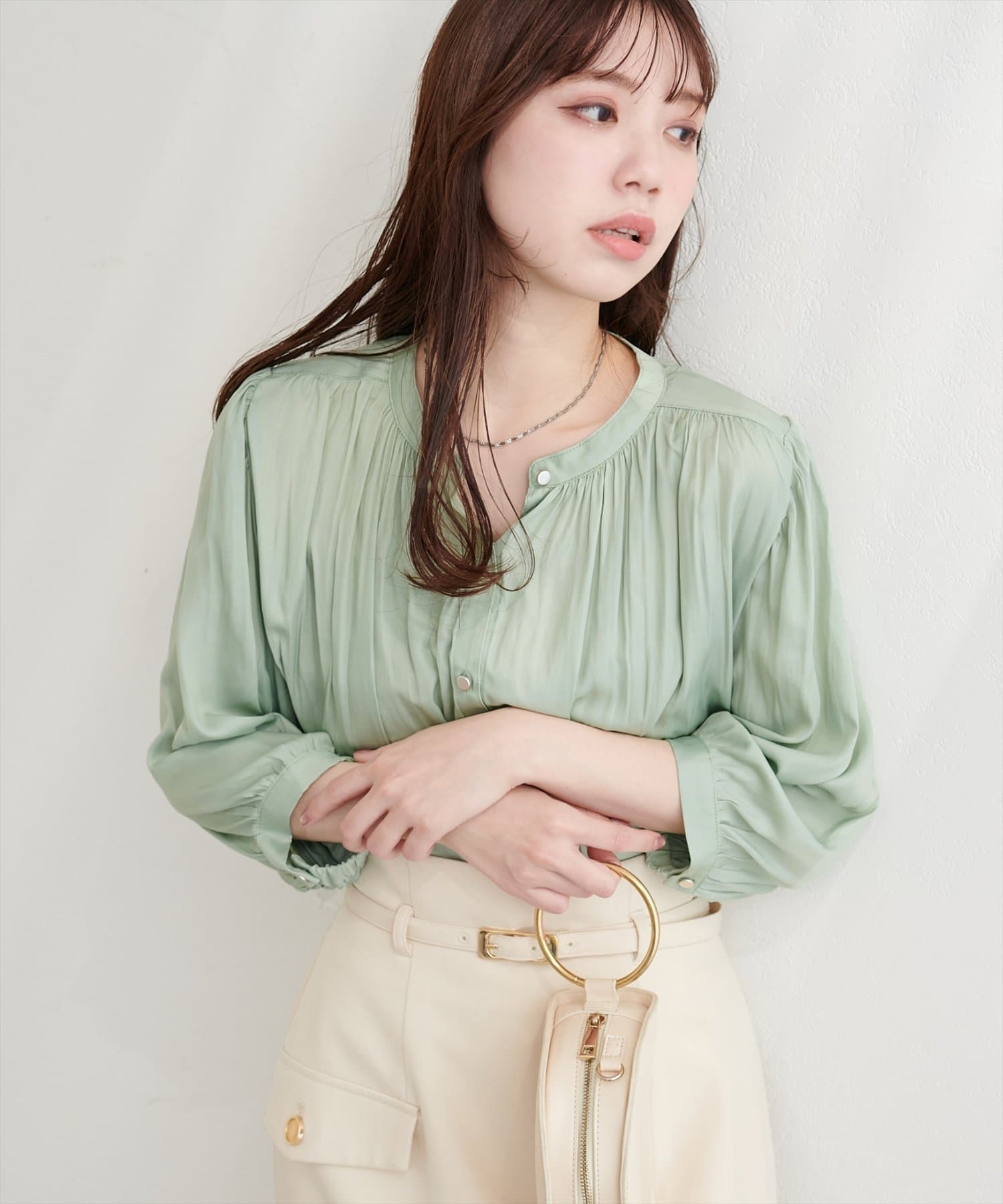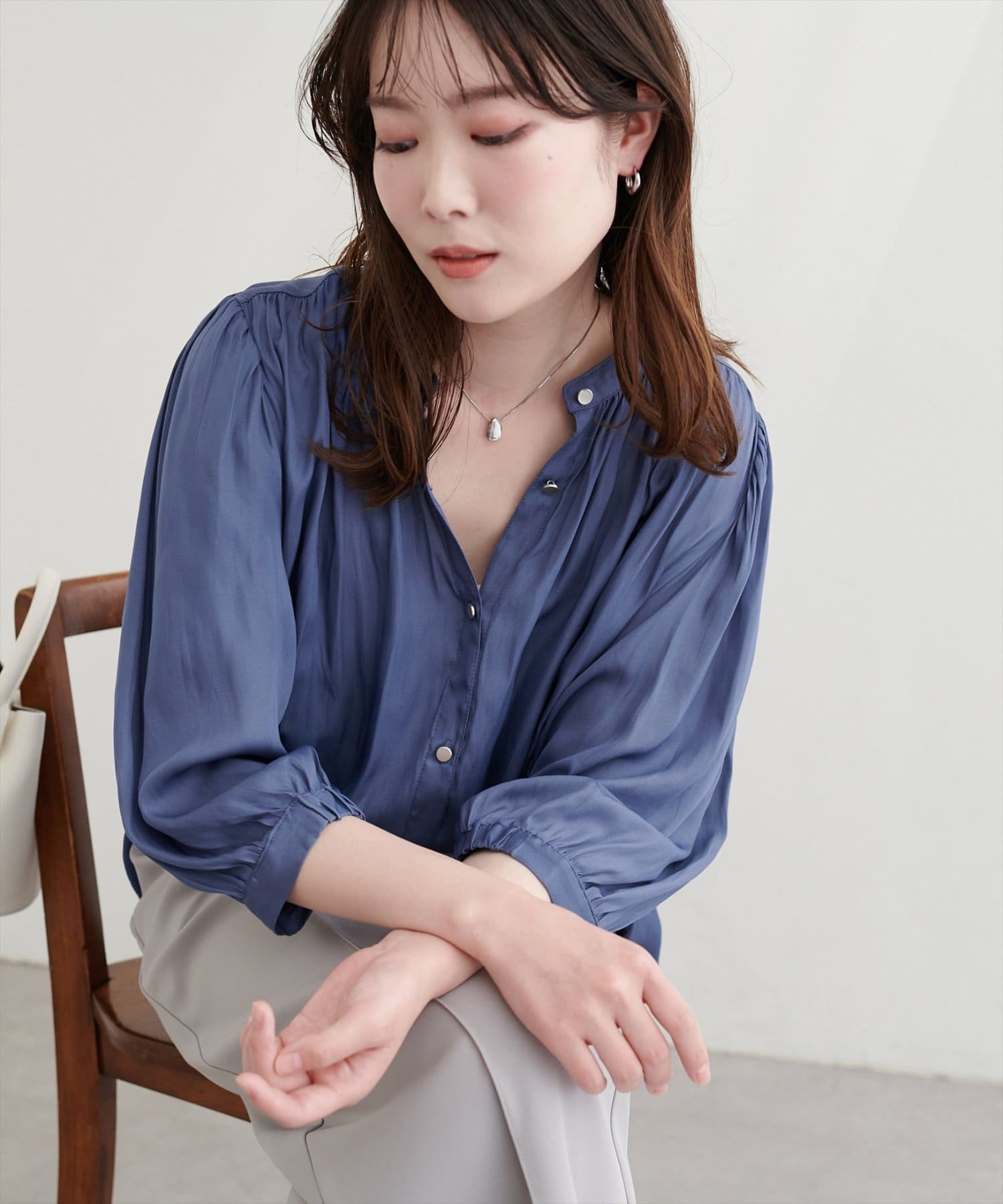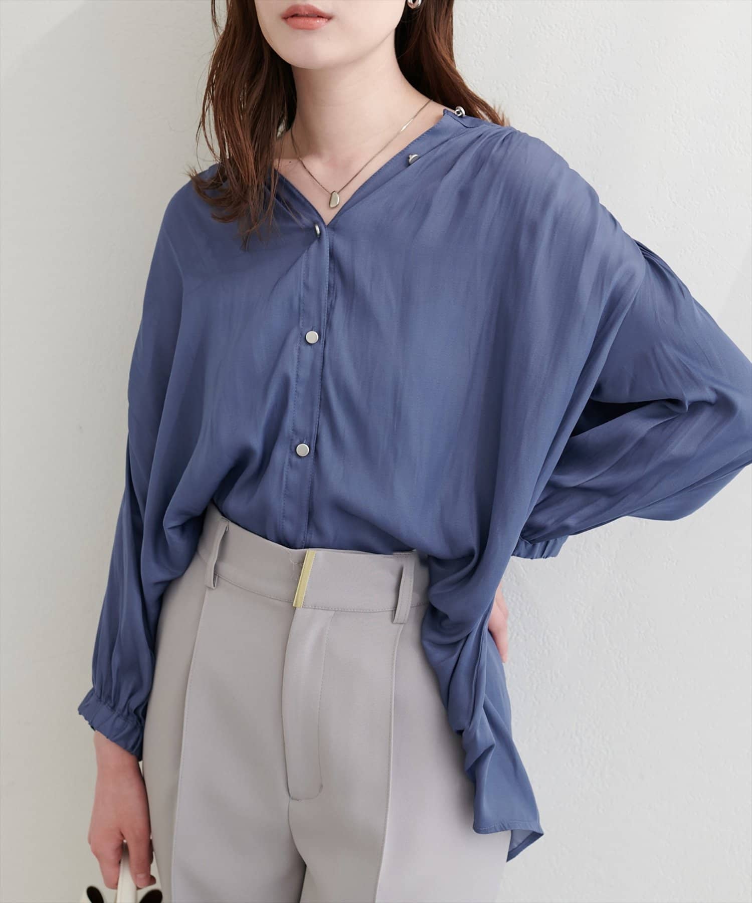 普段使いはもちろん、オフィスブラウスにも持ってこいの一枚。