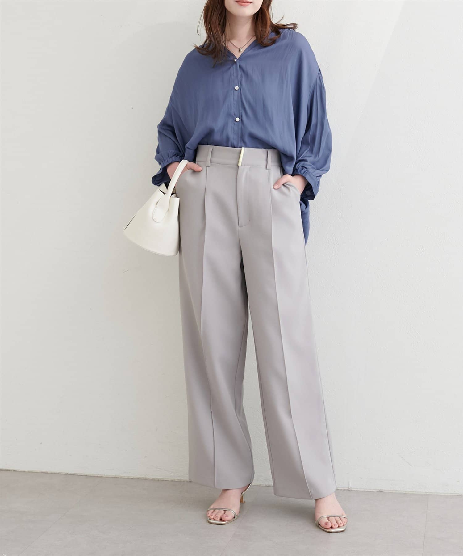 ほんのり控えめな光沢感と落ち感のある滑らかな生地が高見え感UP。
