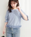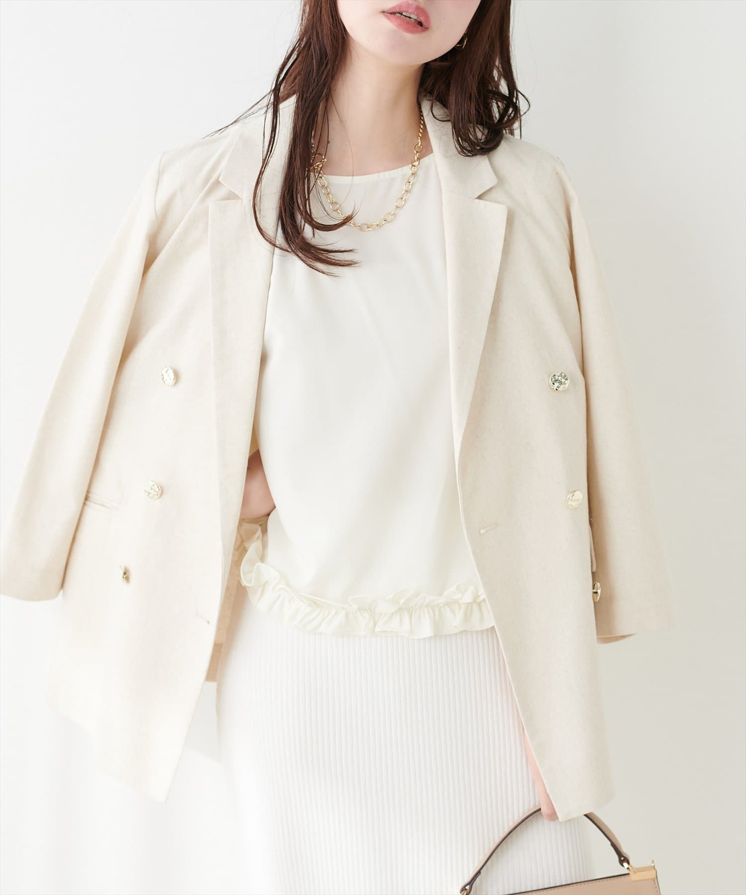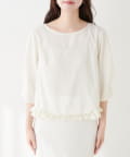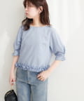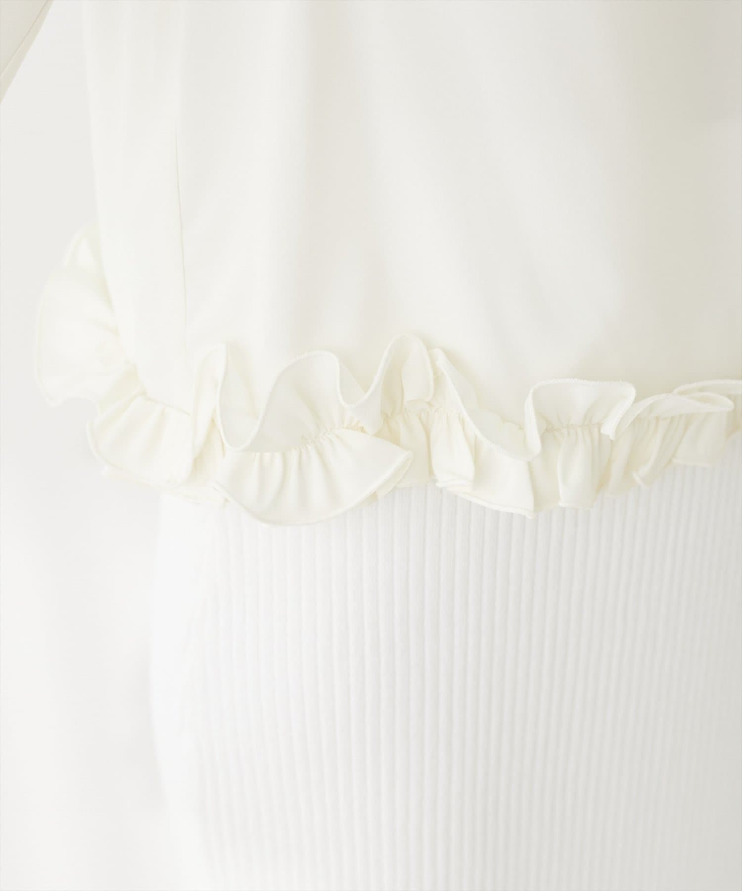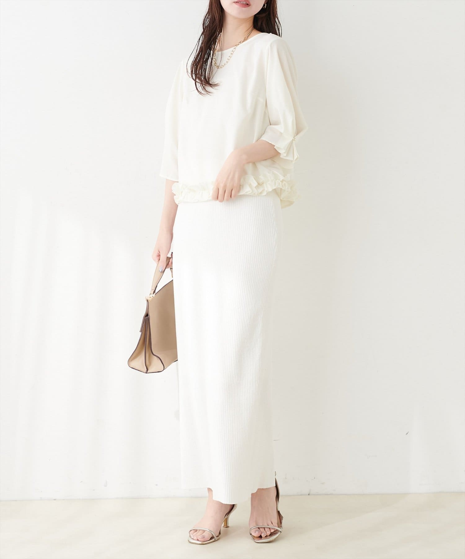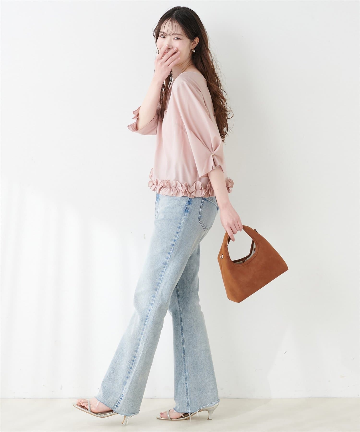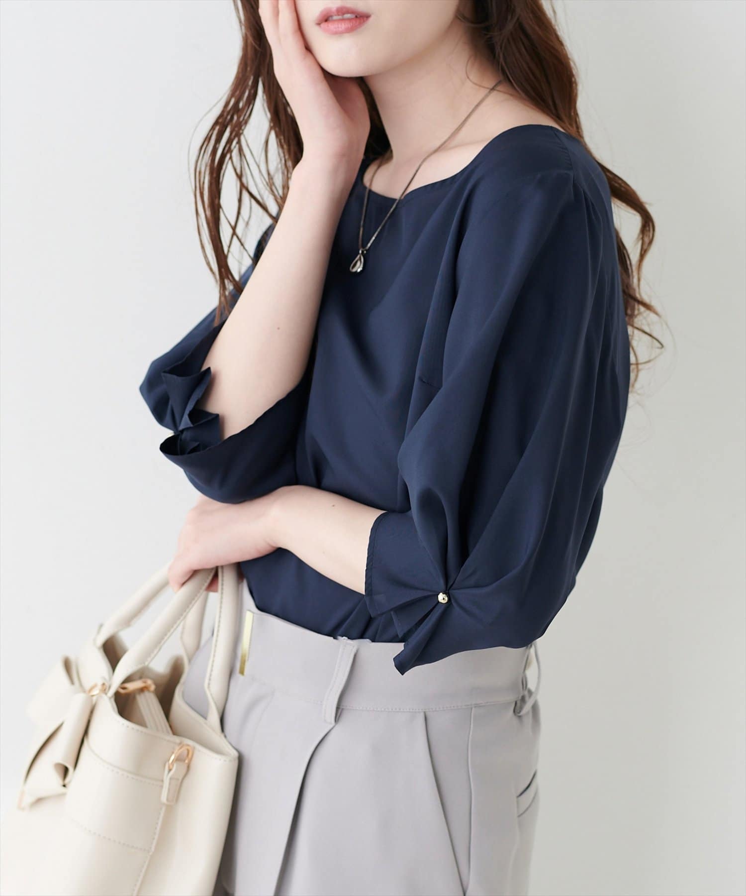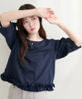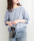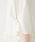 袖にあしらわれたタックと、裾のフリルデザインが愛らしい一枚。