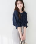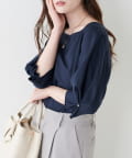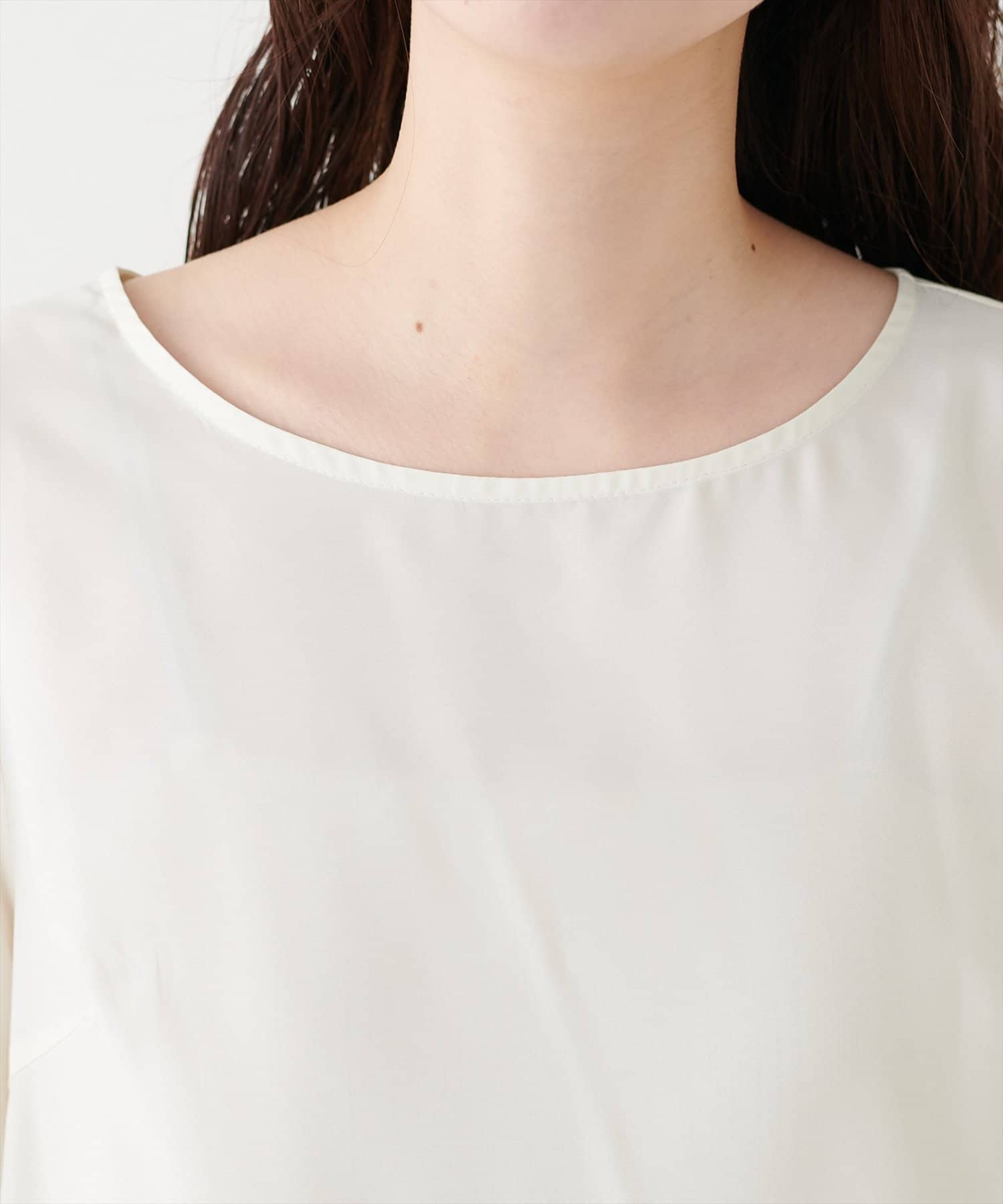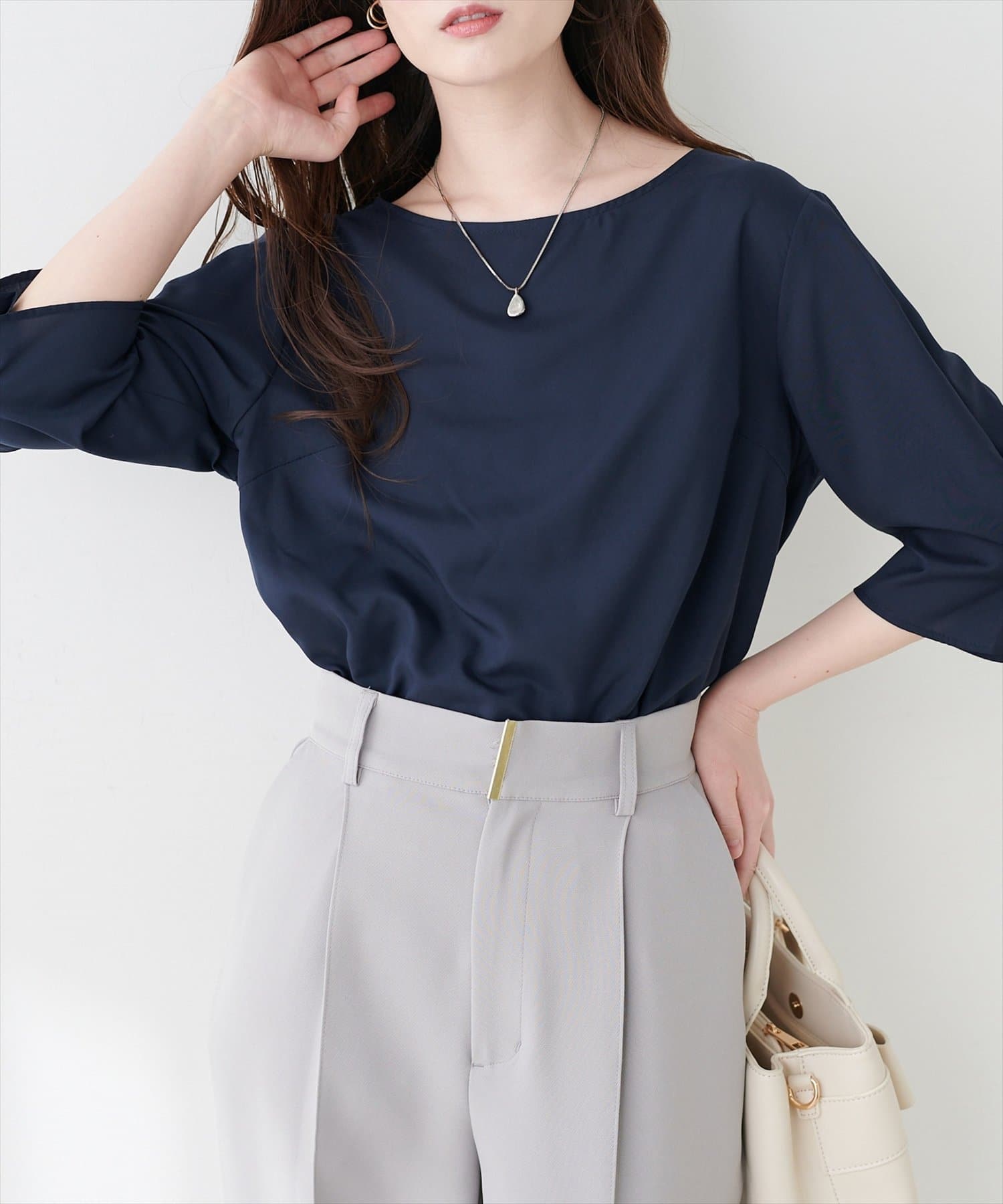 首元はすっきりとしたラウンドネックで、アクセサリーとの相性も抜群です。
