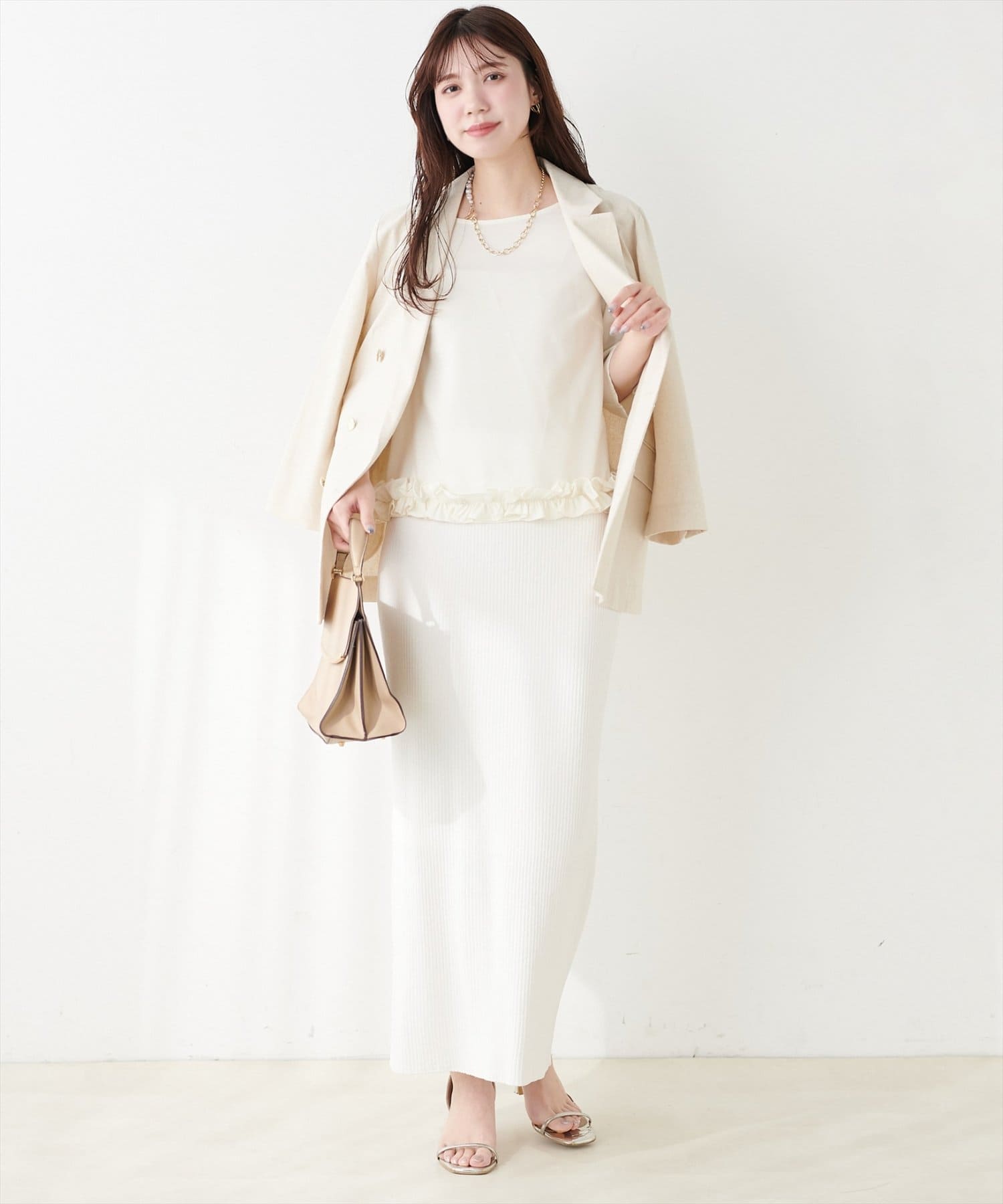 ジャケットなどを羽織れば綺麗めな印象になり、フォーマルなシーンにも着ていただけます。