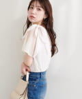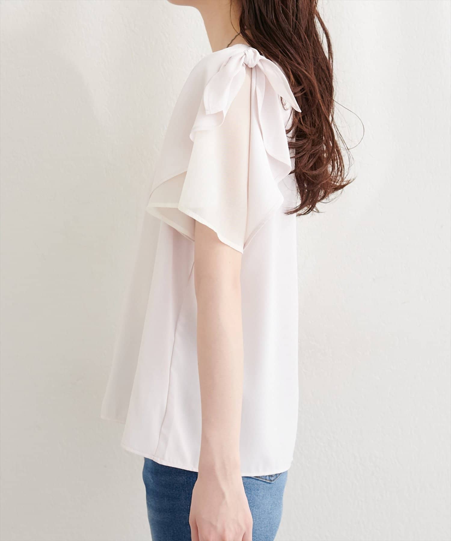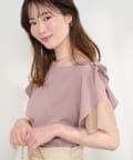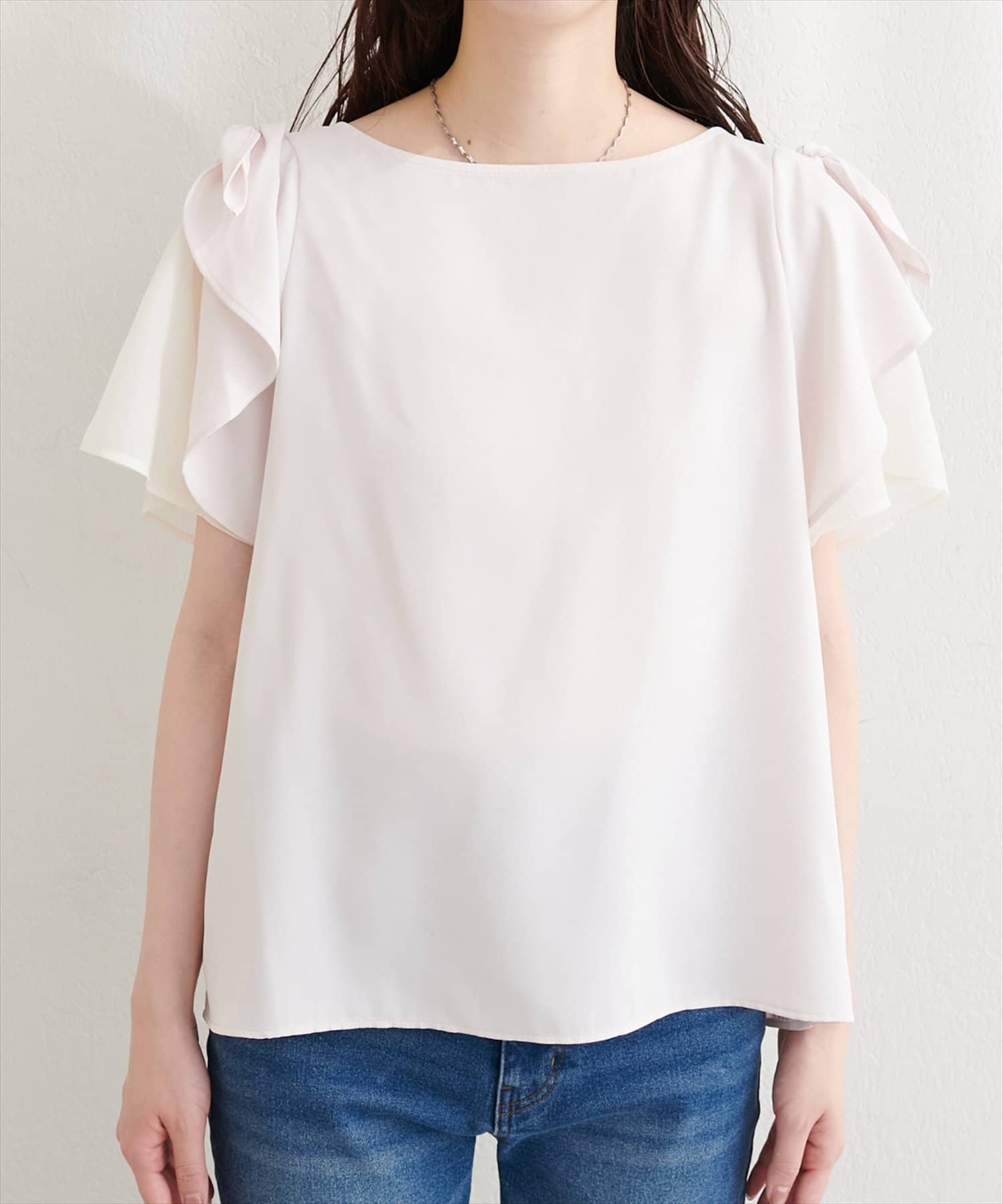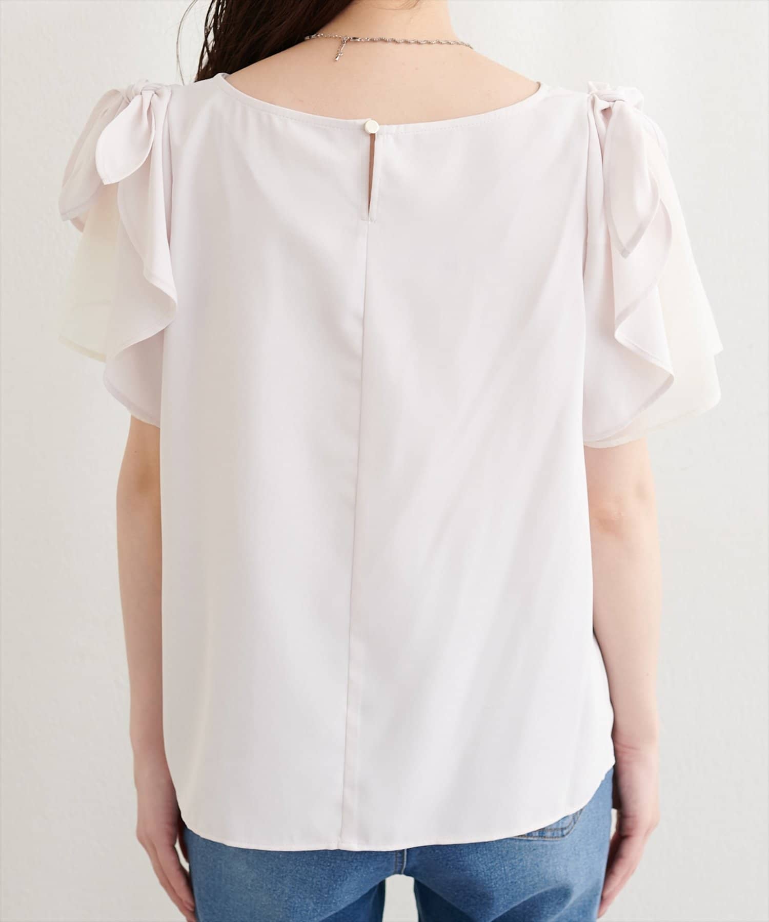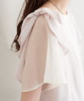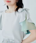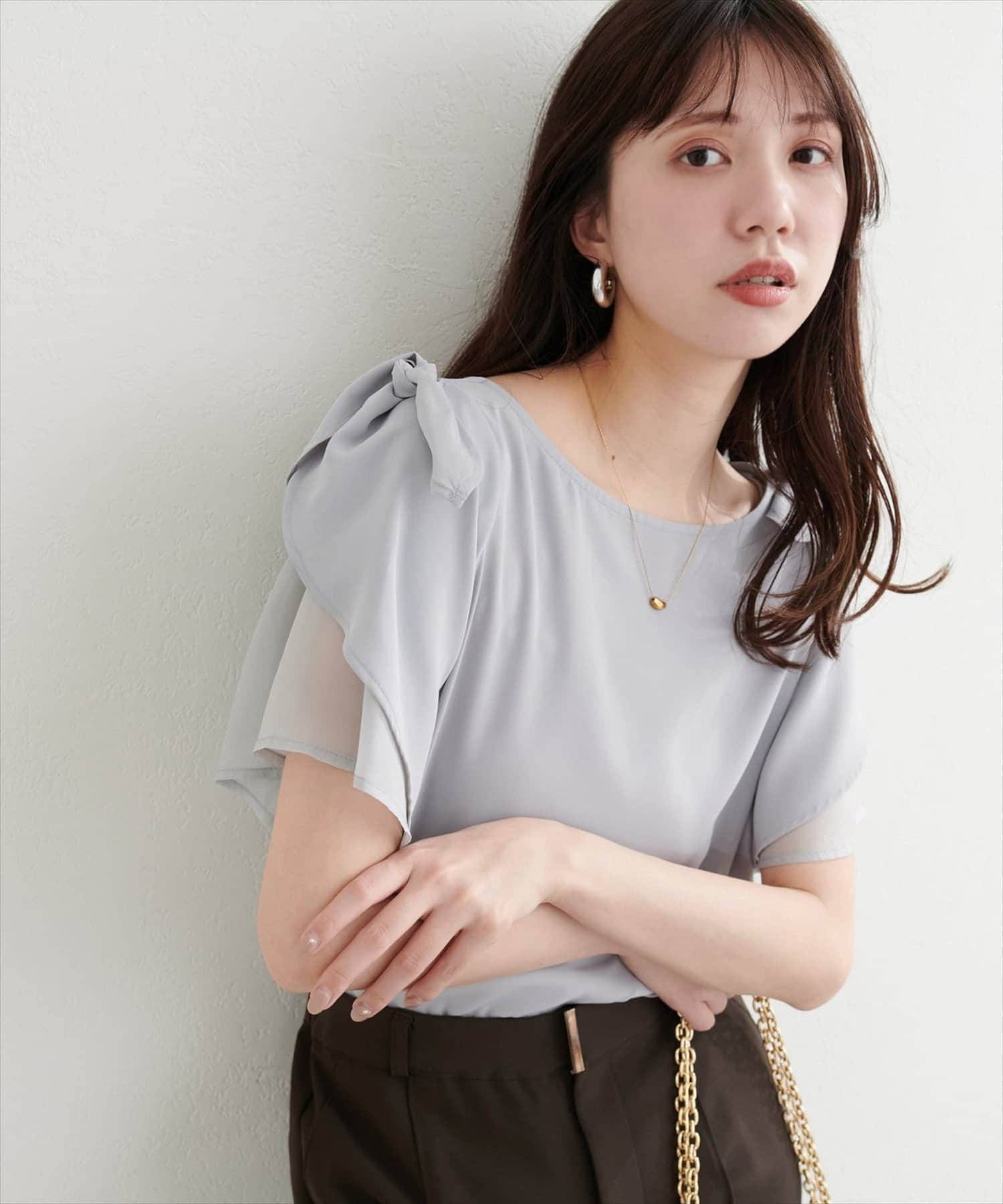 肩のさりげないリボンとラッフルズスリーブが魅力のブラウス。