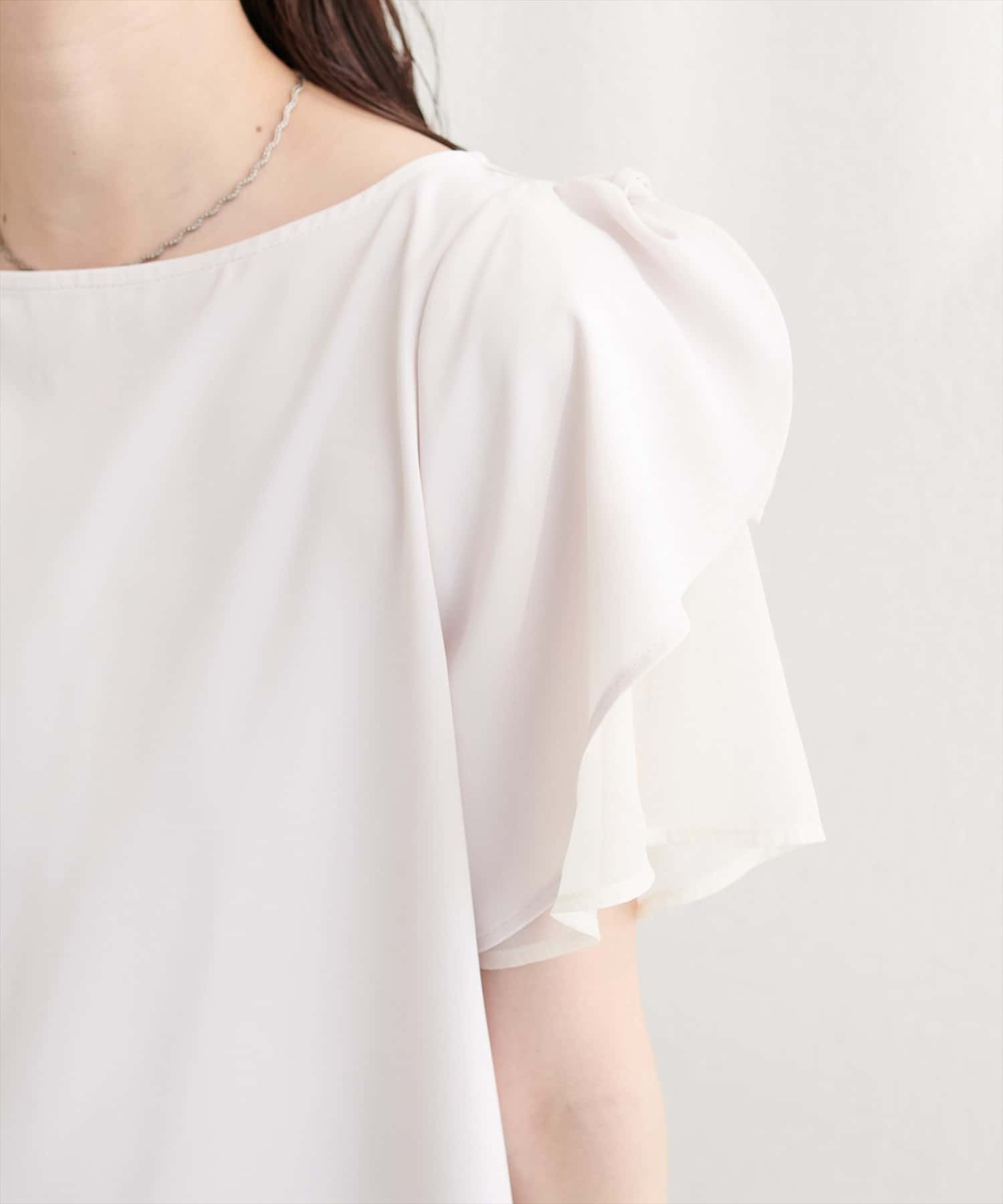 肩リボンラッフルフレア袖ブラウス