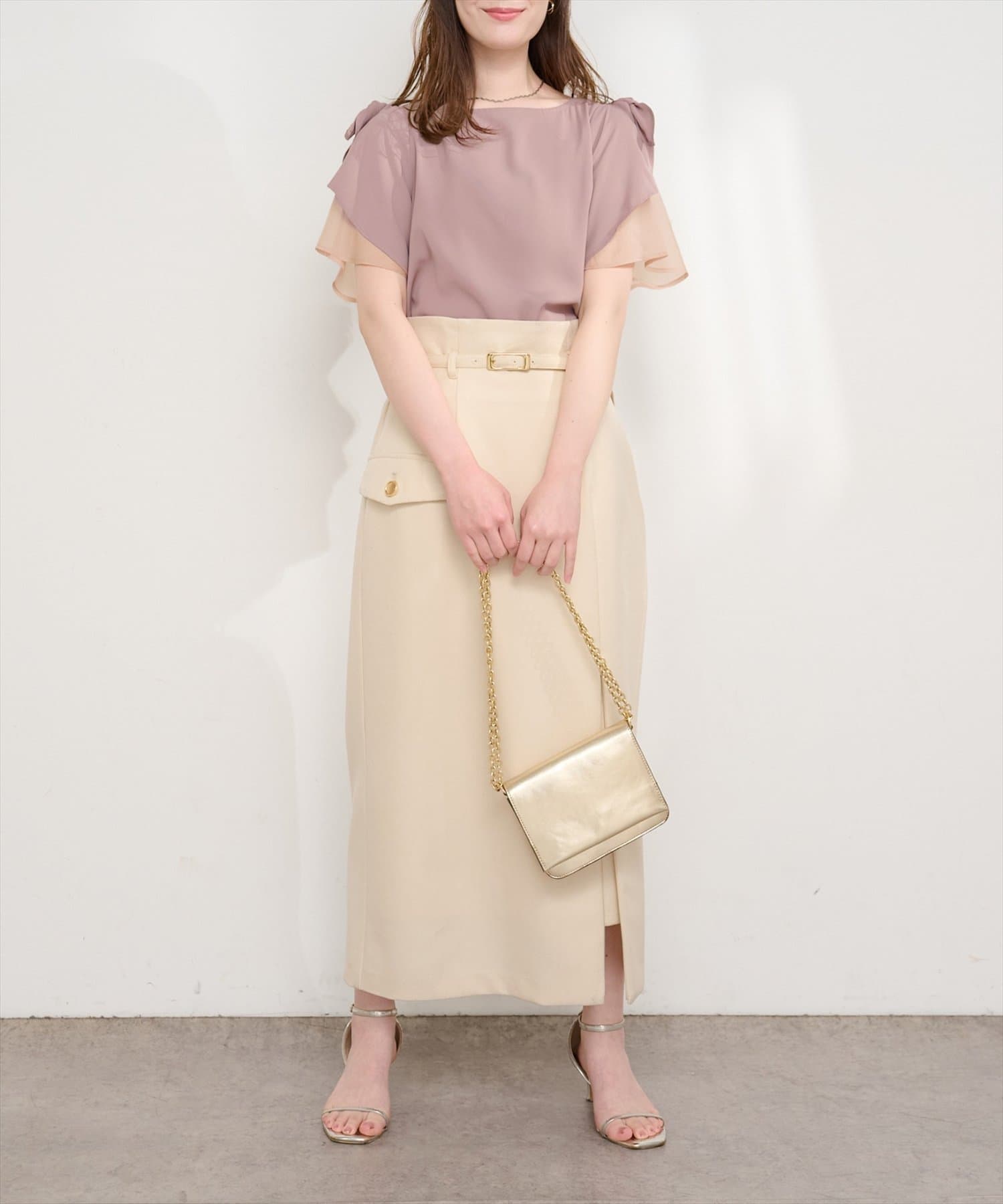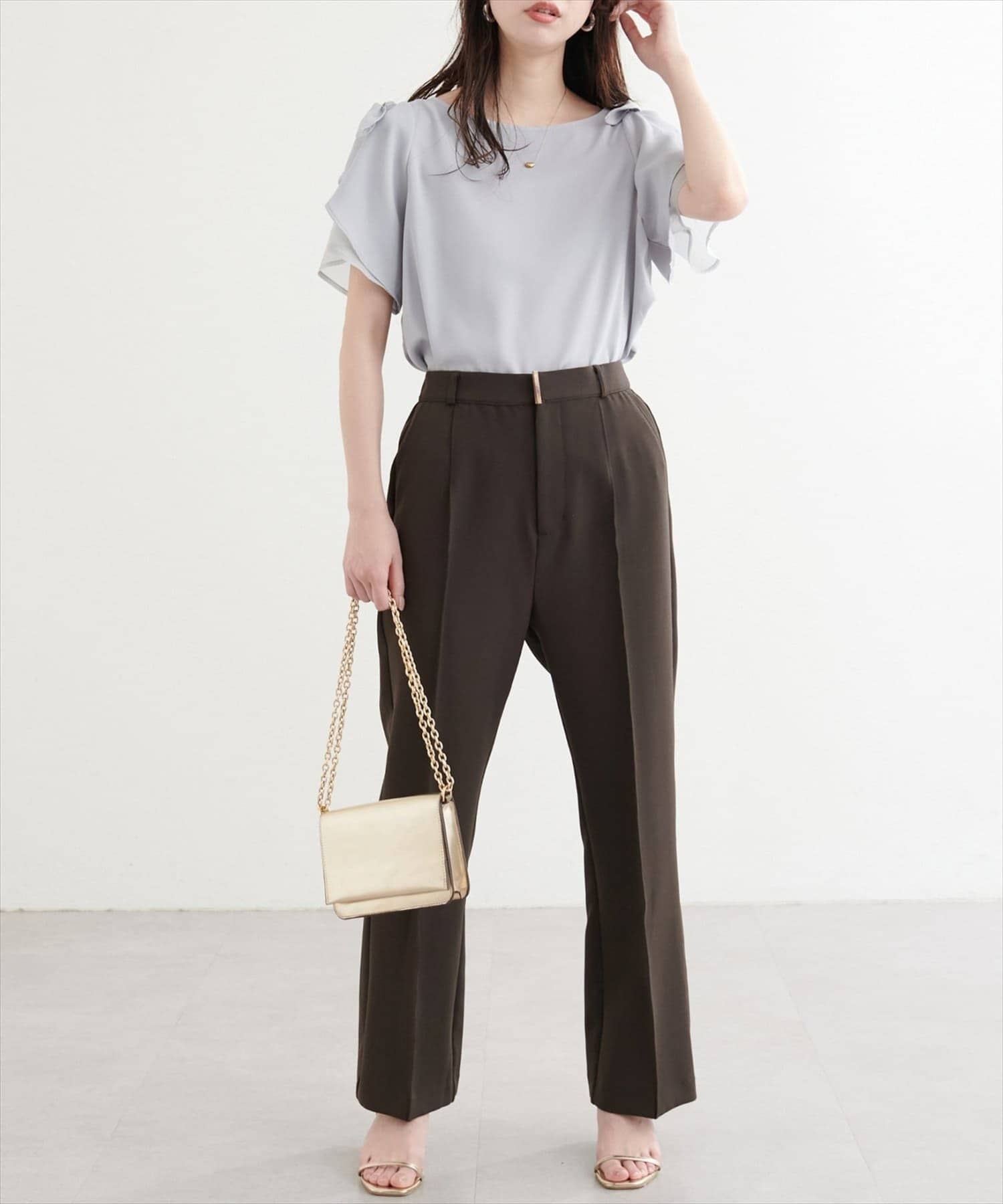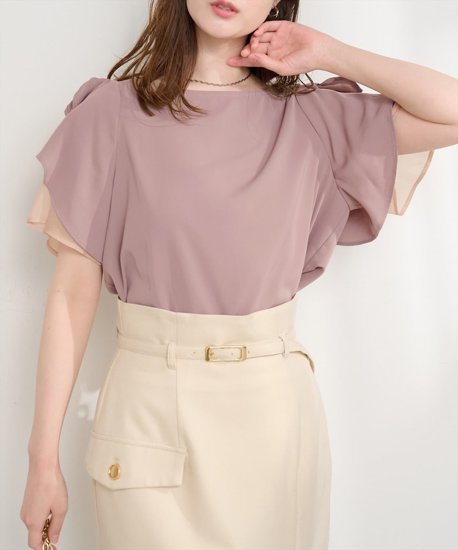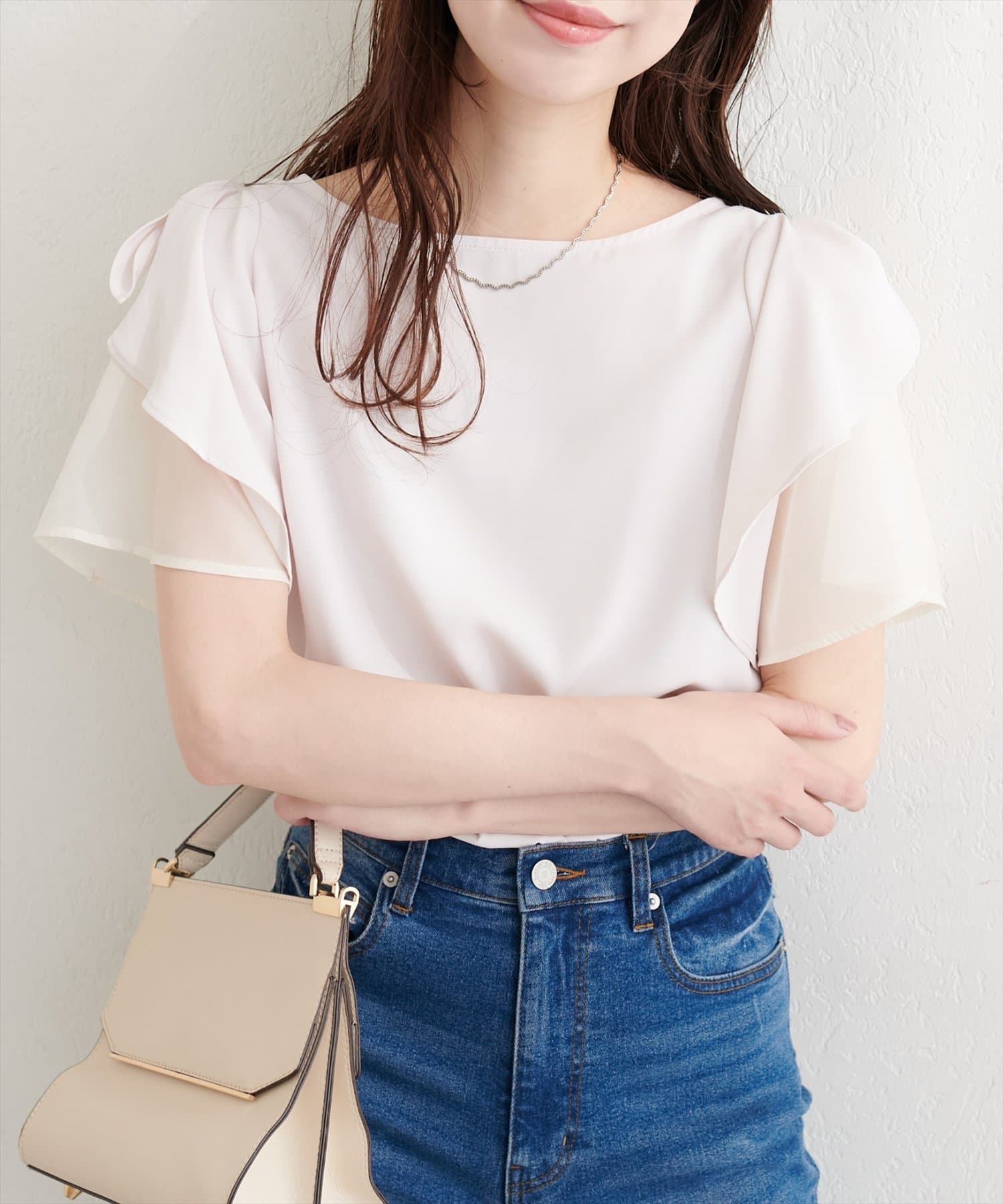 2段のラッフル袖はフェミニンさとヘルシーさをプラス。