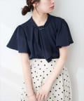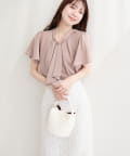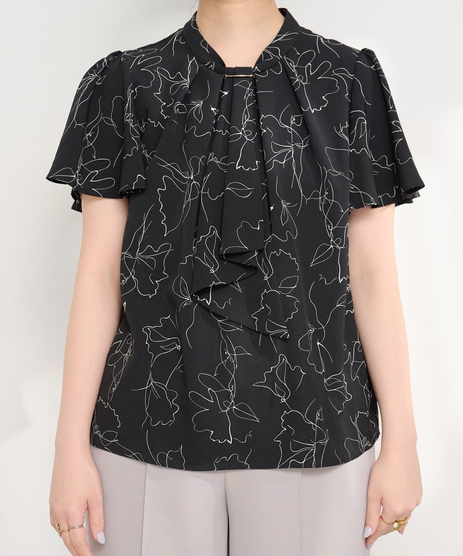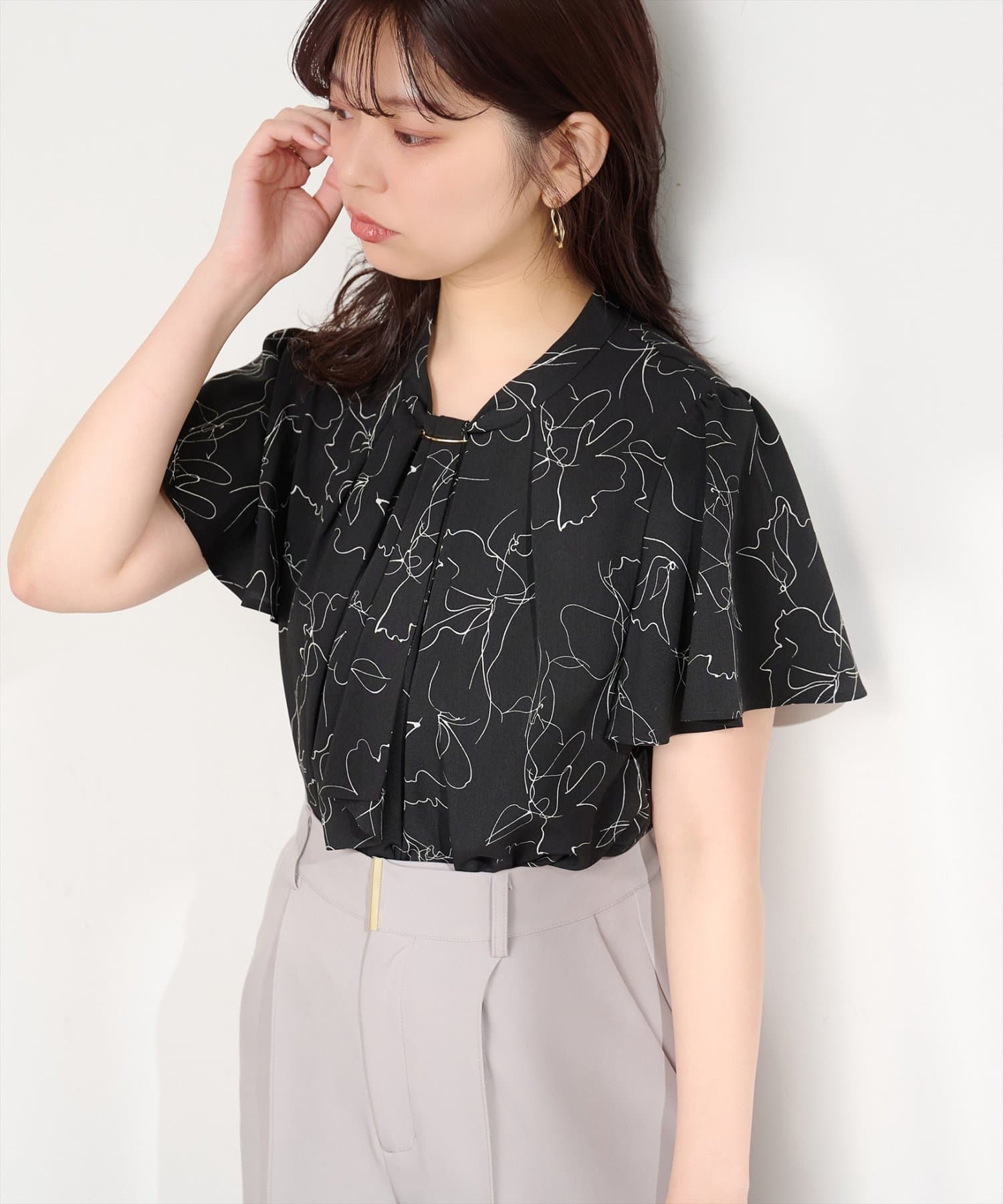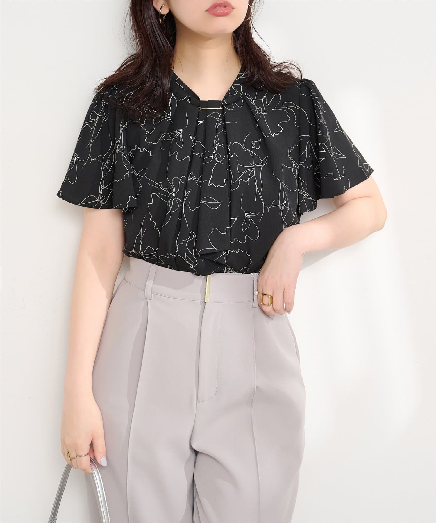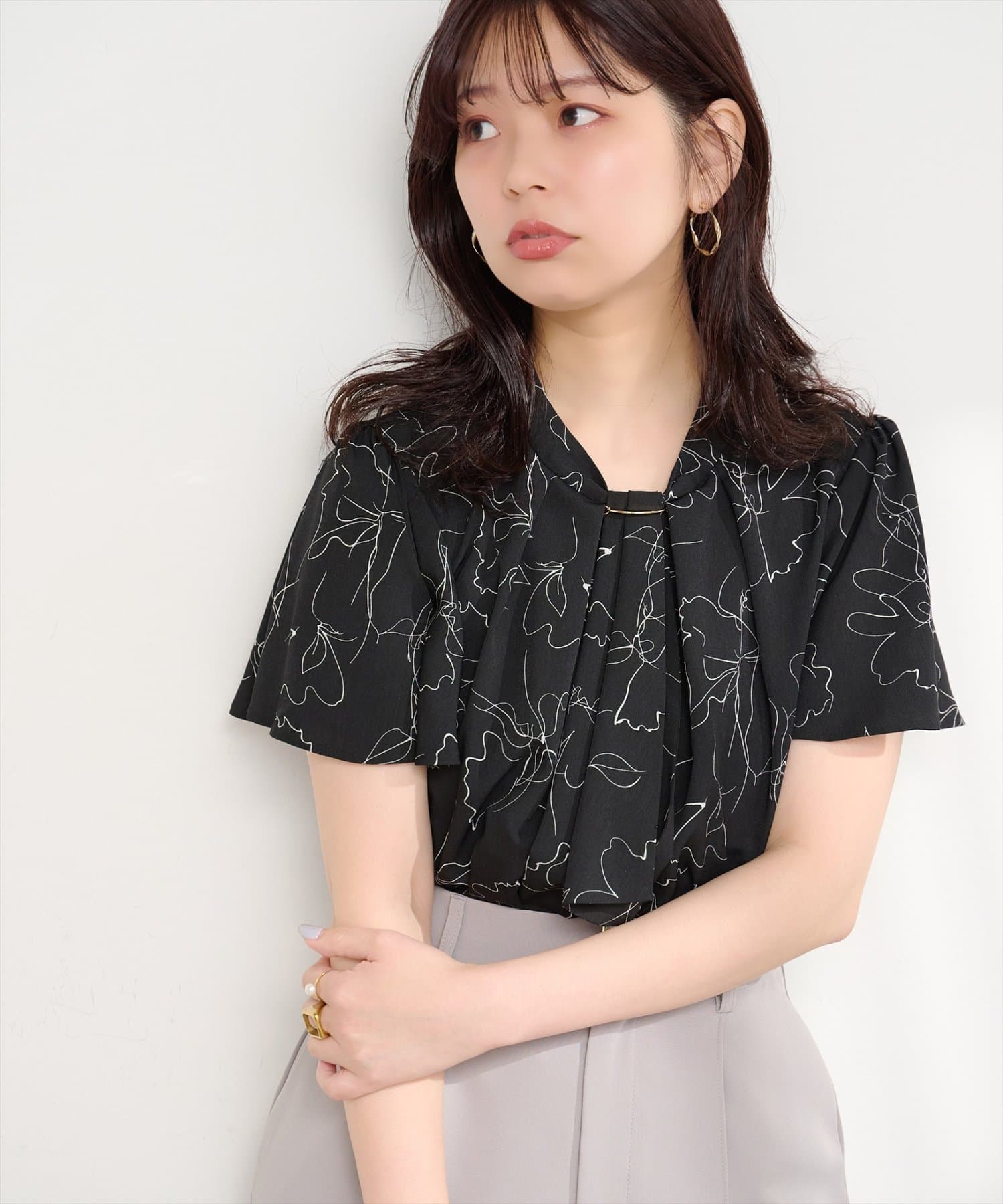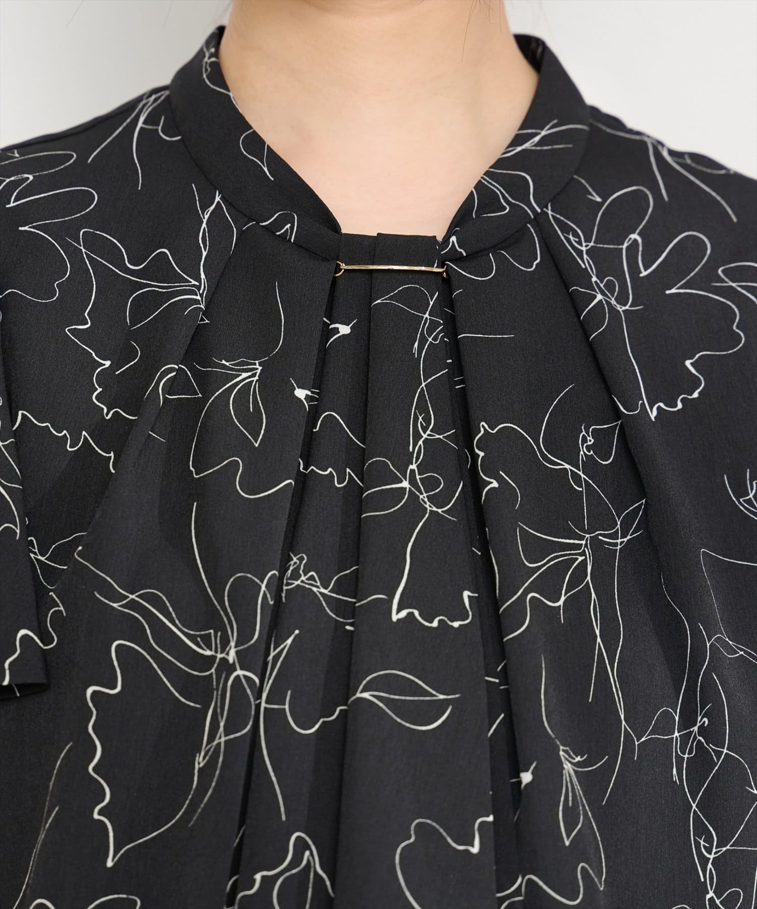 ボウタイディティールにゴールドのアクセントを加えた、1枚で華やかさのあるプルオーバーブラウス。