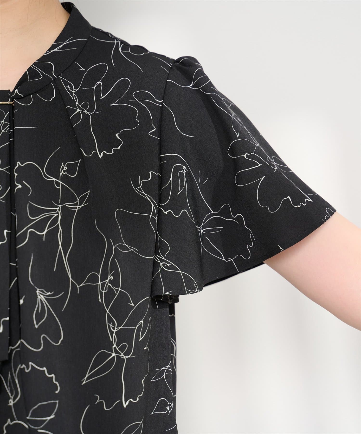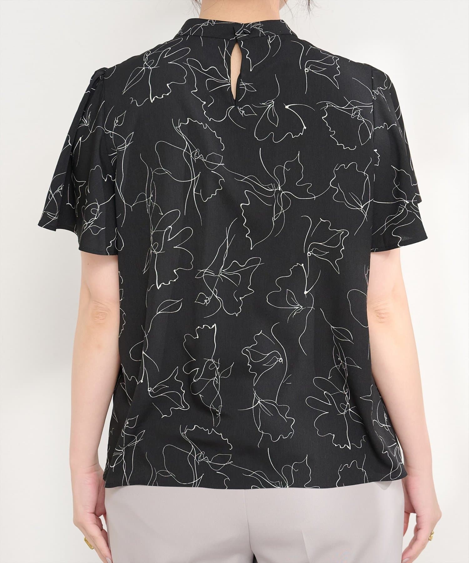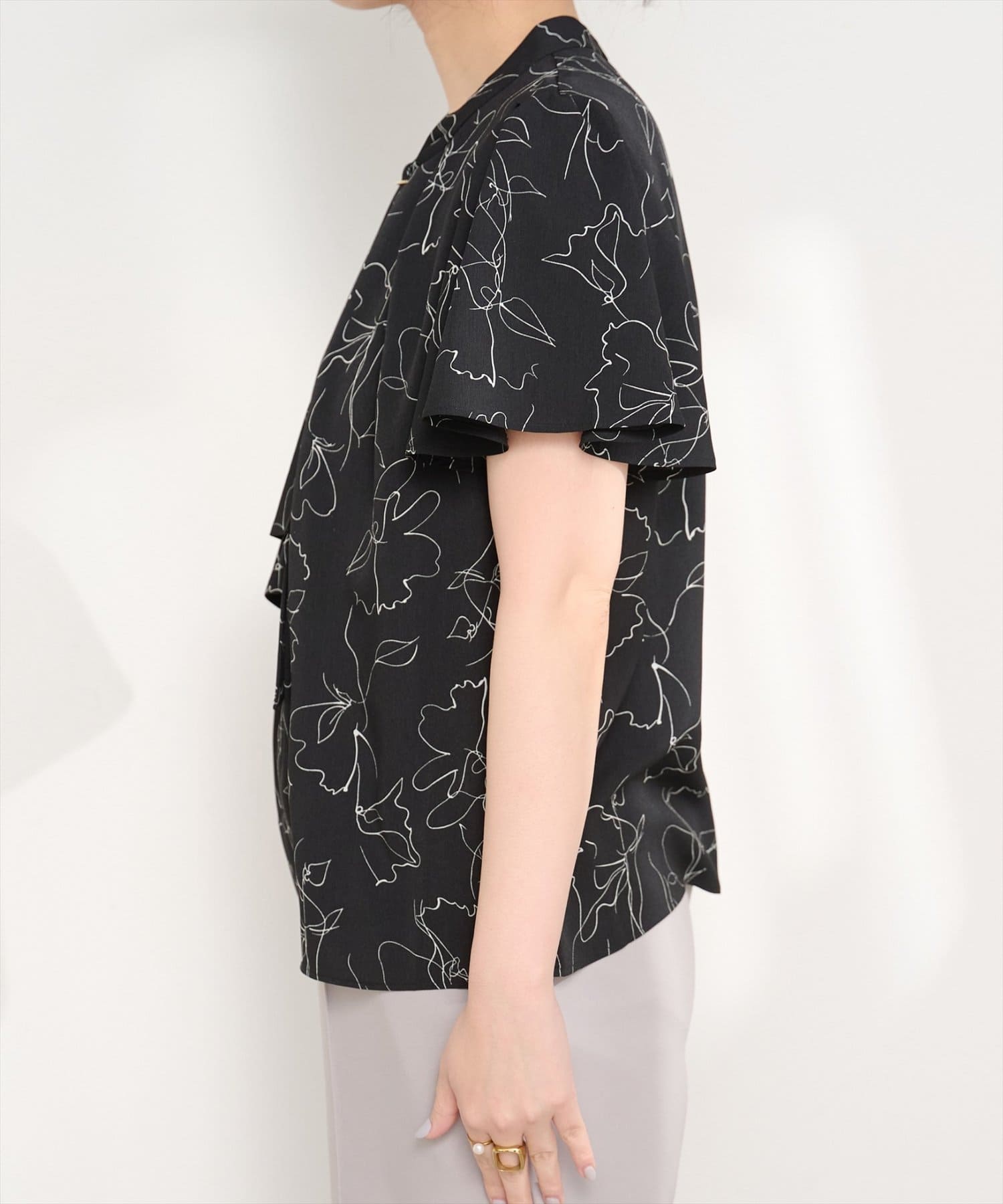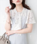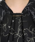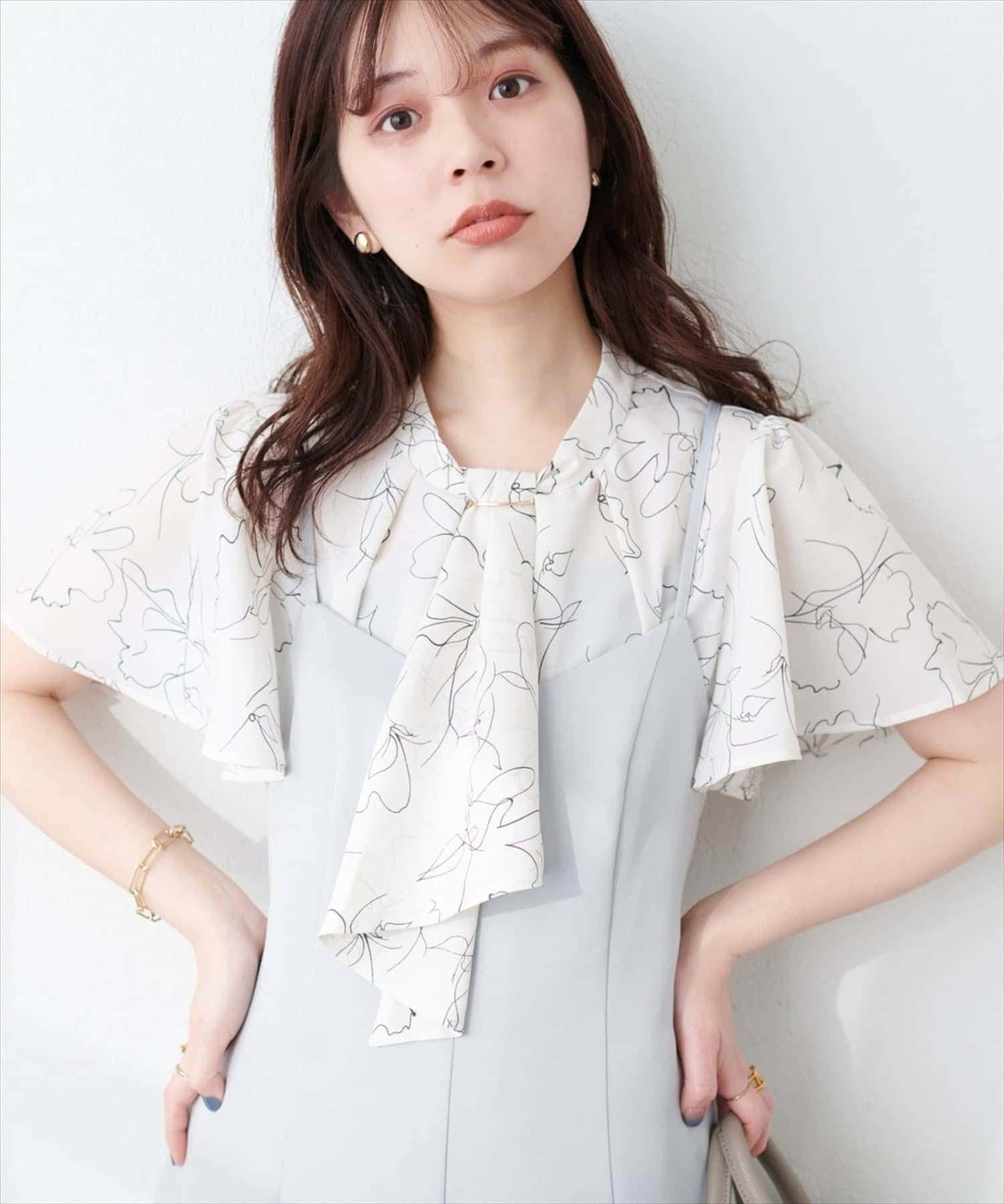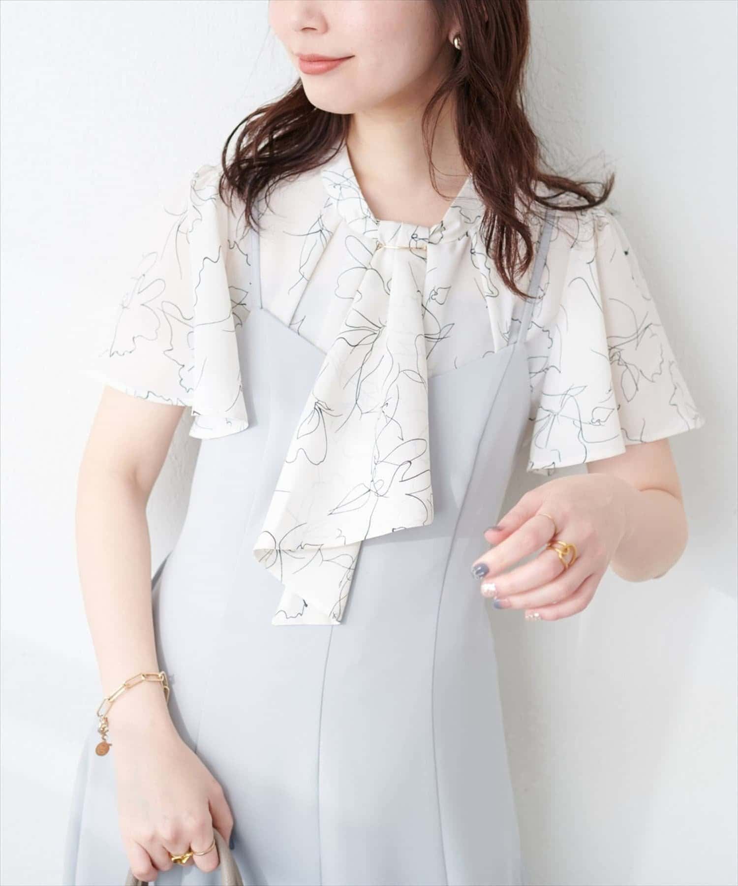 ボウタイディティールにゴールドのアクセントを加えた、1枚で華やかさのあるプルオーバーブラウス。