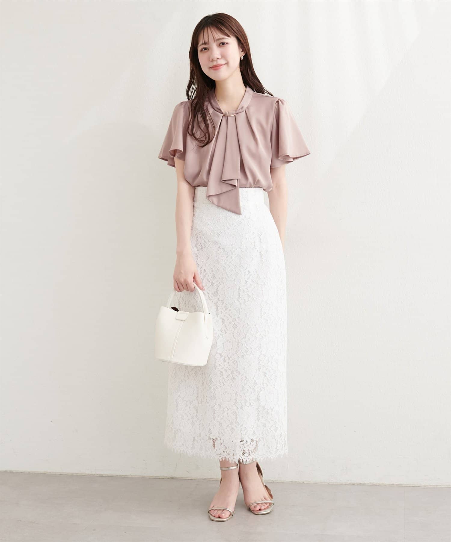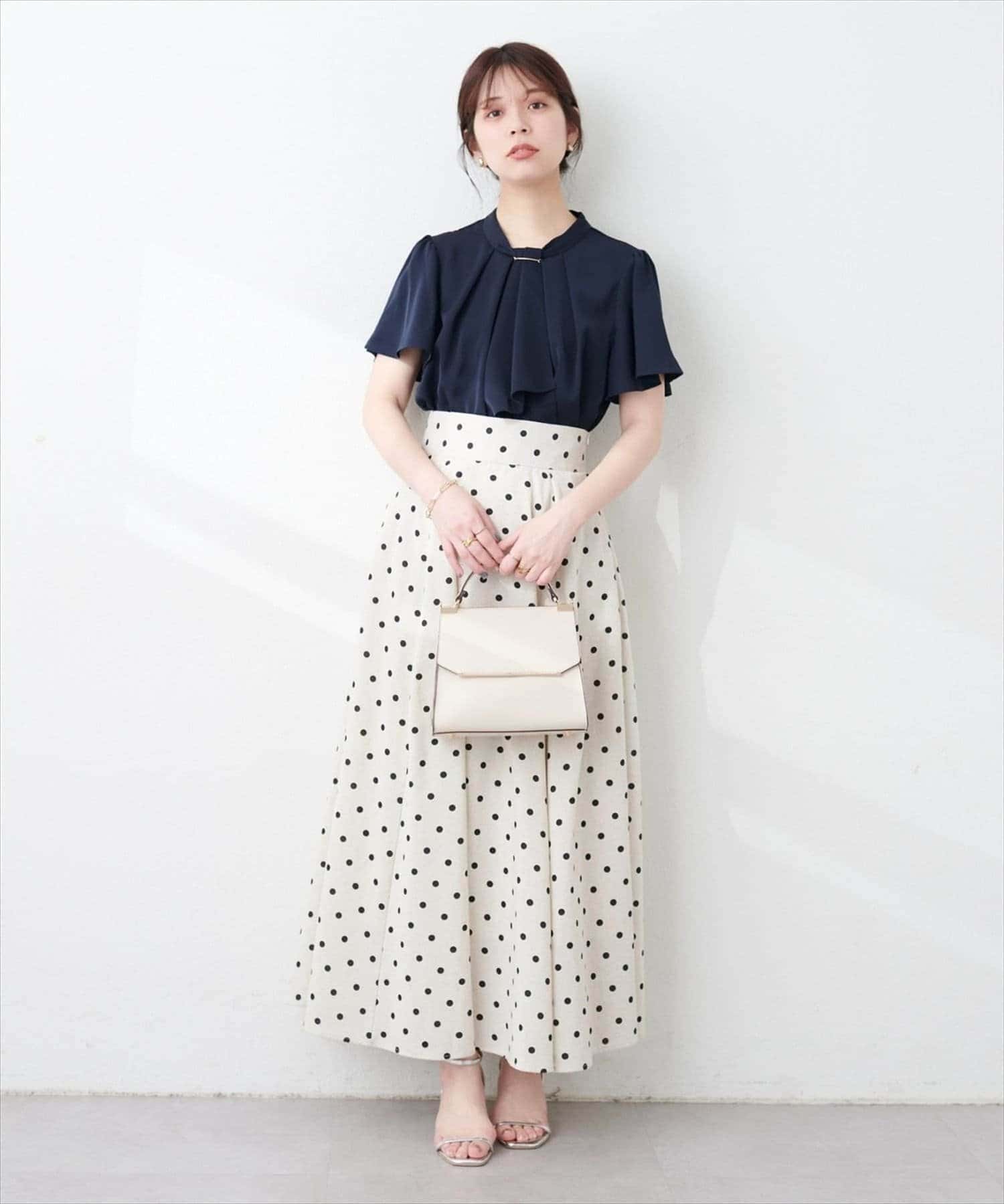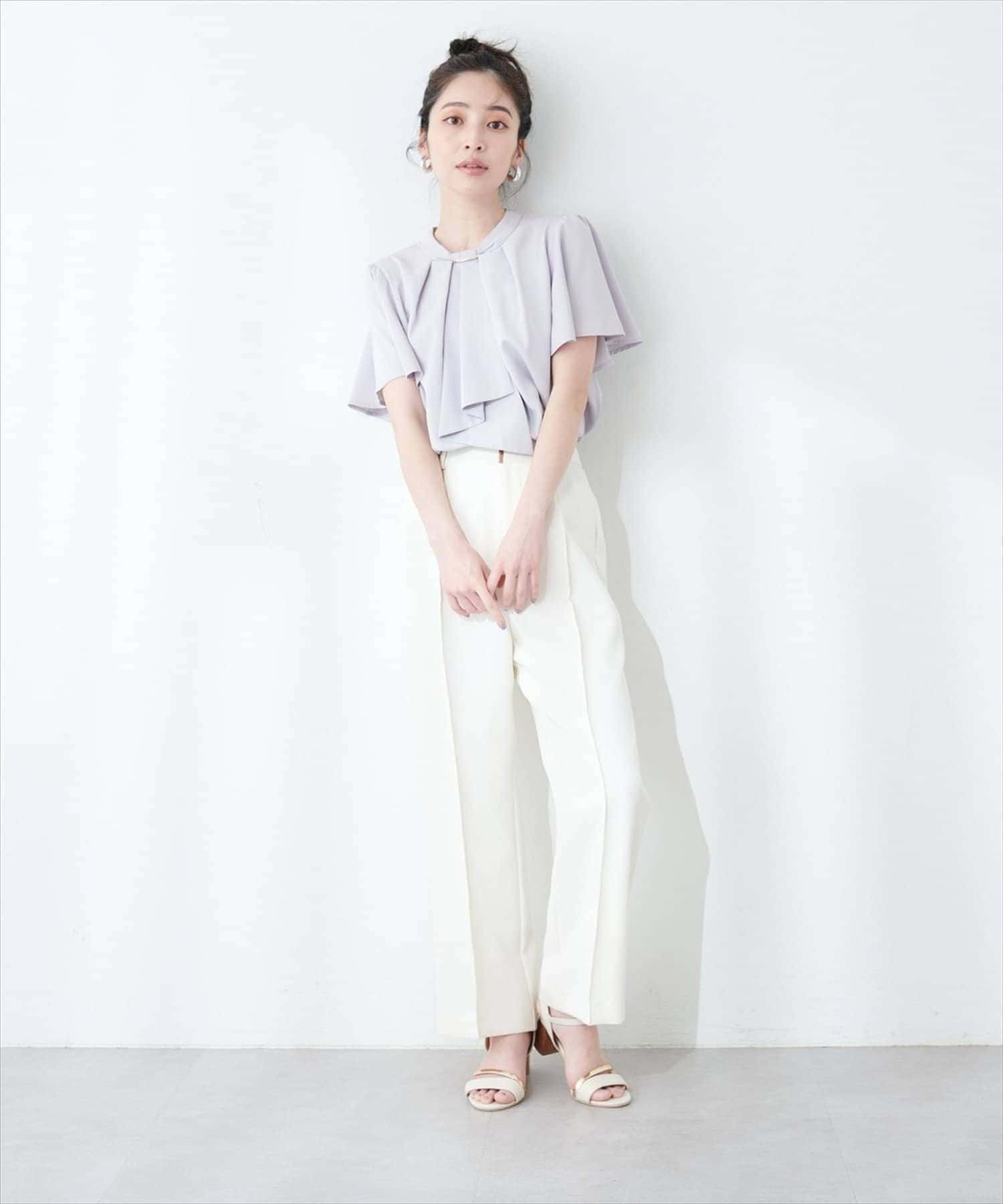 落ち感のある素材が上品さとフェミニンさを演出してくれます。