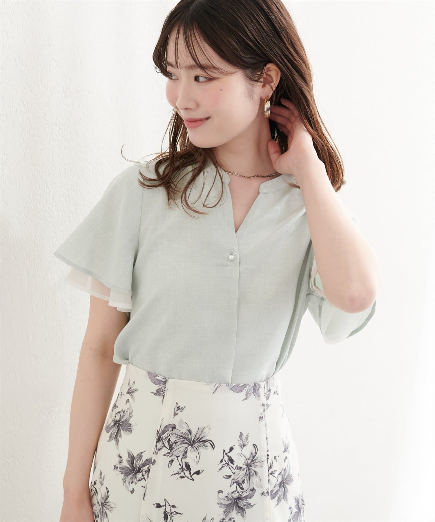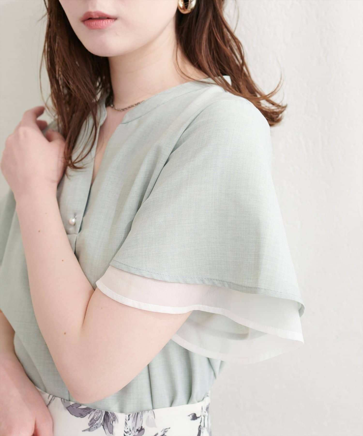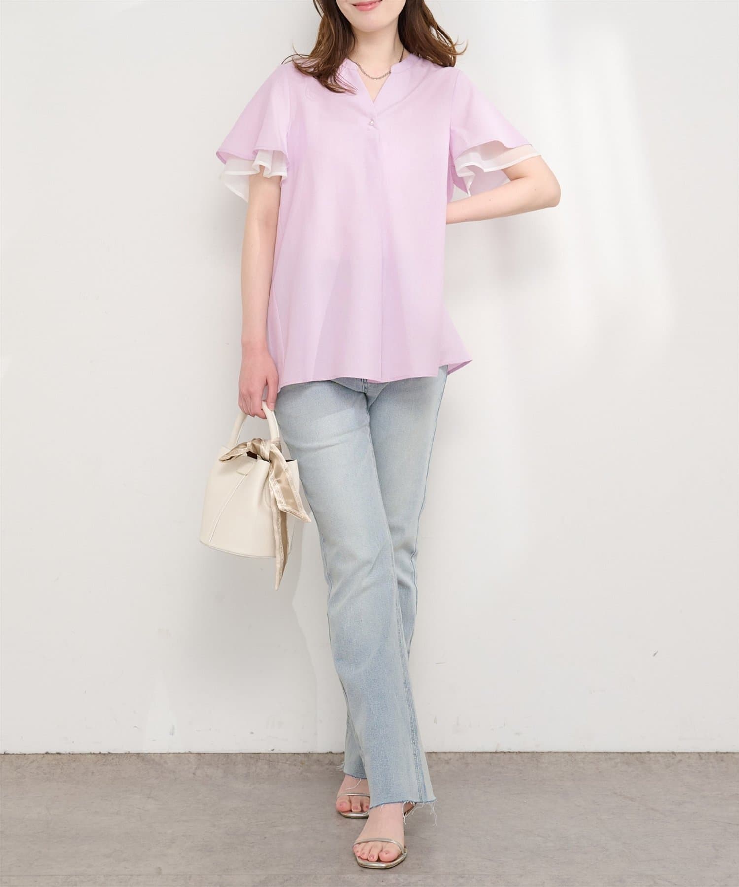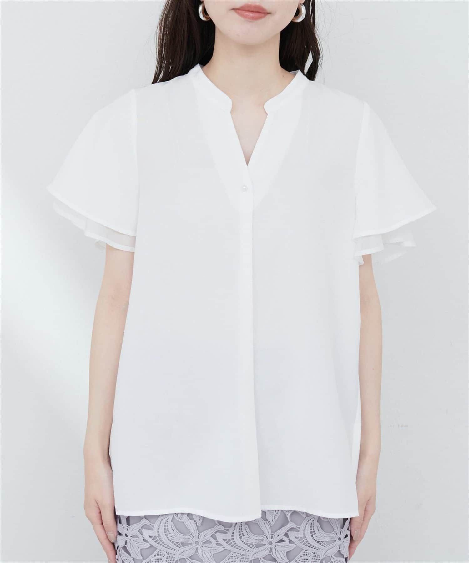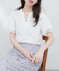 フリルのような袖のシルエットは、甘すぎず、大人可愛い雰囲気を演出。