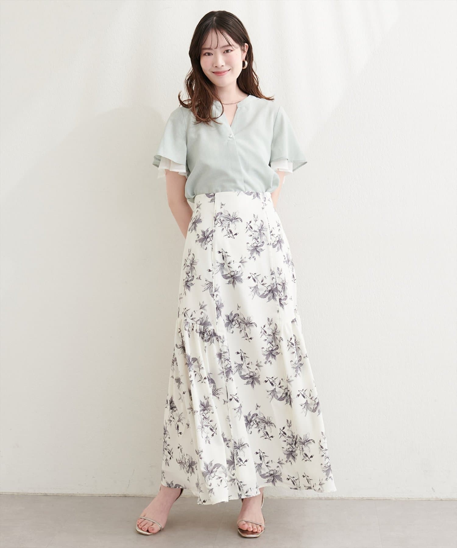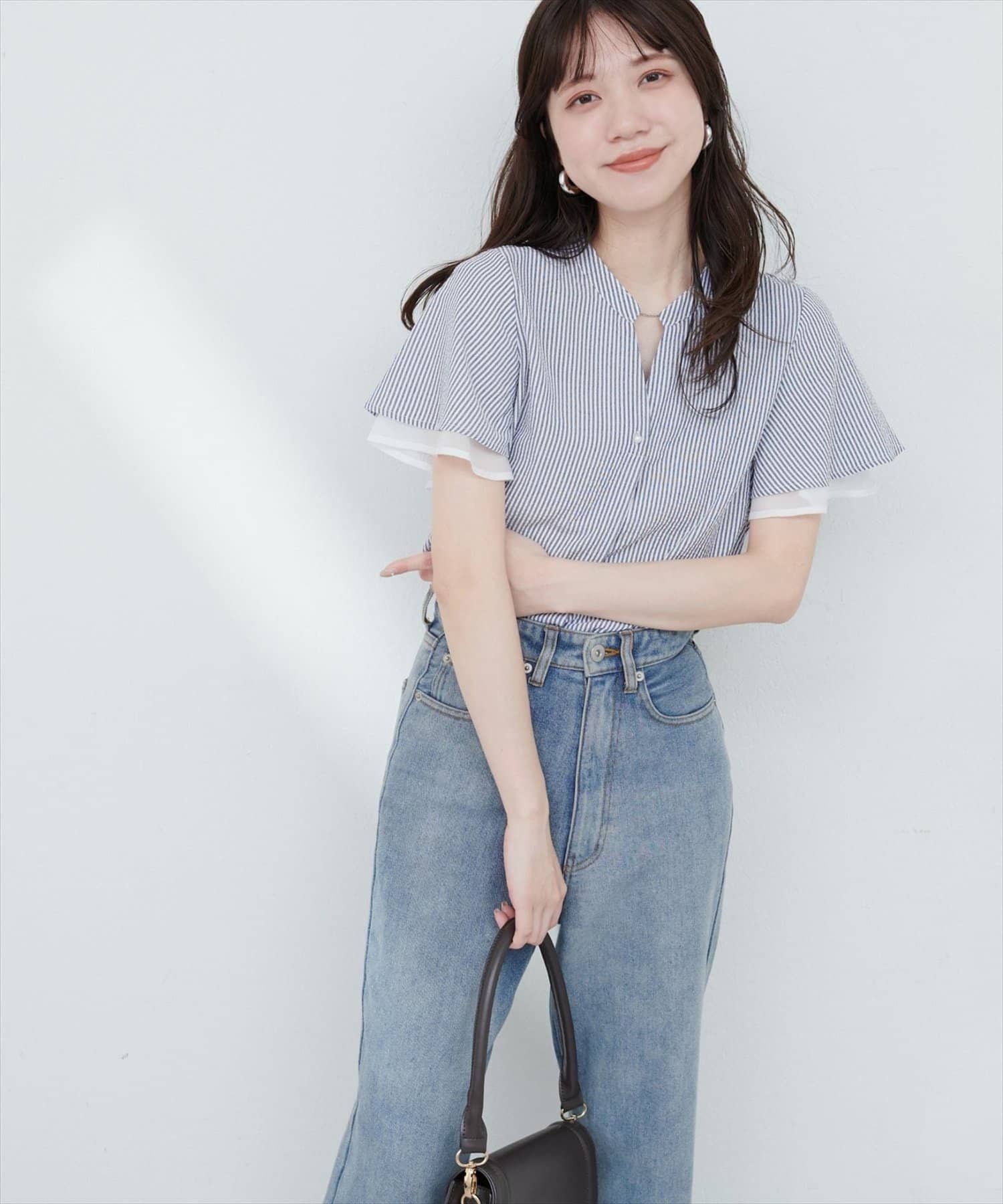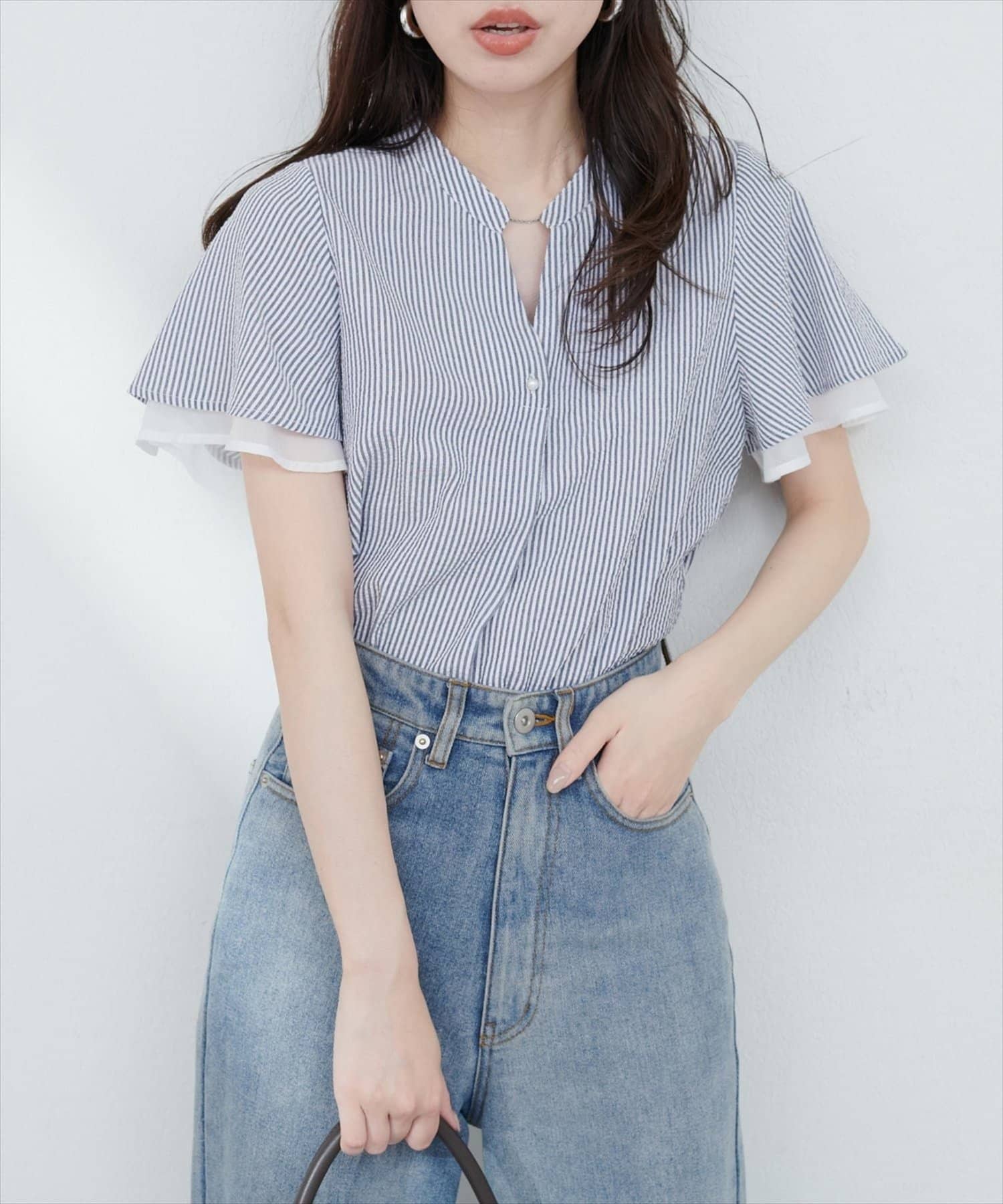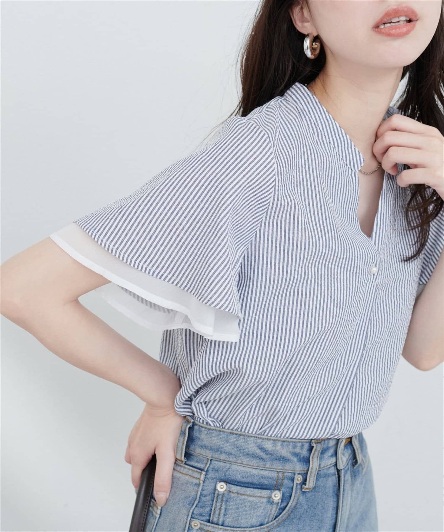 フリルのような袖のシルエットは、甘すぎず、大人可愛い雰囲気を演出。