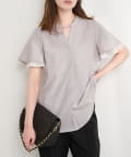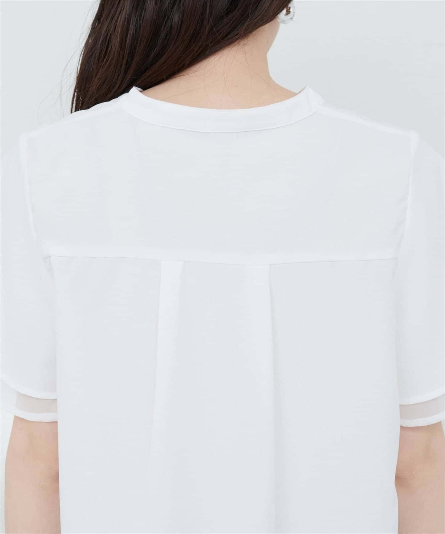 袖口シアーパール釦スキッパーブラウス