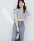 休日のお出かけには、デニムやワイドパンツと合わせてカジュアルダウン。