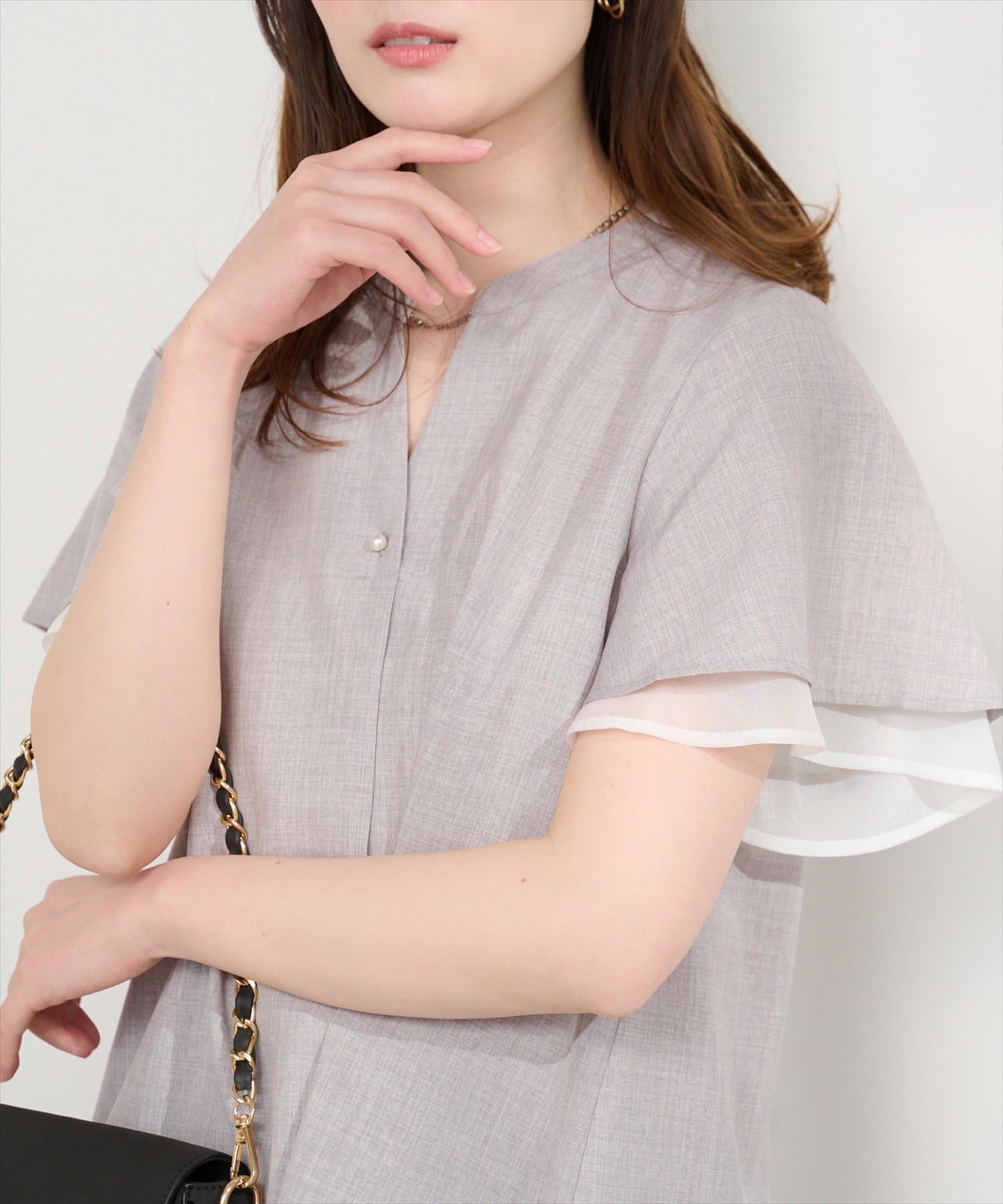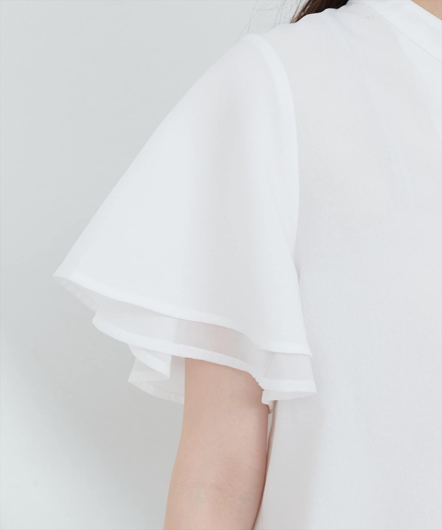 パッと目を惹く二層になった袖のデザインが繊細で女性らしい印象を与えてくれます。
